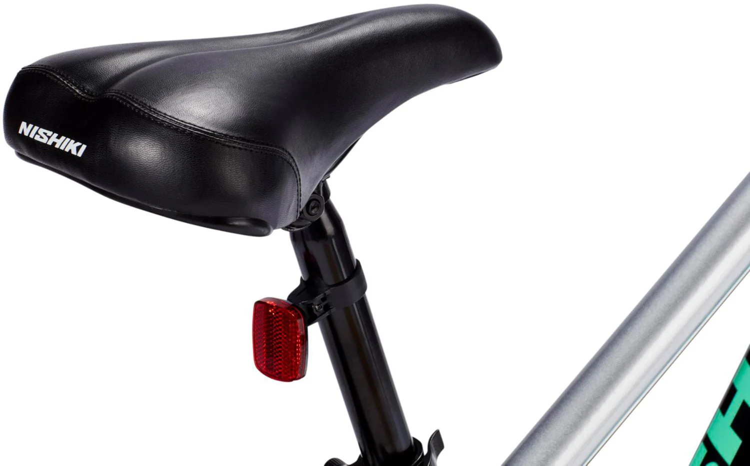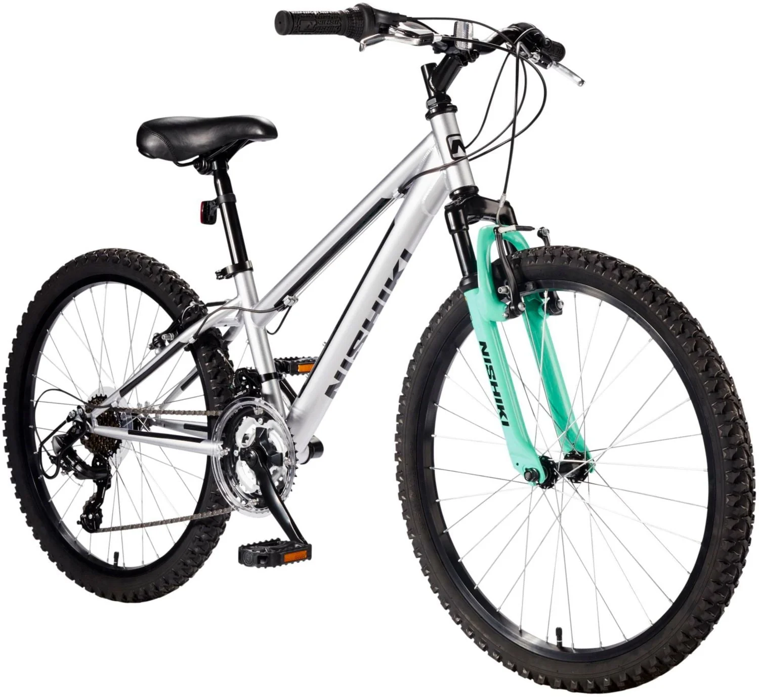 The Nishiki® Girls�?Pueblo 24’�?Mountain Bike will spark his sense of adventure and outdoor fun. It features a strong steel frame with front suspension to absorb bumps from uneven terrain, easy-to-use linear pull brakes for quick and confident stops, and a sport saddle for comfort. The Shimano Revo twist shifter allows him to get in the right gear every time.