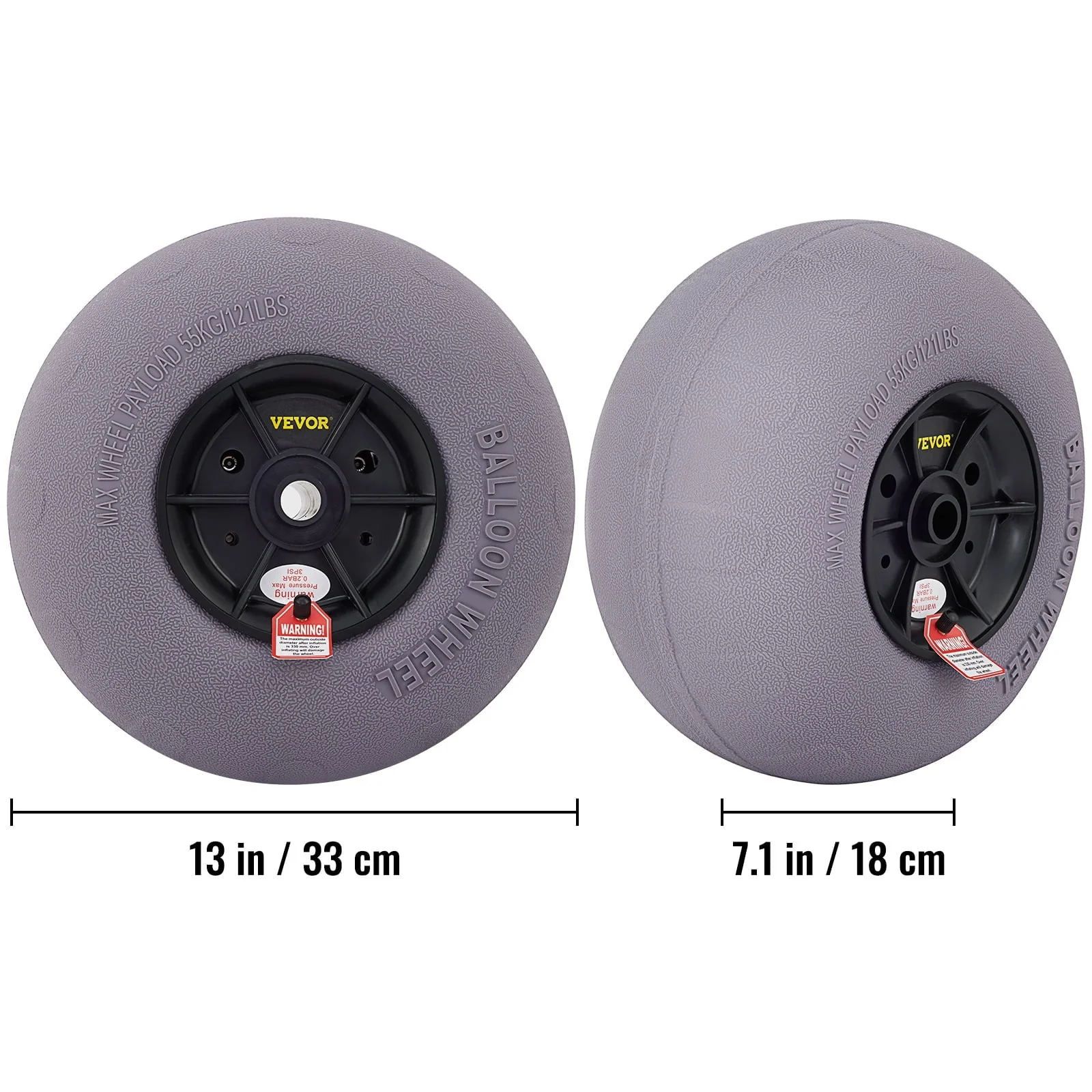 • VEVOR Beach Balloon Wheels, 13" Replacement Sand Tires, TPU Cart Tires for Kayak Dolly, Canoe Cart and Buggy W/ Free Air Pump, 2 - Pack