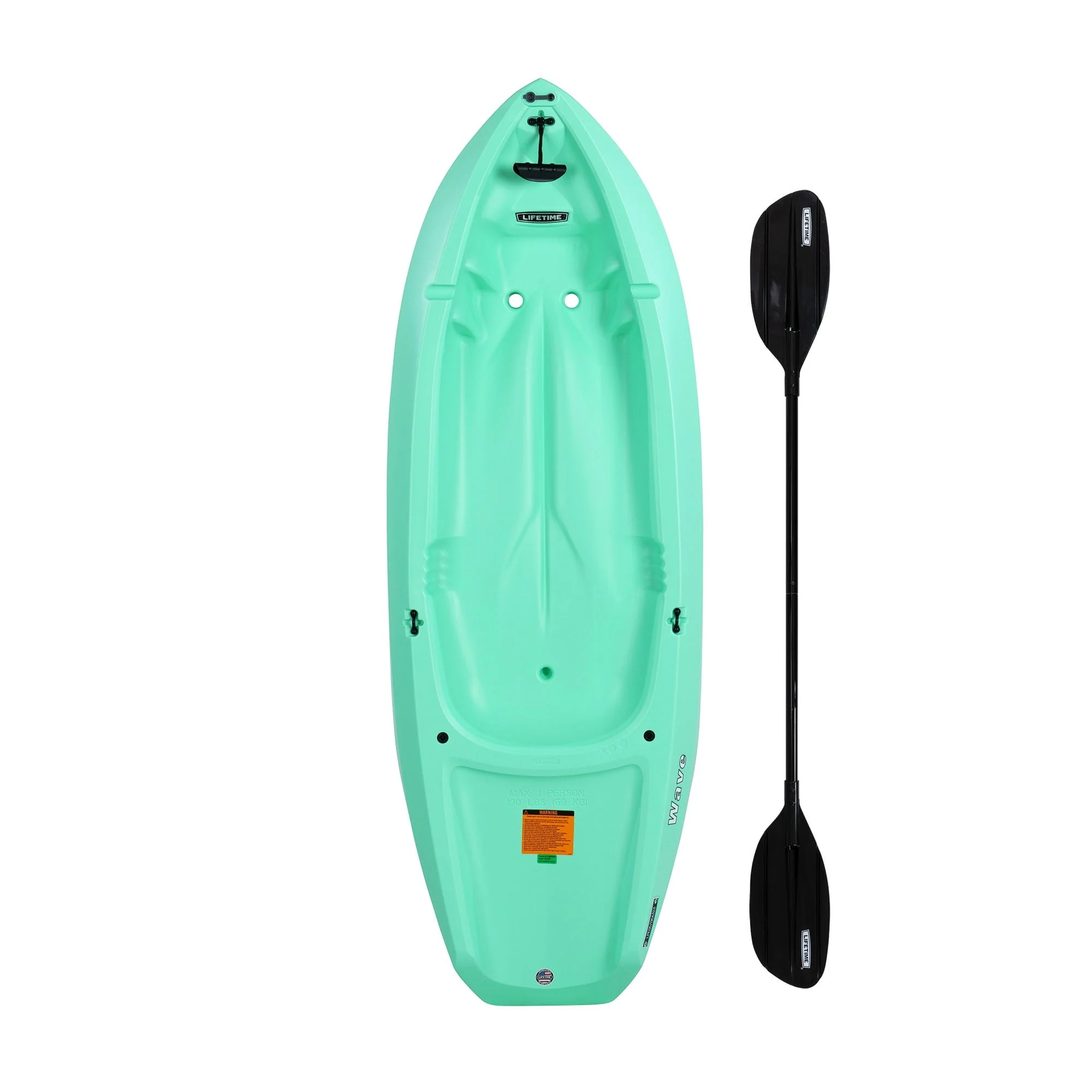 The 6 ft. Lifetime Wave�?Kayak is specifically designed for kids ages 5 and up, or up to 130 lbs. The wide stance provides a stable paddling platform to keep your child safely in the kayak. Its sloped back end and swim-up step allows the rider to easily re-enter the kayak from the water. With scupper holes, multiple footrest positions, and great stability, the Wave�?is perfect for kids recreational kayaking. Lifetime products are made out of high-density polyethylene (HDPE) which is regarded as one of the easiest plastic polymers to recycle. Not only is HDPE easy to recycle, but when manufacturing our products, we regrind and reuse 99.5% of all plastic brought into the facilities. The plastic that is not used is sold responsibly to companies who use it for other applications. It does not end up in the landfill.