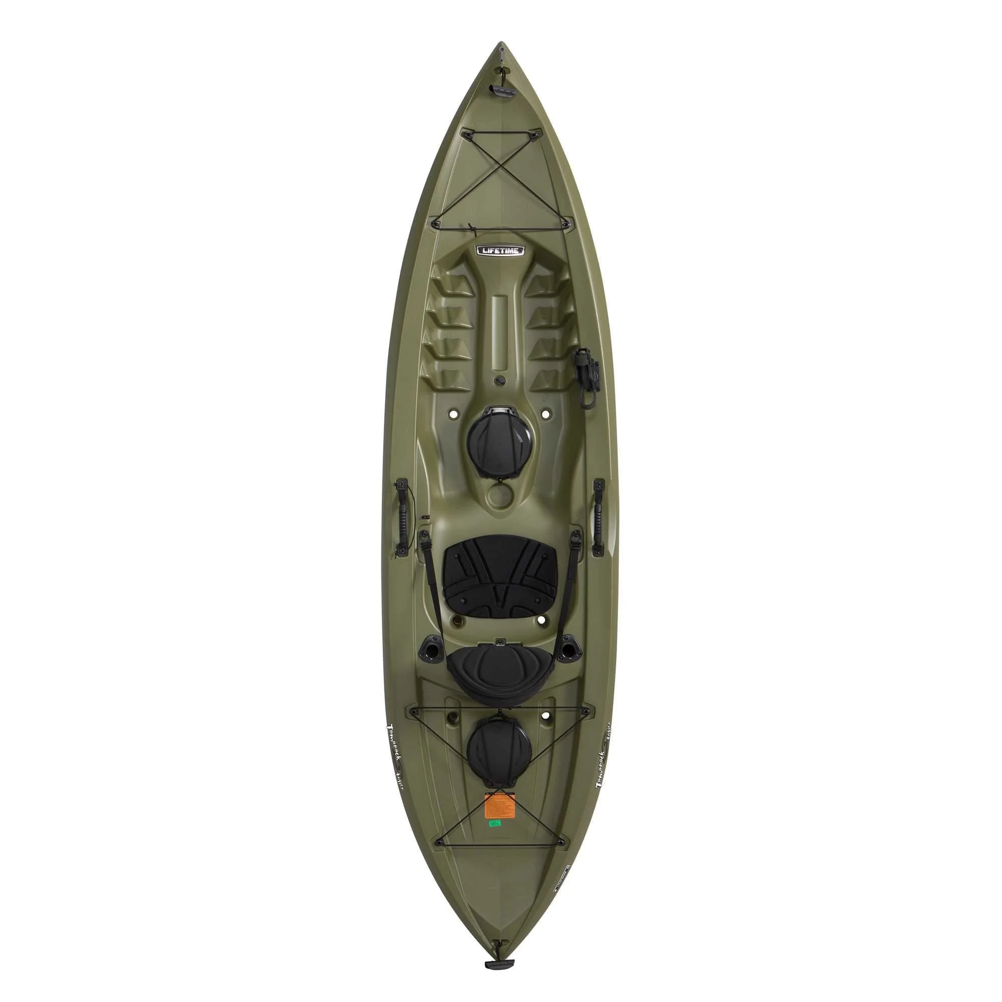 The Lifetime Tamarack�?10 ft. Angler Kayak is a sit-on-top fishing kayak that has a comfortable padded seat and backrest for your long paddling and fishing adventures. Designed for extreme safety and stability, the Tamarack�?Angler has a stable flat bottom with deep tracking channels and stability chine rails. The kayak is constructed of blow-molded high-density polyethylene (HDPE) making it durable, UV-protected, and impact resistant. The 52 pound design and front and rear carry handles make it easy to transport to and from the waterfront. With fishing rod holders, shock cord straps, multiple footrest positions, and two storage hatches, this kayak has plenty of extras to enhance your paddling and fishing experience.