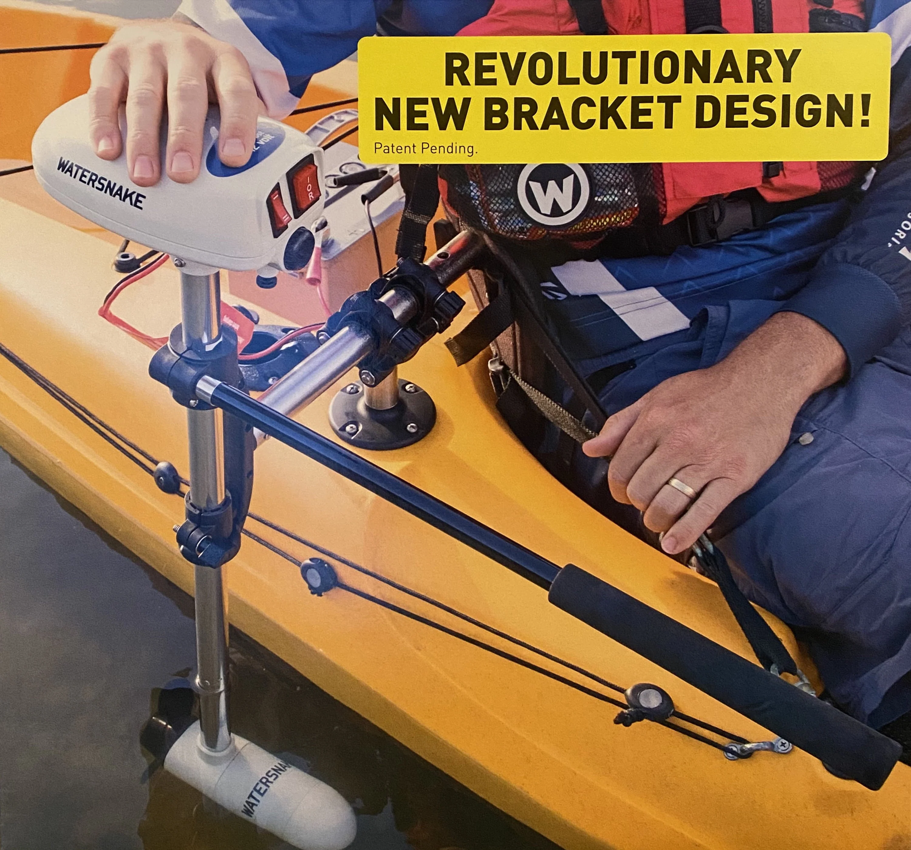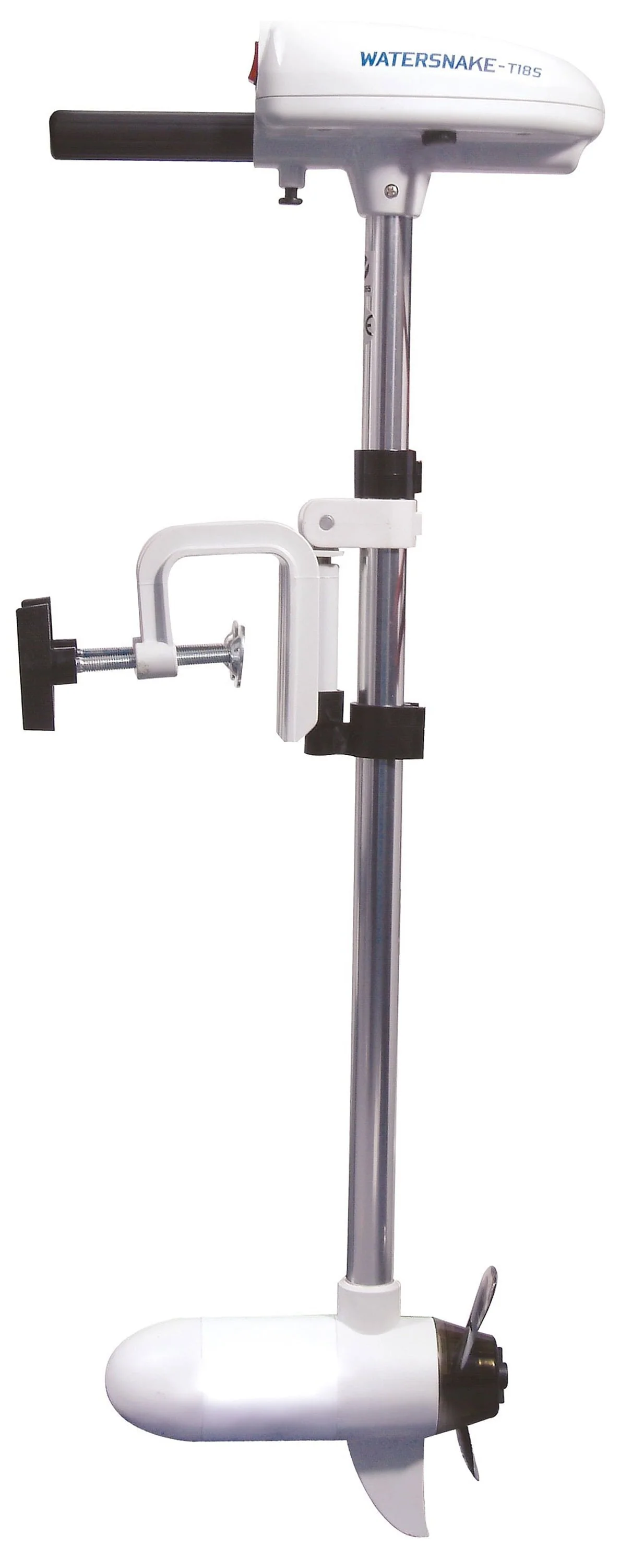 Watersnake ASP T18 Saltwater Electric 12 volt trolling Motor with Kayak Bracket is the ultimate in lightweight portability weighing only 4.85lbs (2.2kg). It’s the ideal trolling motor to use on kayaks. Watersnake’s simple design keeps the weight down while delivering quality and performance. This 18lb. thrust force motor comes with an easy to install kayak mounting bracket to keep it close at hand on your kayak. Comes equipped with a high and low speed control, forward and reverse switch and a two blade mini weedless propeller. 18lb. thrust electric motor with bracket included. Battery not included. Thrust is used instead of horse power on electric motors. Portable freshwater motor./