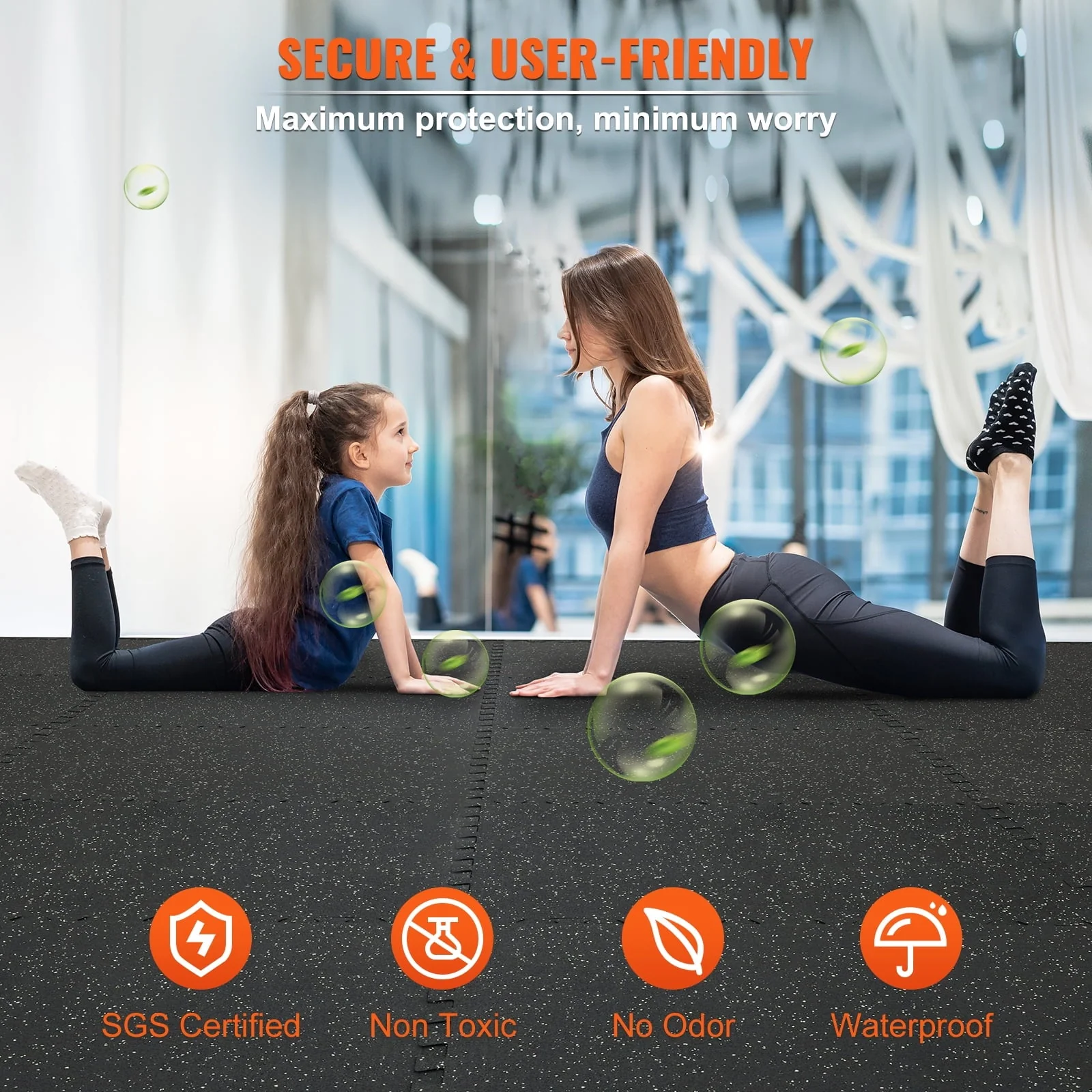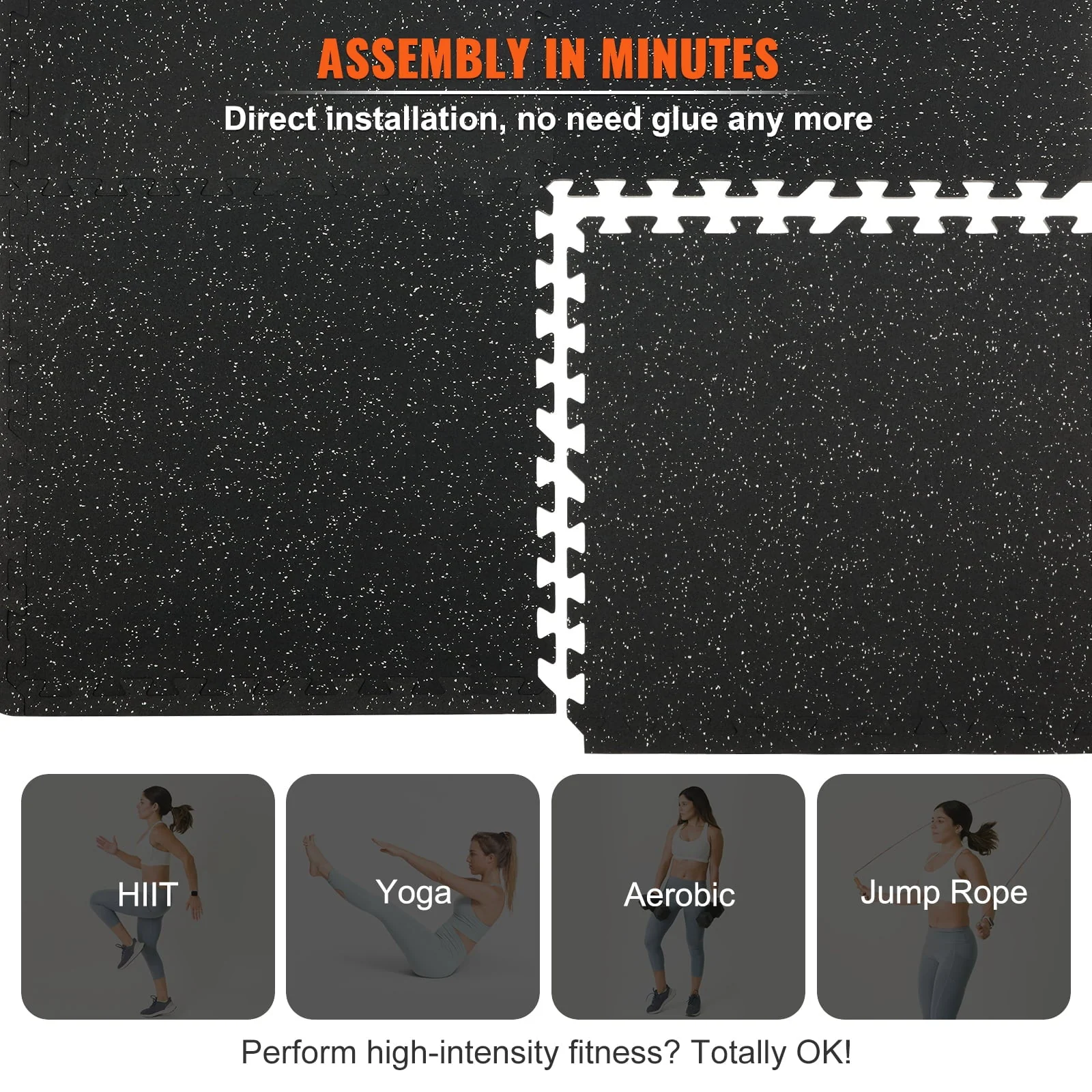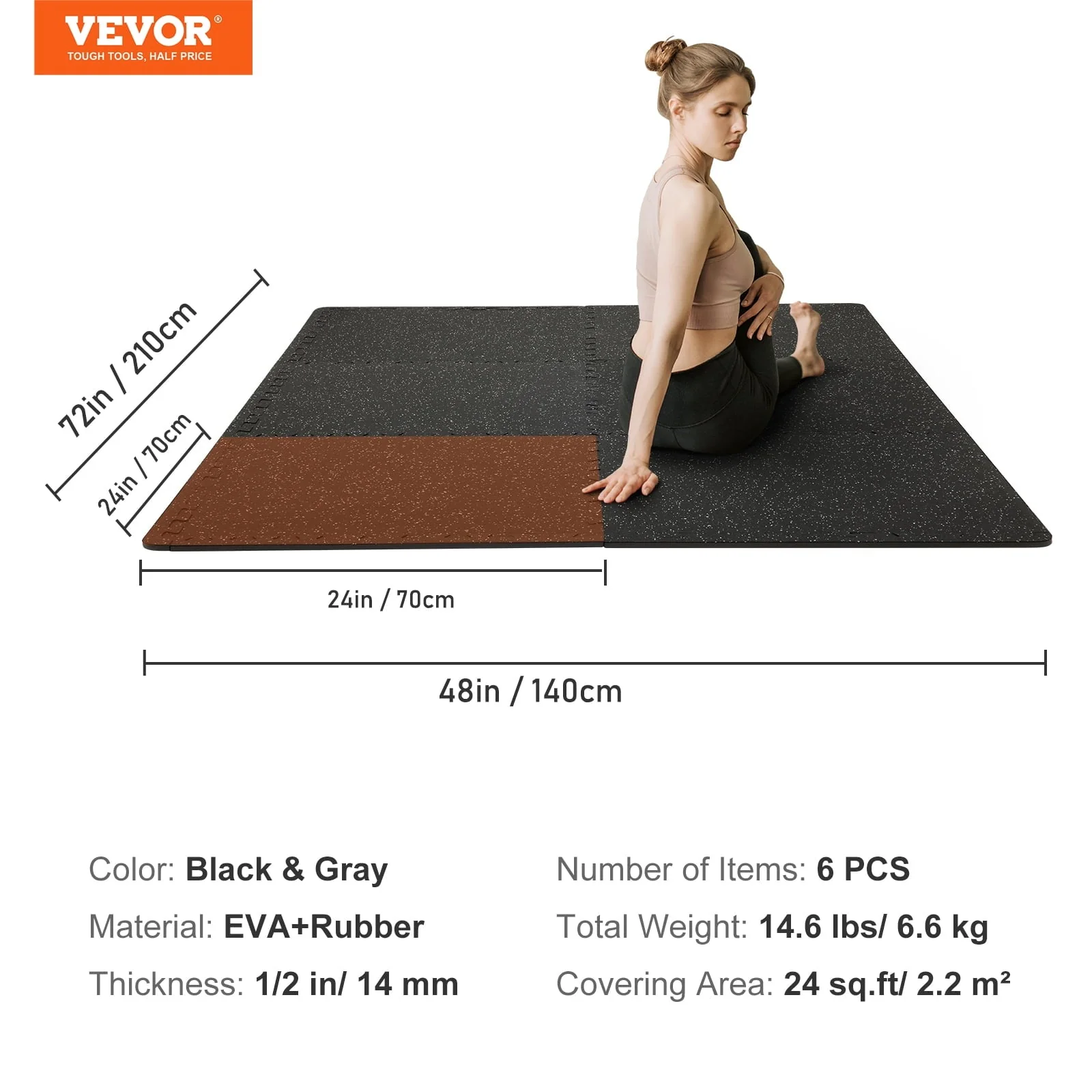 VEVOR 6pcs 1/2 in Thick Gym Floor Mats, 24" x 24" EVA Foam & Rubber Top Interlocking Workout Floor Mats with 24 Sq.ft Coverage, Waterproof Exercise Puzzle Flooring for Gym, Home, Garage, Basement