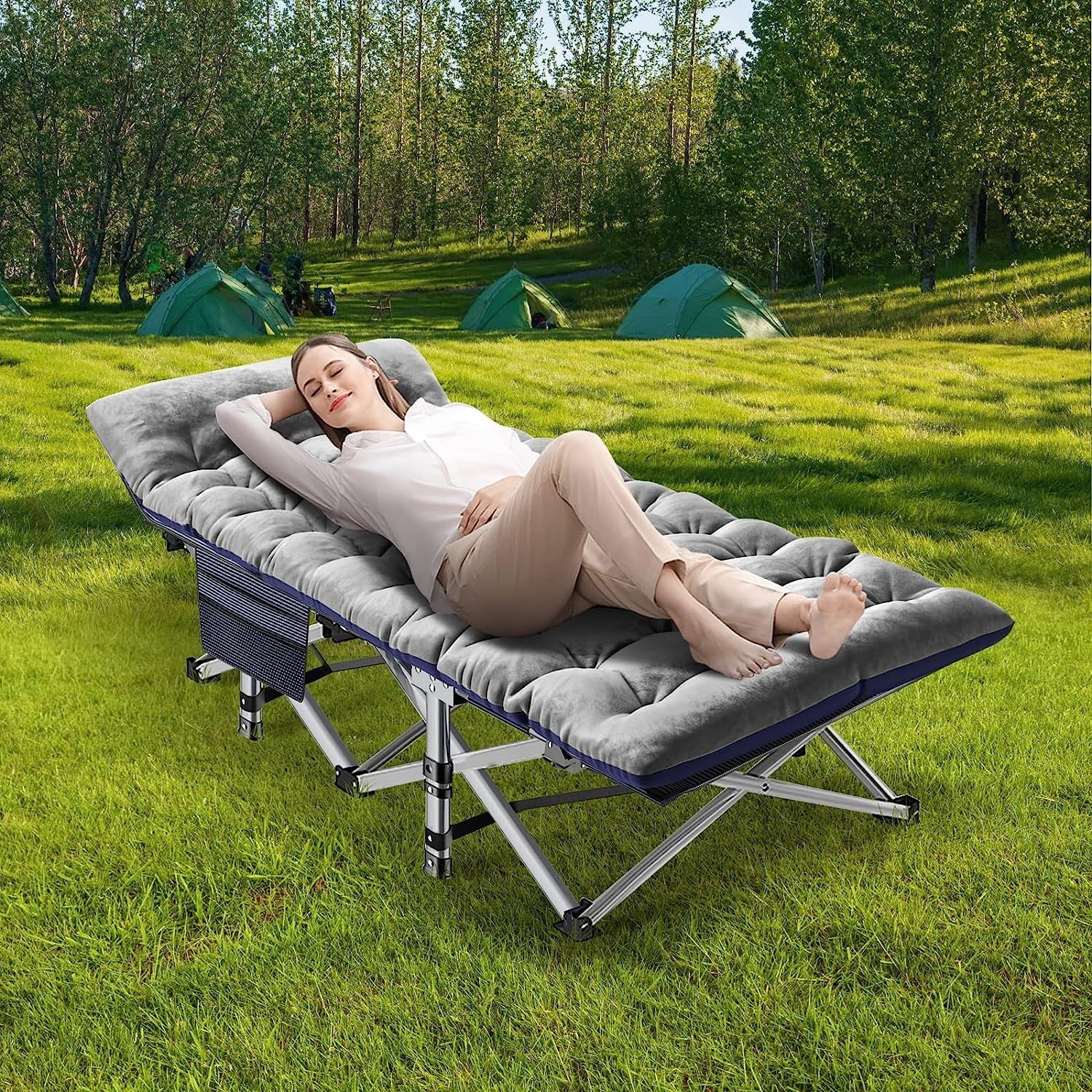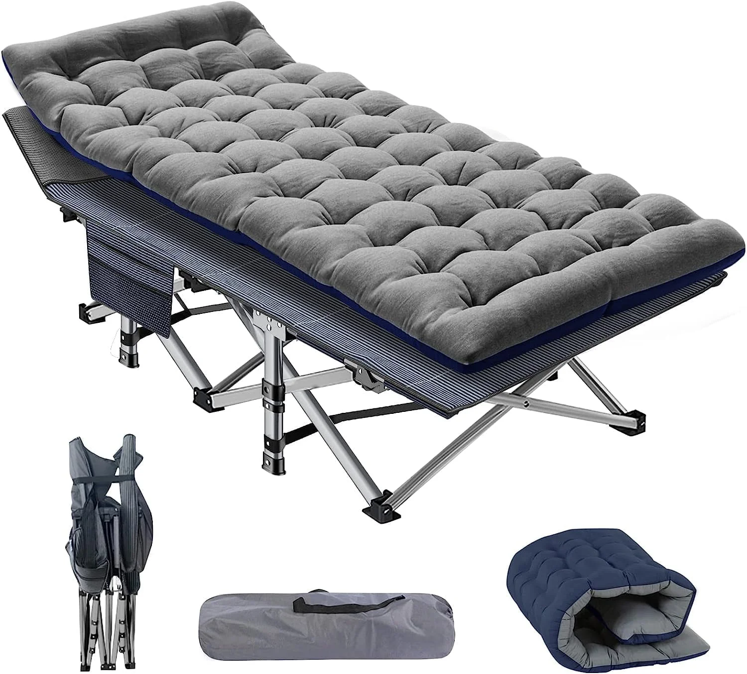 ABORON Folding Camping Cot, Lightweight Portable Heavy Duty Adult & Kids Travel Cot Supports up to 880lbs. Can bear 1 adult or 2 children sleeping on it to rest. Quality double layers 1200D polyester fabric and steel frame. Equipped with 2 Sided mattress, you can sleep more comfortably in this portable folding camping bed. Soft cushions add extra comfort. In hot weather, the cushion can also be taken away for the breathable. No need for troublesome installation. Our foldable cot opens in less 10 seconds, light weight, easy-to-fold. Unfolded Dimension: 75"* 28"*14",Folded Dimension: 39'' * 8''. Weighs approximately 17 pounds. A carry bag with a handle is available. Easy to take it out for camping. Great folding cot,outdoor cot,camping cot with mattress, for hiking, camping, traveling, hunting; or as a snap cot in the office; also a perfect temporary bed when guests visit your home.