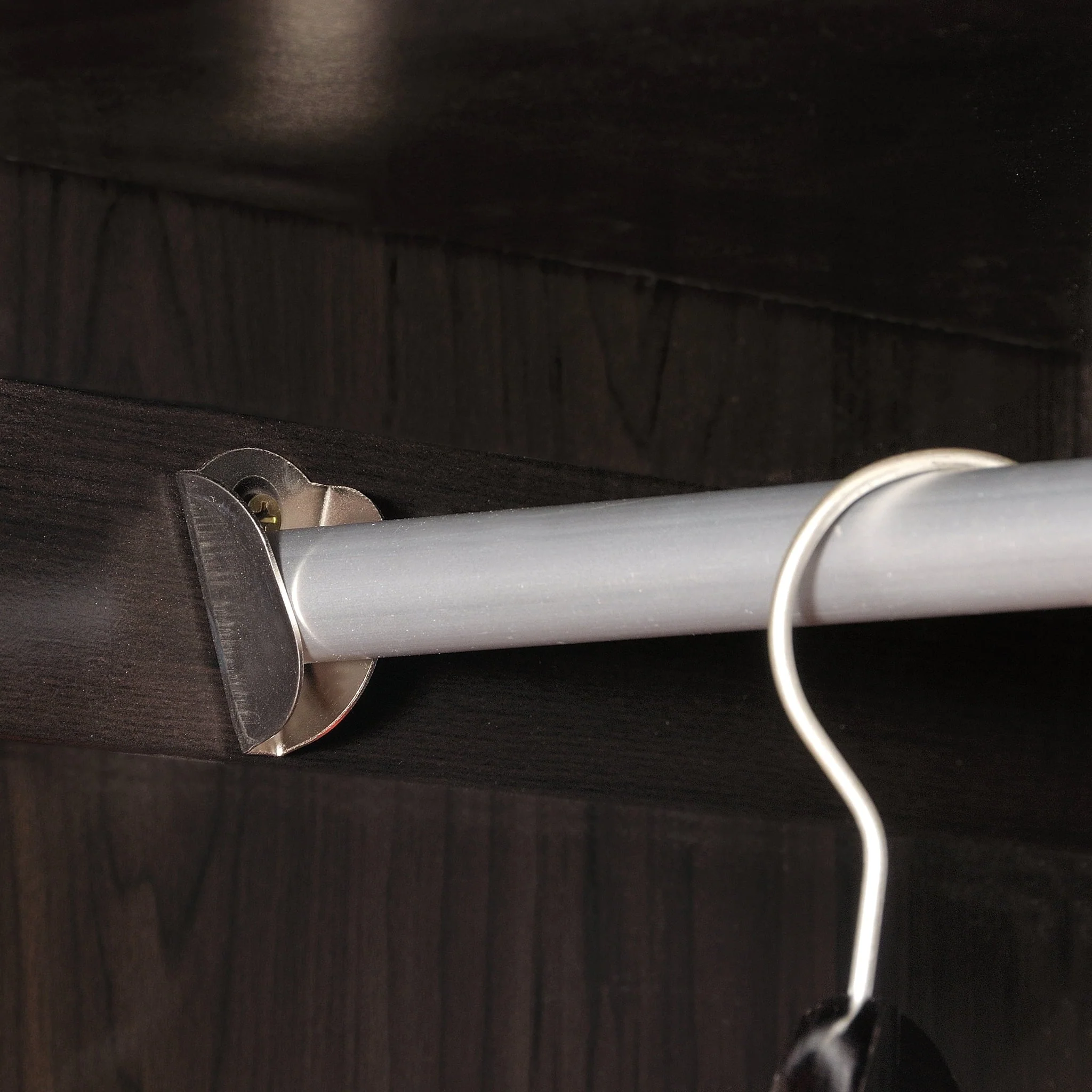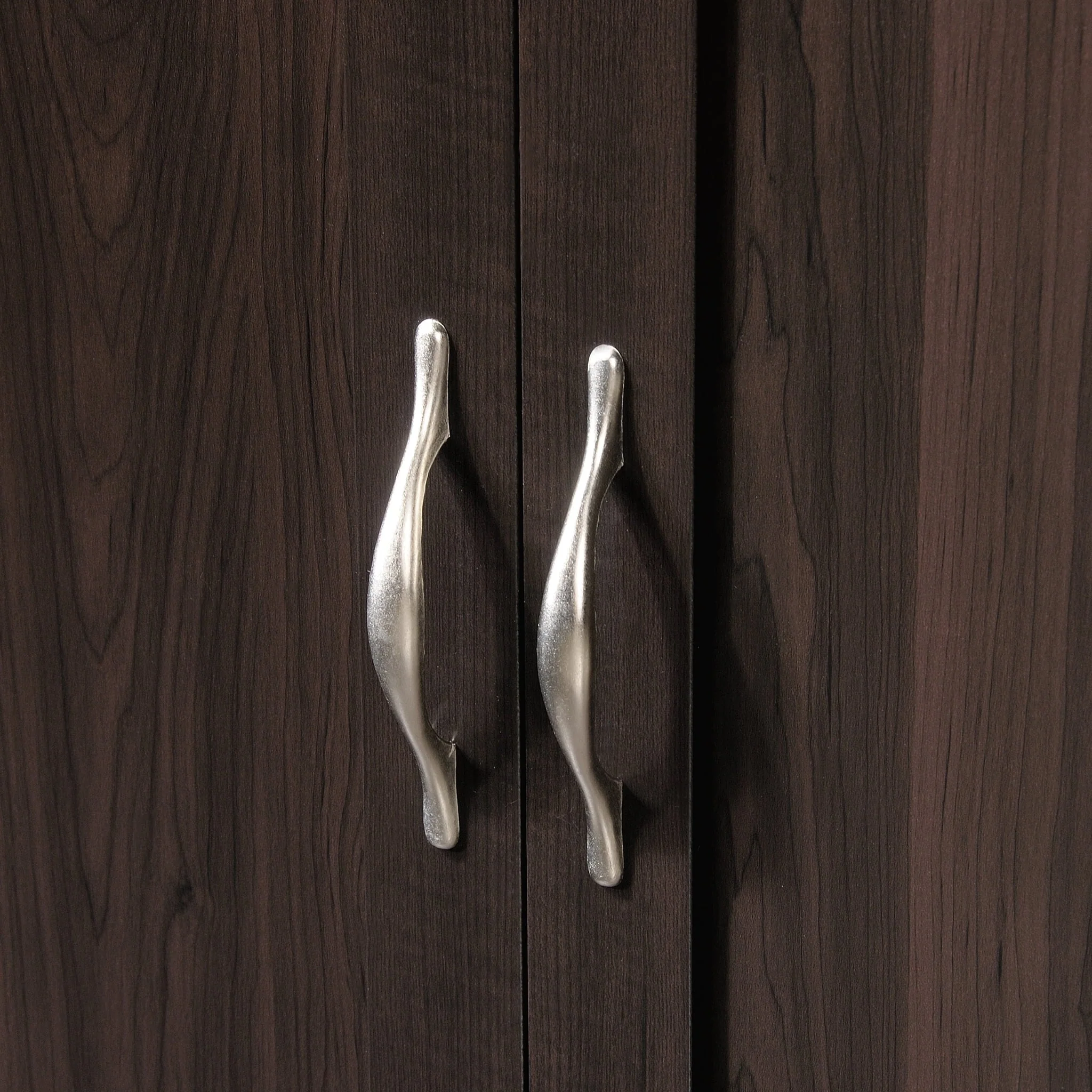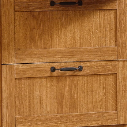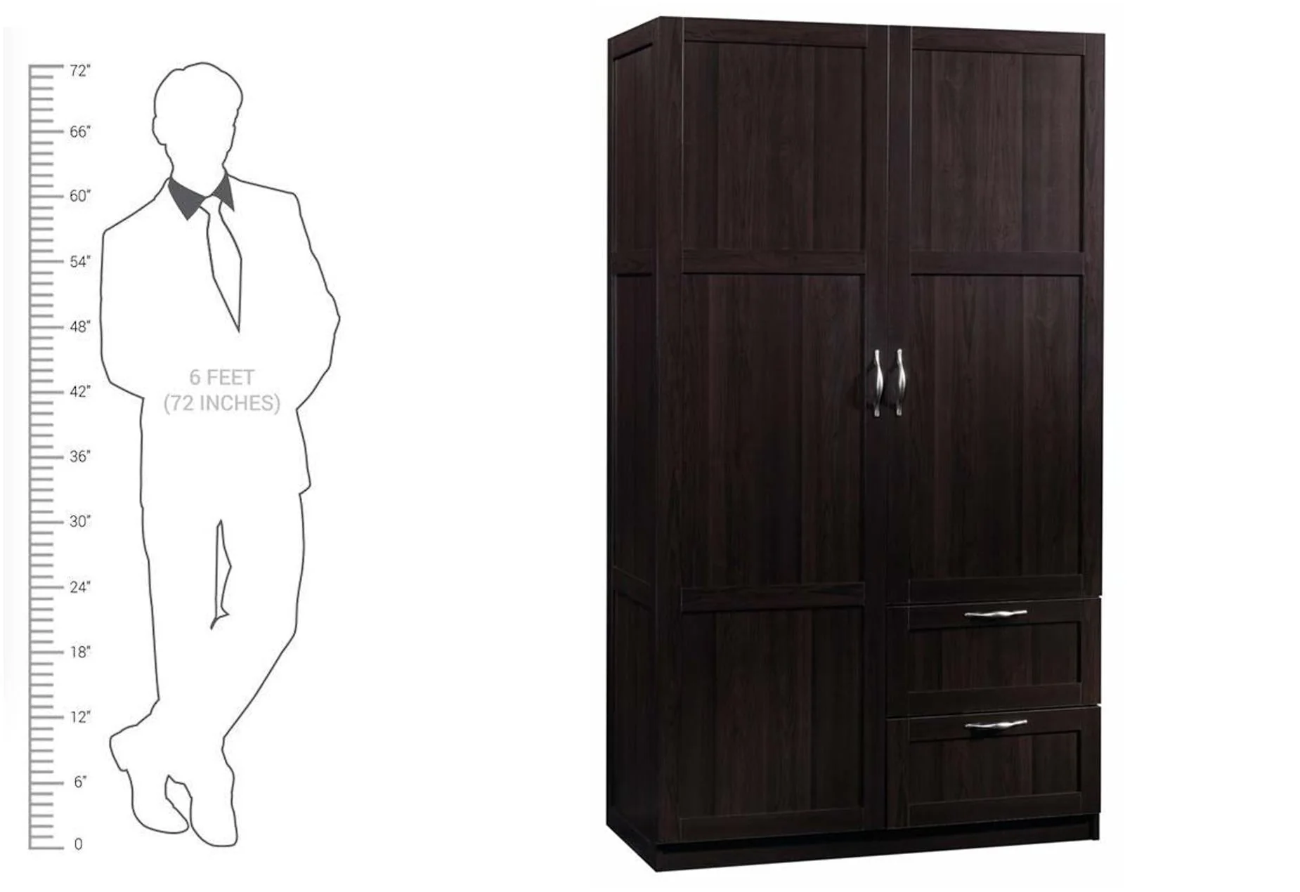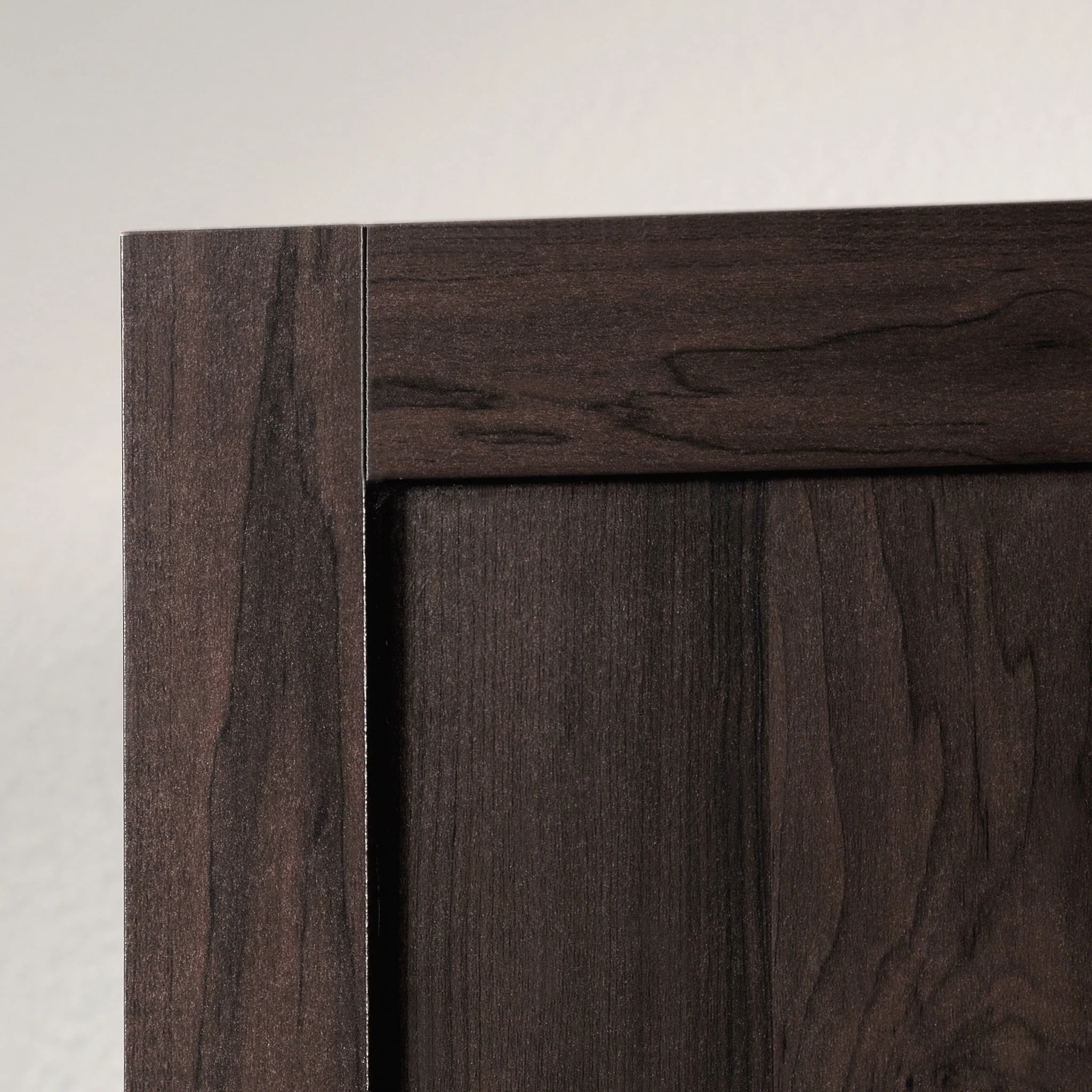 Need a place to store your abundance of clothes, linens, jackets, school or work supplies, and much more? Check out this storage cabinet from Sauder Select collection. This cabinet with doors features a garment rod to hang coats, jackets, your school uniform, dress clothes, and anything that needs to be kept wrinkle free. The upper fixed shelf behind the full-length door, and one fixed and one adjustable shelf behind the upper door, give you ample room to store board games, shoes, organizing bins, seasonal outerwear, books—anything you could think of! Two lower easy-to-access sliding drawers with metal runners, create storage space for blankets, pillows, extra bed sheets and more. The storage possibilities are endless! Place this storage wardrobe in any room of your home for ample storage space. Finished in a dark Cinnamon Cherry and detailed with framed panel doors and sides, this wardrobe with drawers is the perfect storage solution for you.