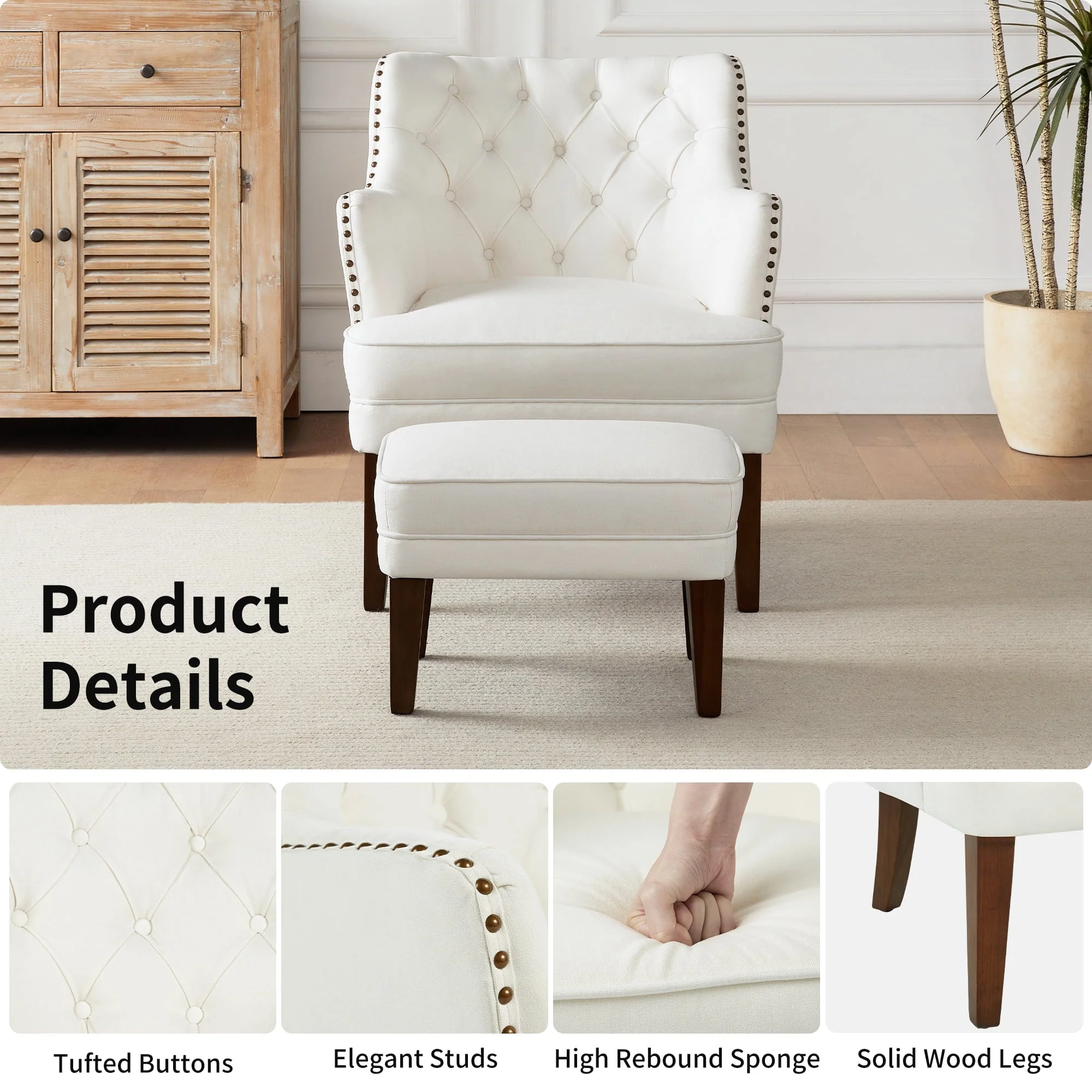 Mid century modern style with a perfectly Armchair and Ottoman Set that is ideal for any living room, bedroom,or other indoor place.