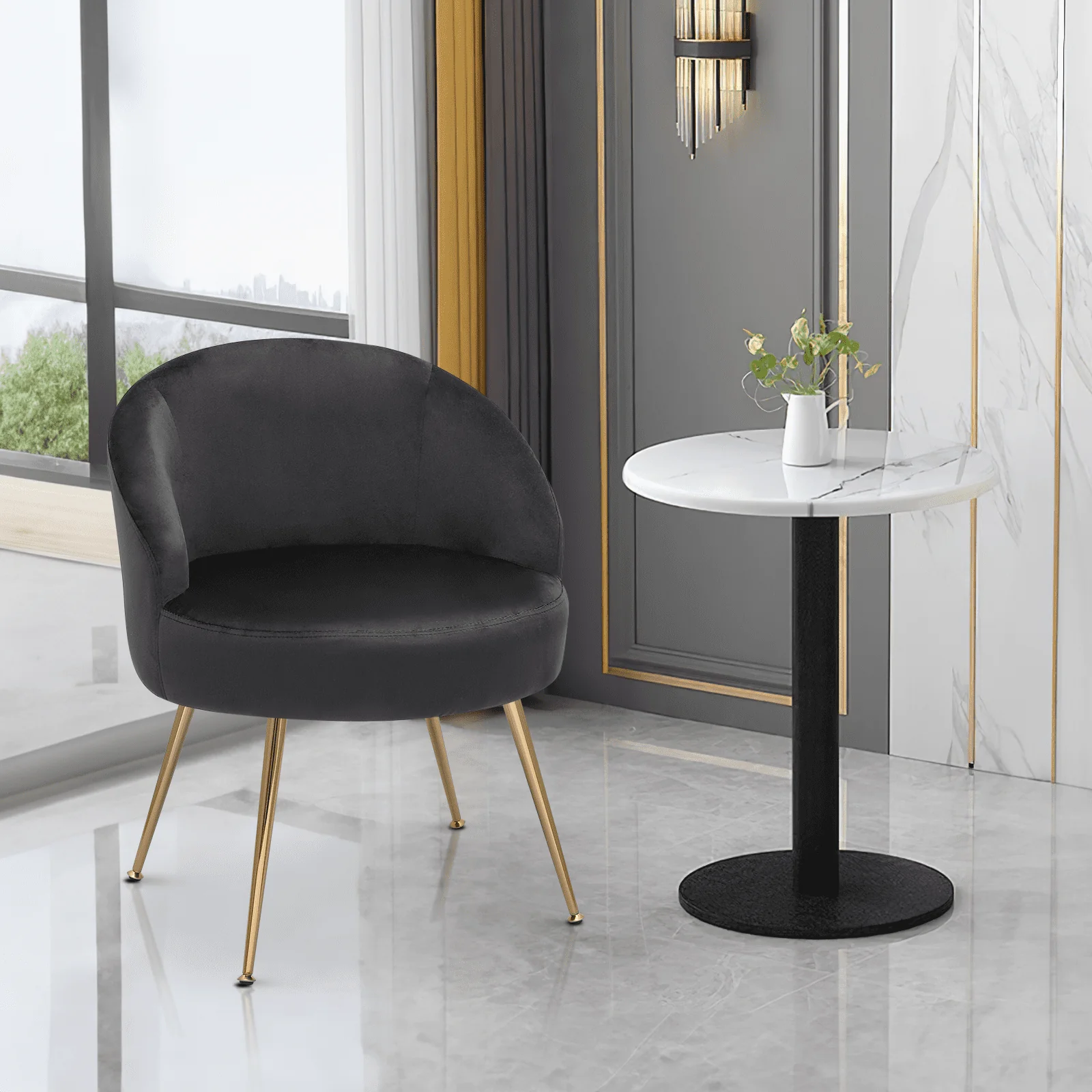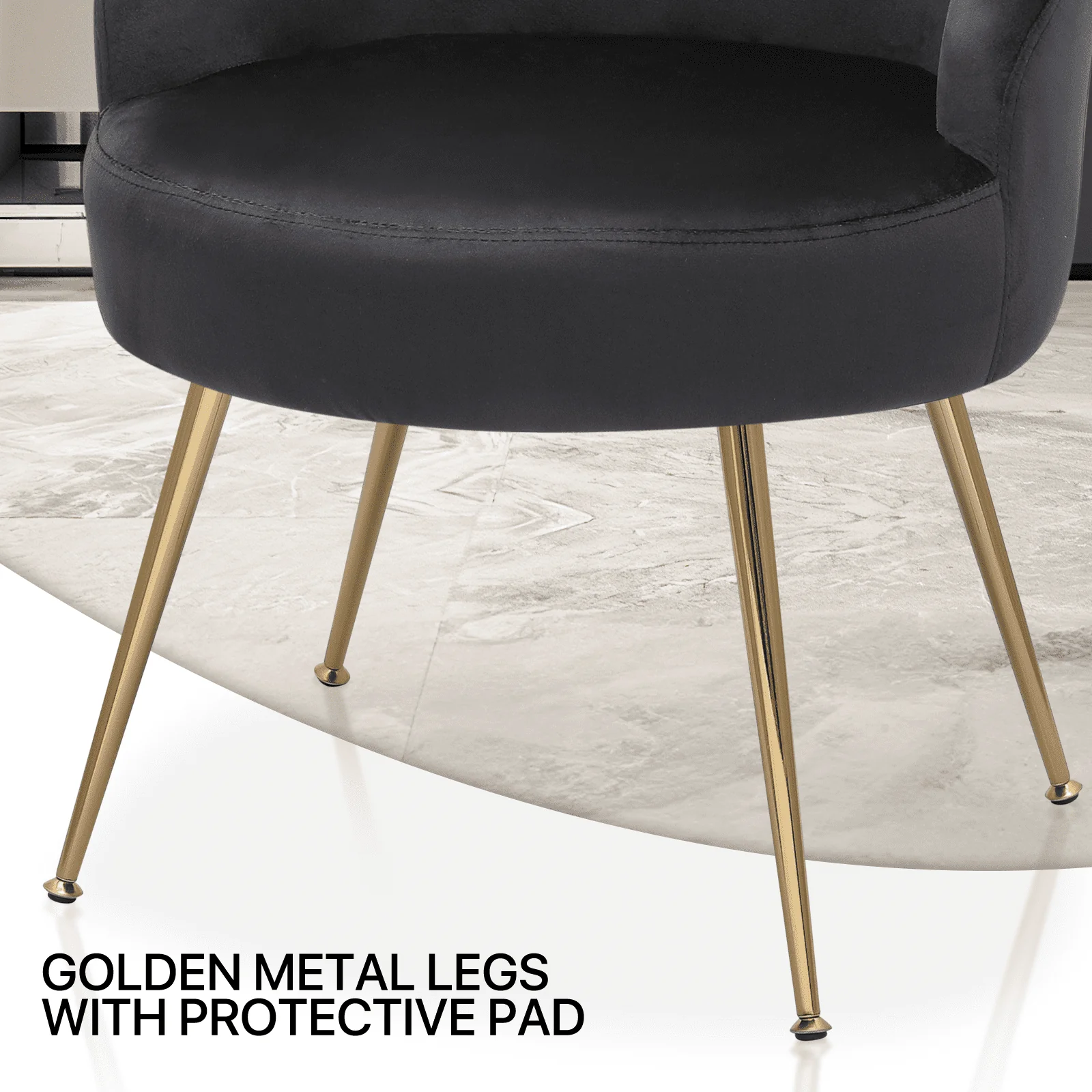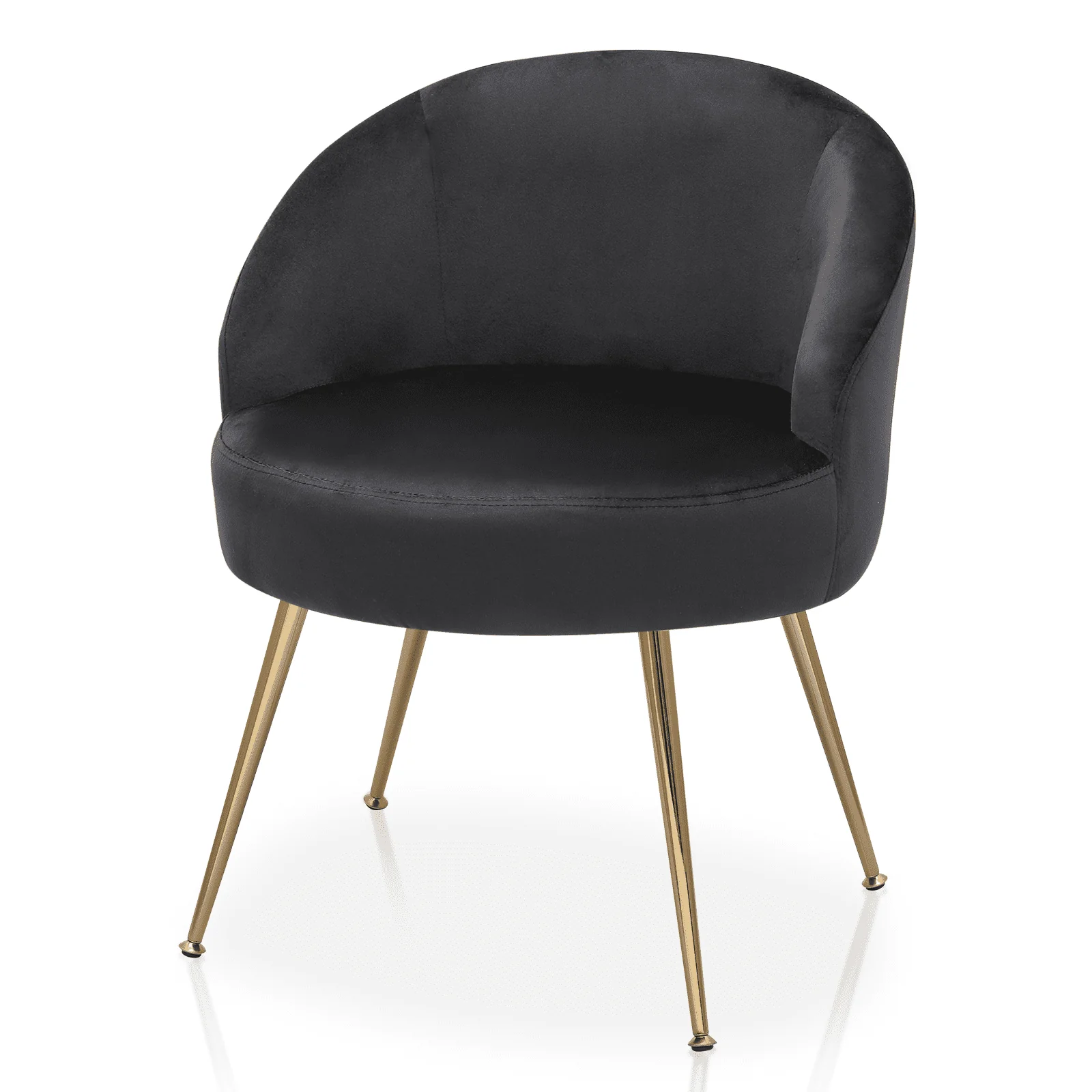 Monibloom Velvet Accent Chair, Modern Upholstered Single Sofa Side Chair, Comfy Barrel Club Living Room Armchair with Golden Metal Legs for Bedroom Reading Room Office, Black