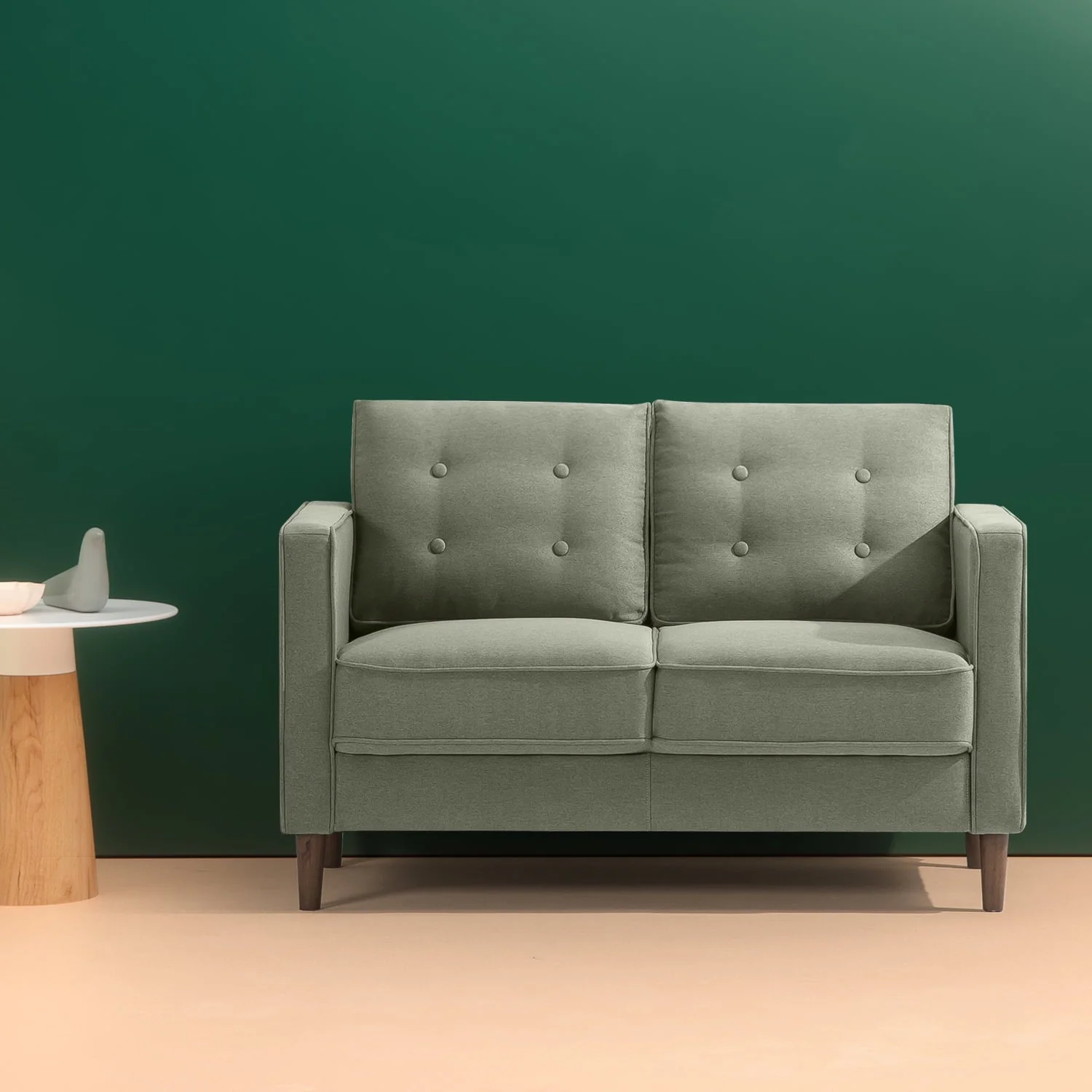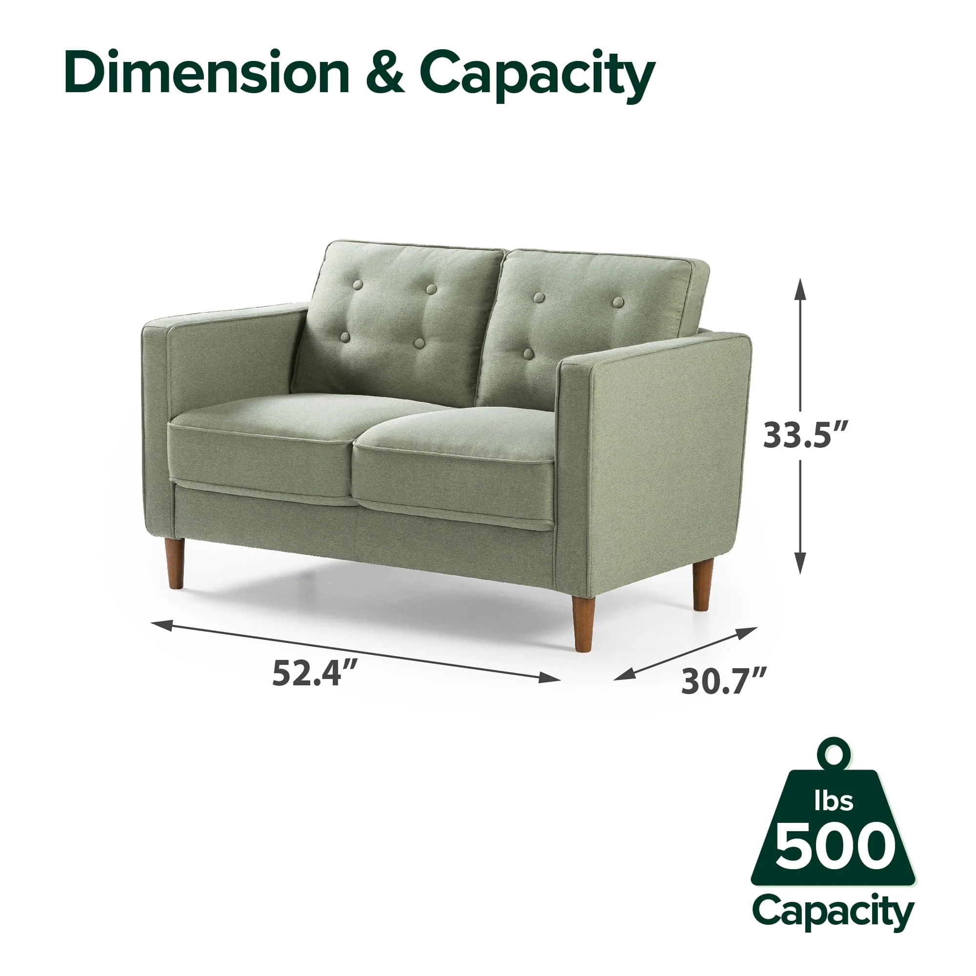Adding a dash of mid-century drama to your small space is as easy as picking up this delightful Lauren Loveseat. Designed ingeniously to be shipped in one box and assembled without tools in no time, this supportive two-seater takes apartment-sized comfort to a whole new level. The Lauren is made with durable foam cushions wrapped in a charming pear green fabric that promises to add a pop of color to a cozy loft, small office or living room. Like all of our sofas and loveseats, it’s covered by a one-year worry-free warranty. So once this gem arrives at your doorstep, all you’ll need to complete the ambiance are your favorite throw pillows and a good book.