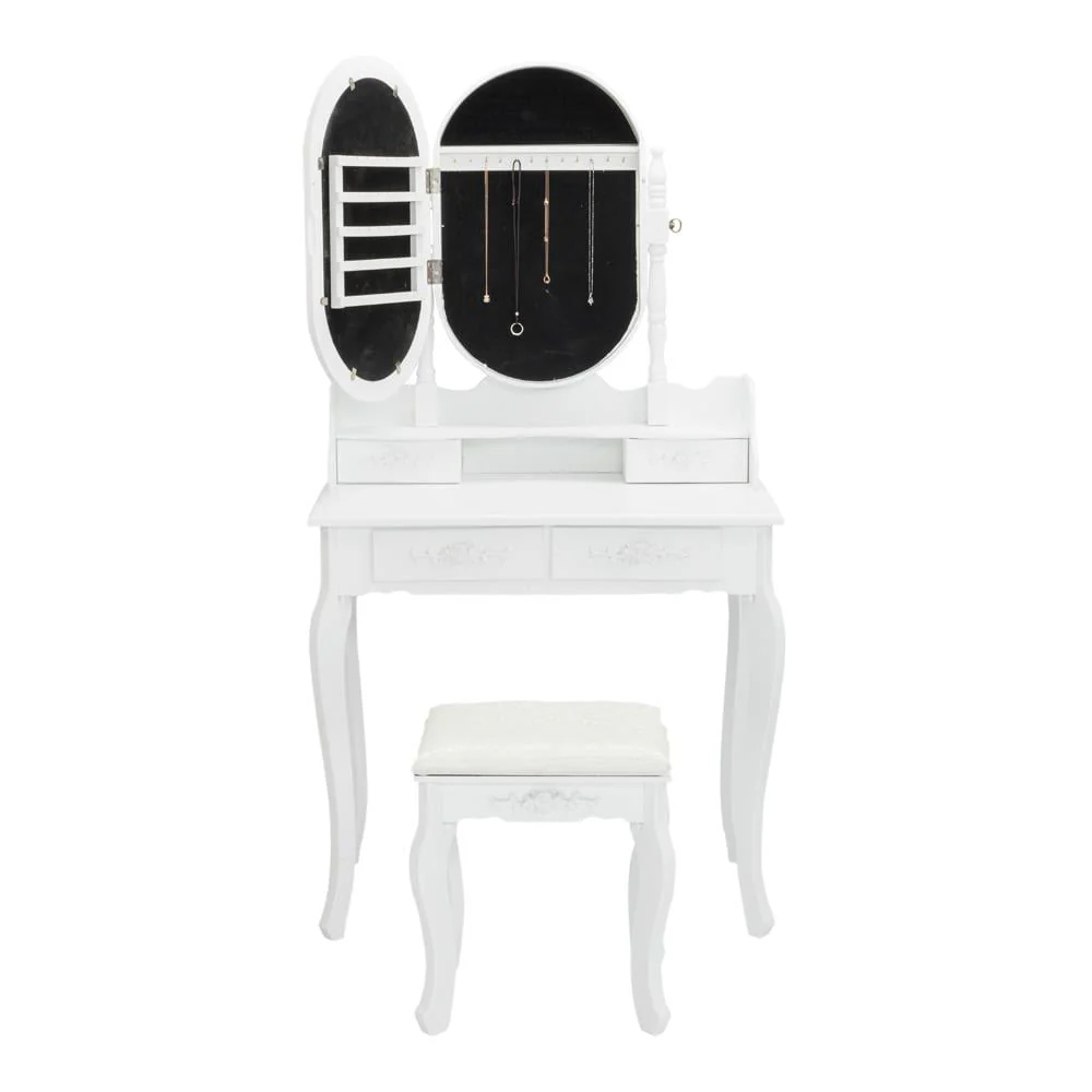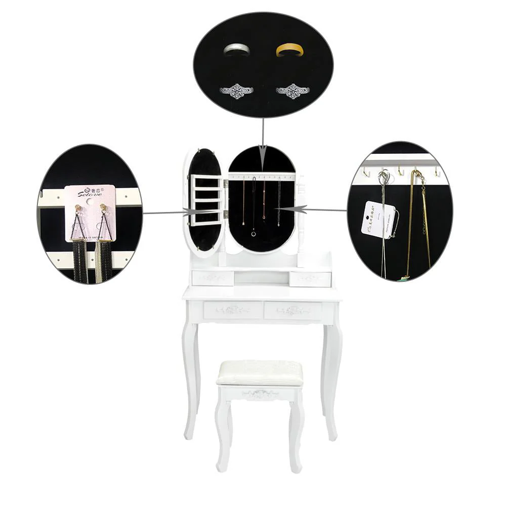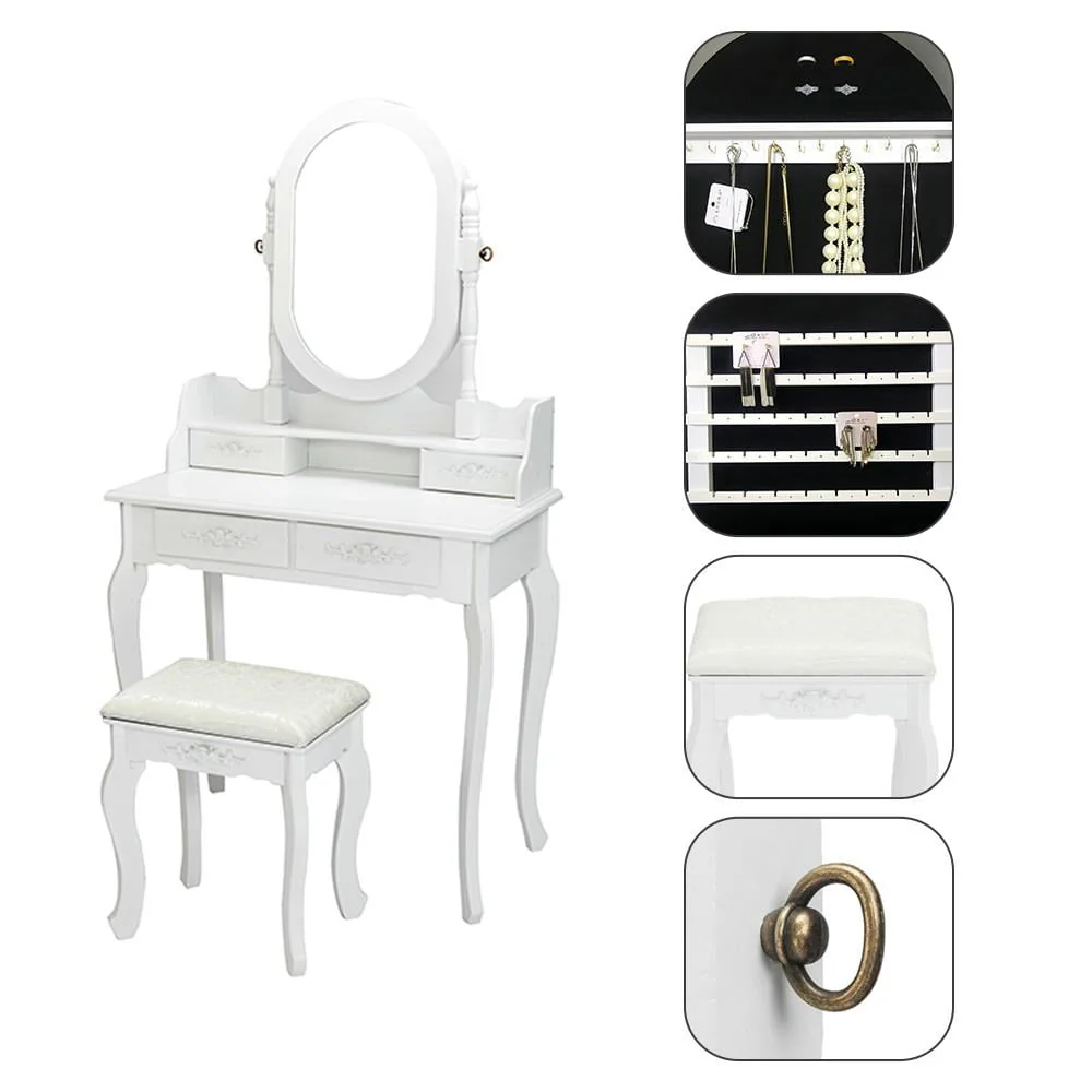 ãGreat Gift Ideaã: It's no secret that every girl wants to own a vanity tables, 4 drawers dressing table lets girls indulge their inner princess,which is a great gift idea for your daughter and granddaughter.Oblong mirror and lovely appearance in white makes it easily match your other furniture and décor design.