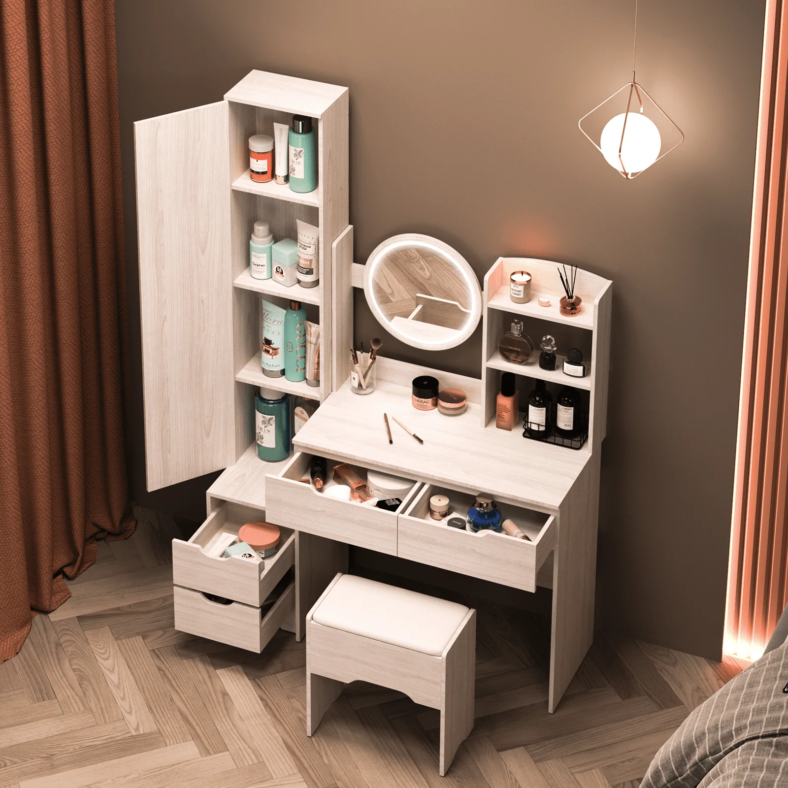 Our vanity table is designed by world top designer which we have a complete set of independent patents. During the design process, we make full use of all space of the dresser to ensure all your cosmetics, skin care products, perfume, pendants, earrings, decorations, books etc can be well organized.