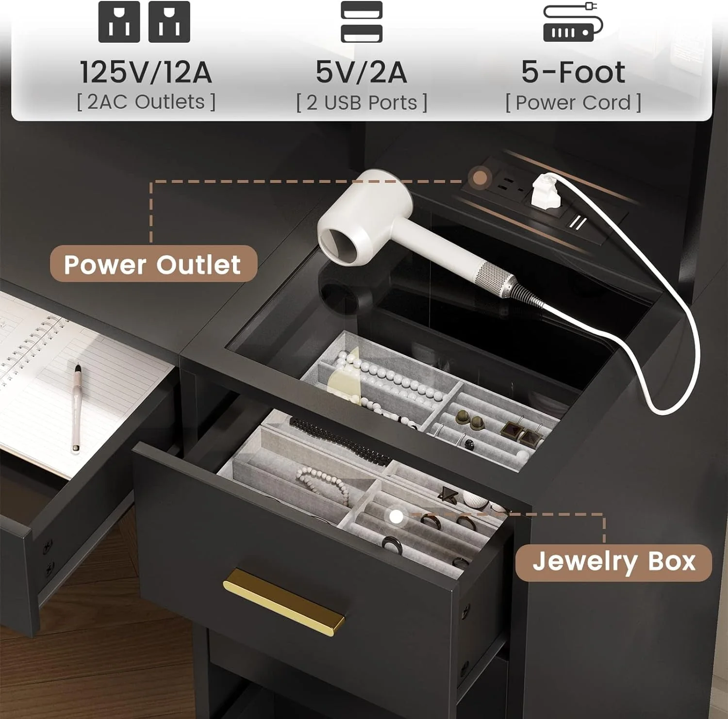 ✨The vanity set table with unique perforation technology for mirrors, more advanced, and more beautiful.