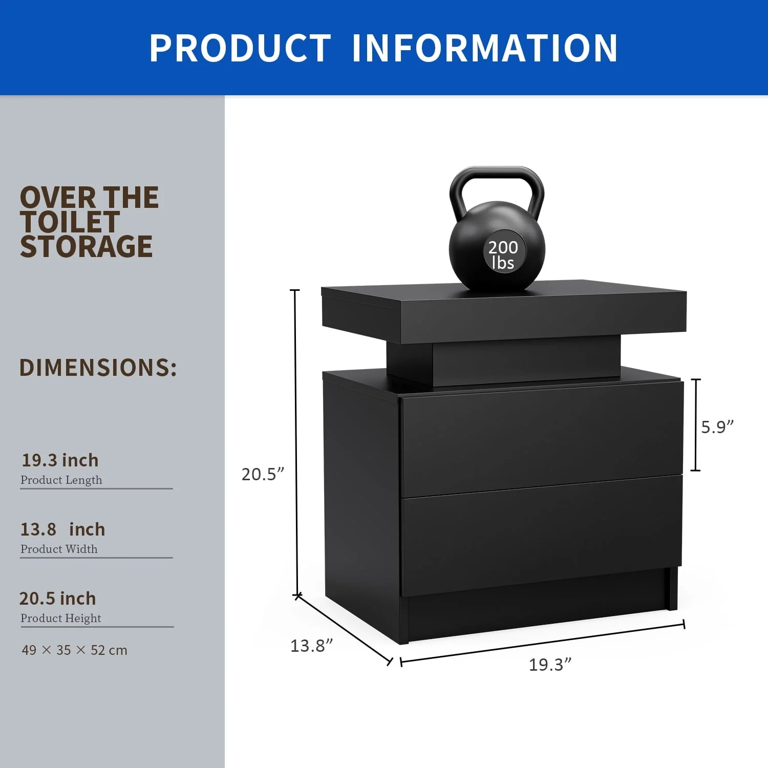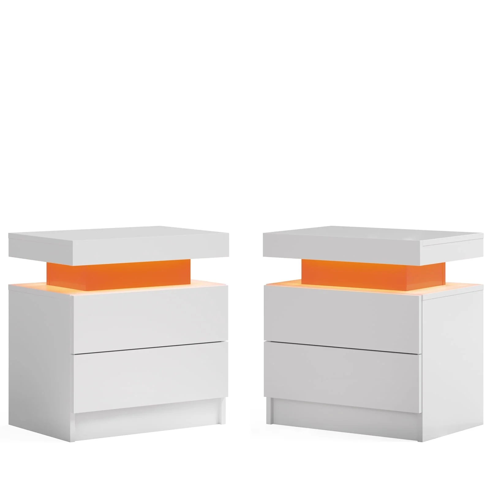 LED Nightstand Set of 2, Modern Bedside Table with 2 Drawers Storage Space, Adjustable Colors LED Light, Black