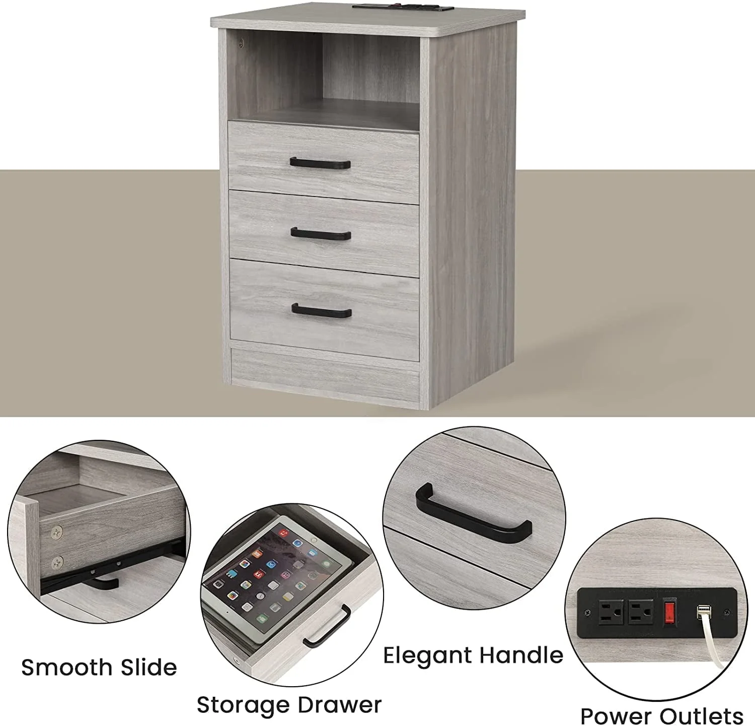 【Sturdy & Durable】This nightstand is made of P2 MDF and aluminum handles,sturdy and durable to use.