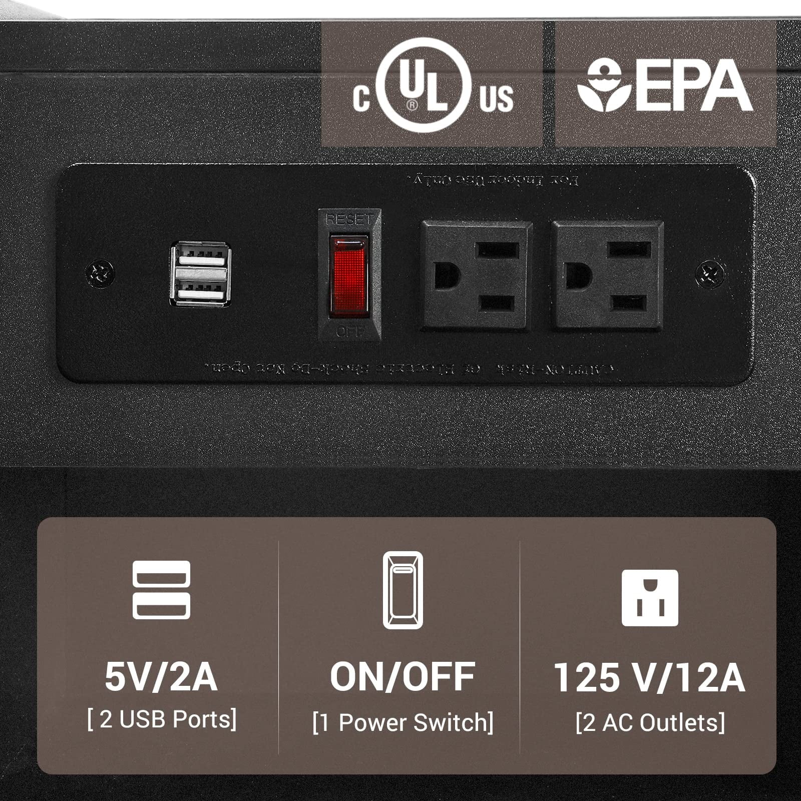 Our charging station includes 2-Outlet & 2 USB Ports with an on-off Switch. Thanks to the on-off switch, it strengthens security. It allows you to charge mobile devices such as cell phones, tablets, mini fans, etc.