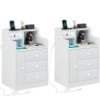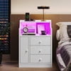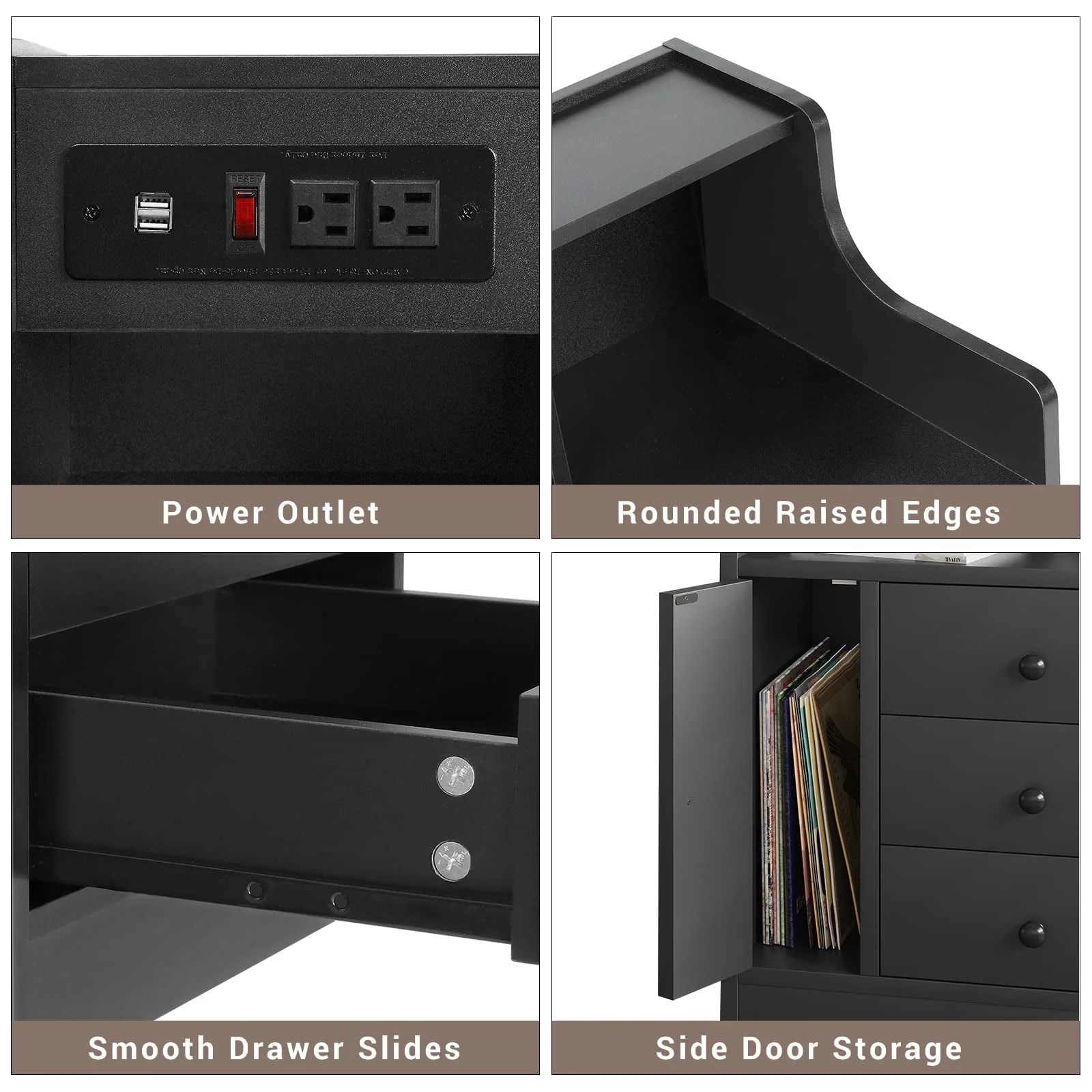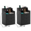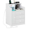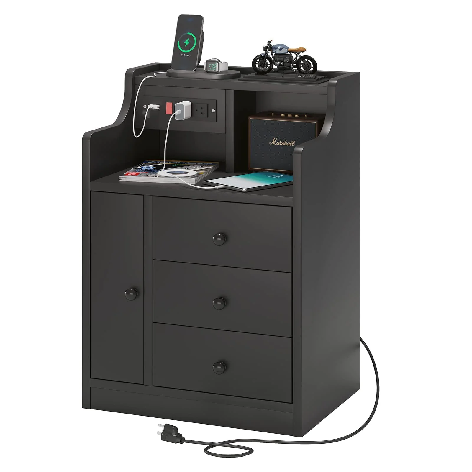 • Nightstand with 3 Storage Drawers and Hutch, Black Night Stand with Charging Station End Side Table with 1 Door, Modern Bedside Table for Bedroom