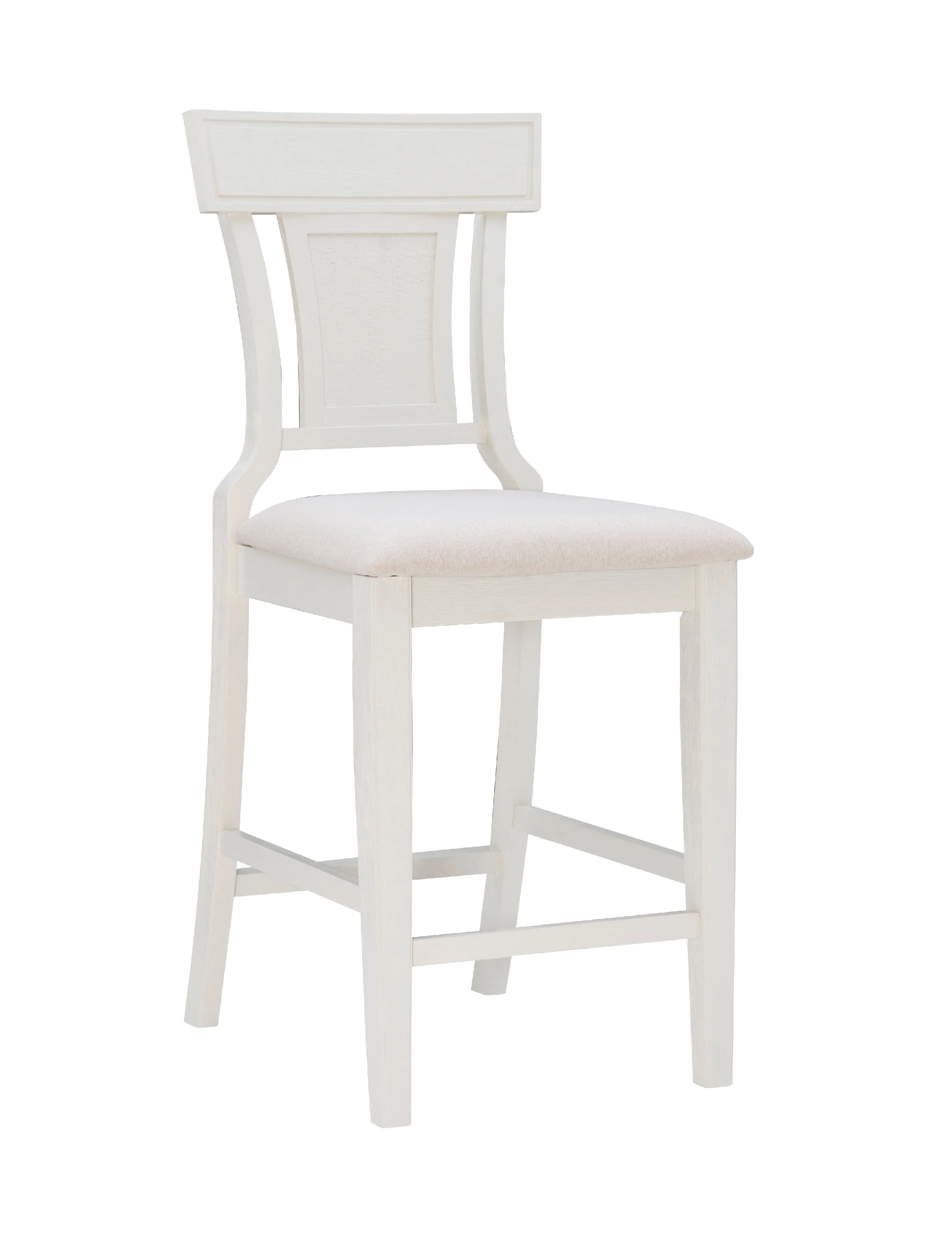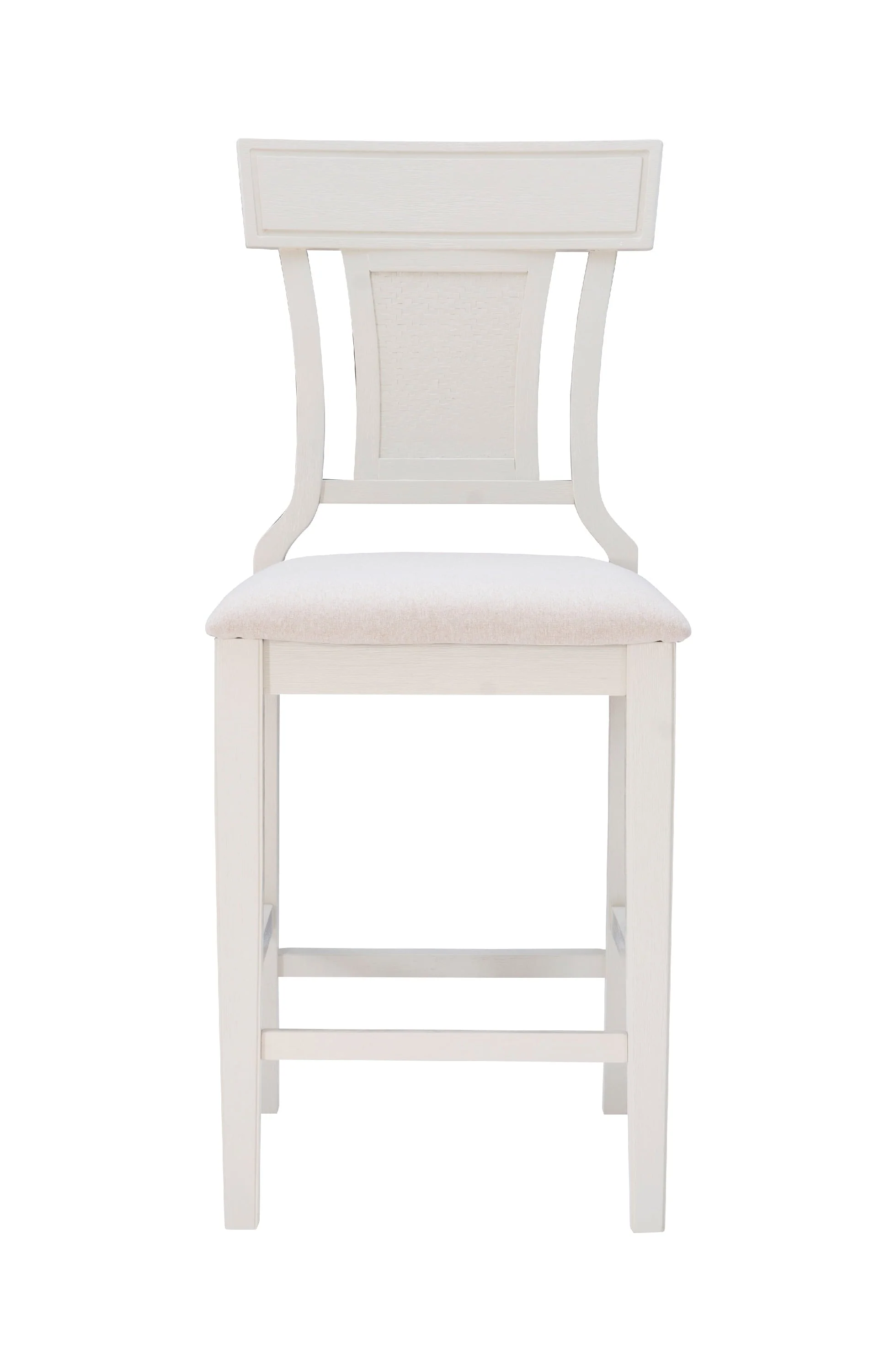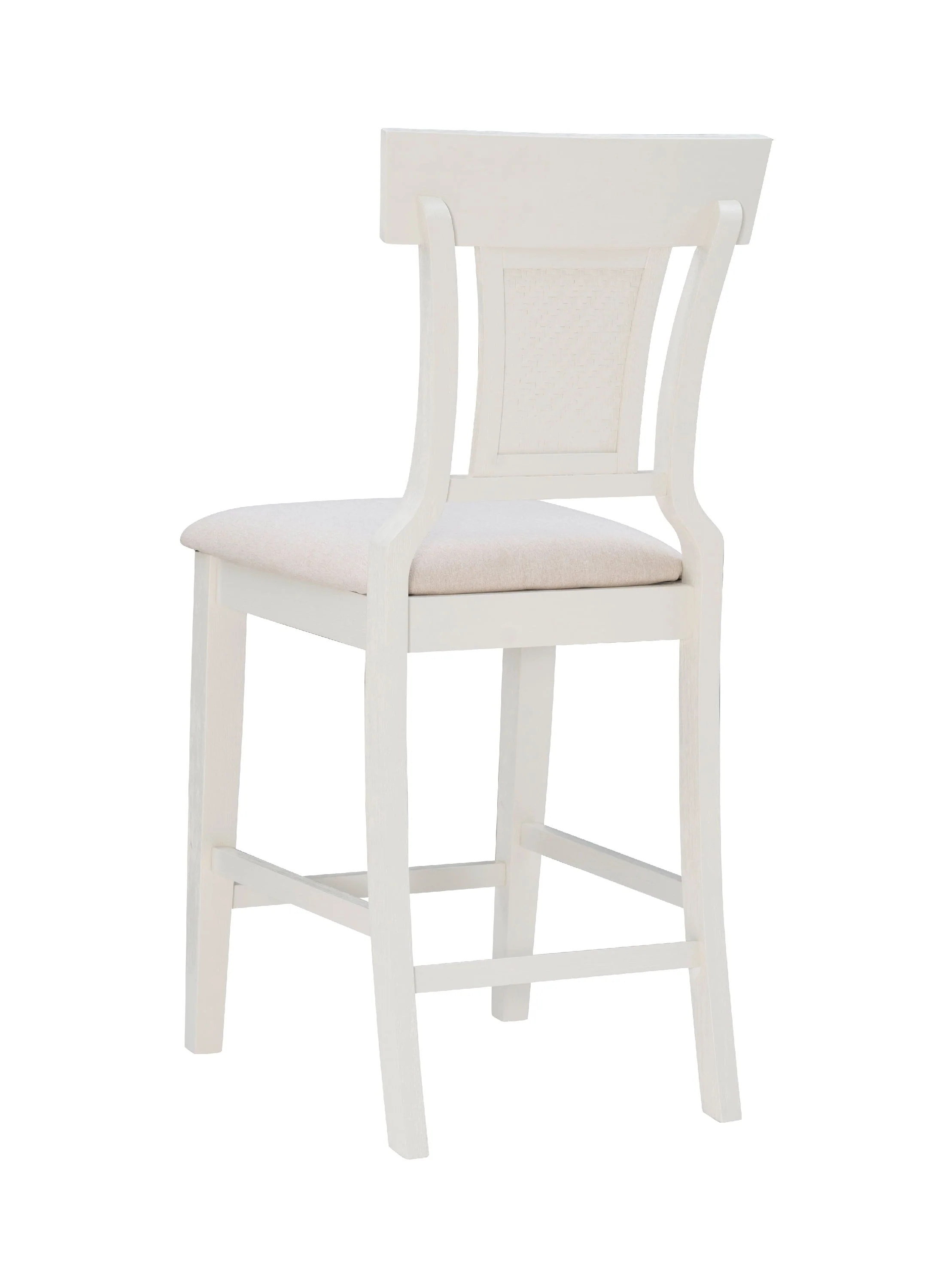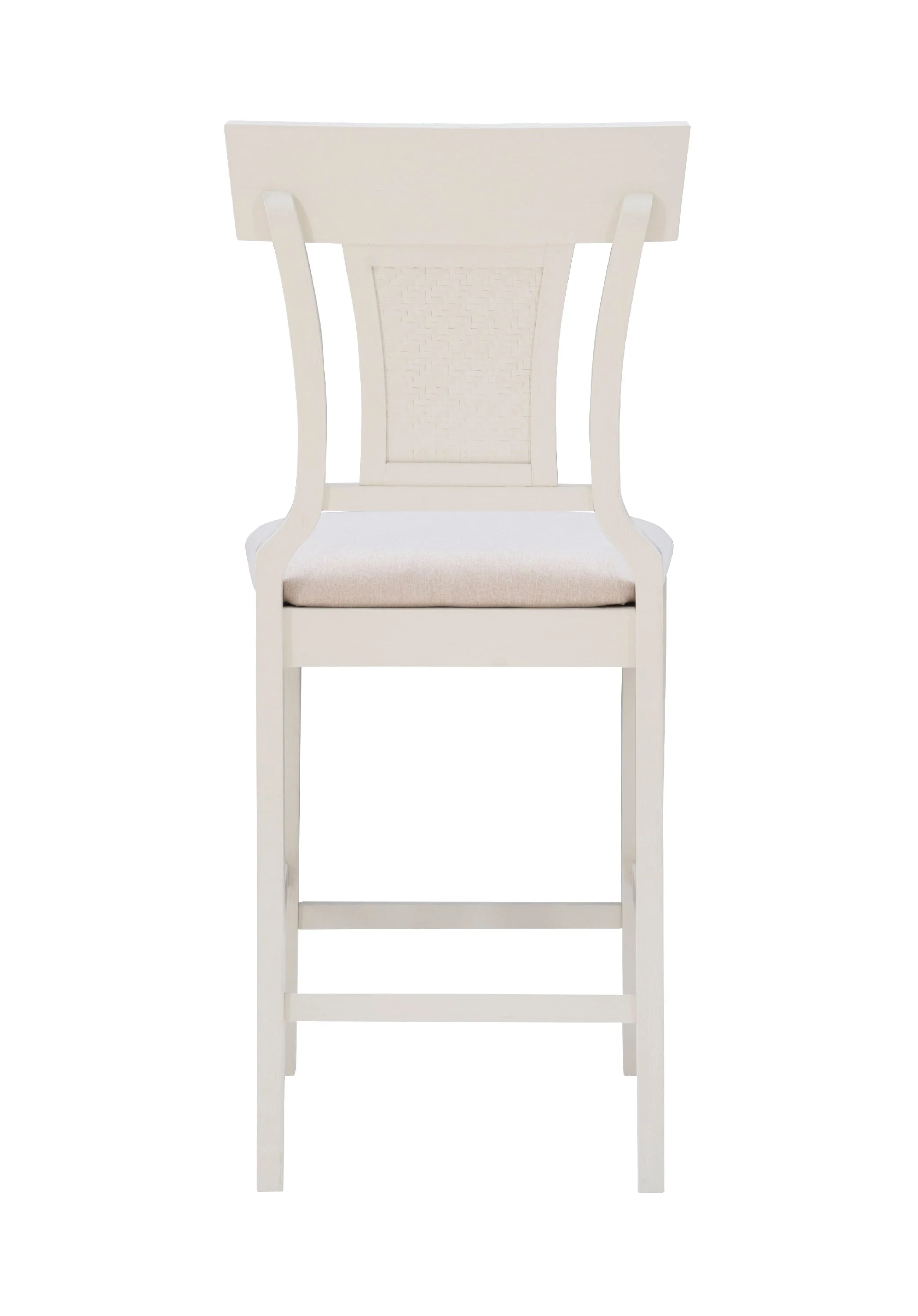Bring a hint of the countryside into your kitchen with this farmhouse style Linon Roseglen 26" Counter Stool. A solid wood frame and footrails provide comfort and stability, while the swooping sides and handwoven rattan center round out the design with elegant detail. The seat is upholstered in 100% polyester fabric that mimics the look of beige linen and is easy to maintain. With a seat height of 26 inches, this stool is perfect for any counter standing at 35�?to 39".