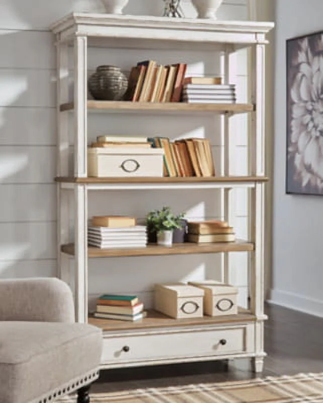 • Signature Design by Ashley Realyn French Country 75" Bookcase with Drawer, Chipped White