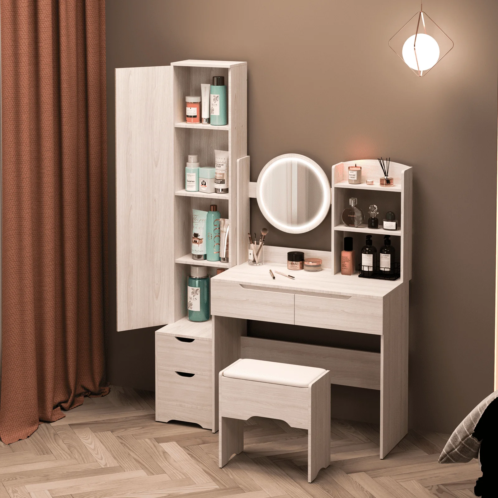 Our vanity table is made of the wood materials, which are specially crafted to prevent moisture and deformation. The excellent design materials ensure the dressing table more sturdy and durable.