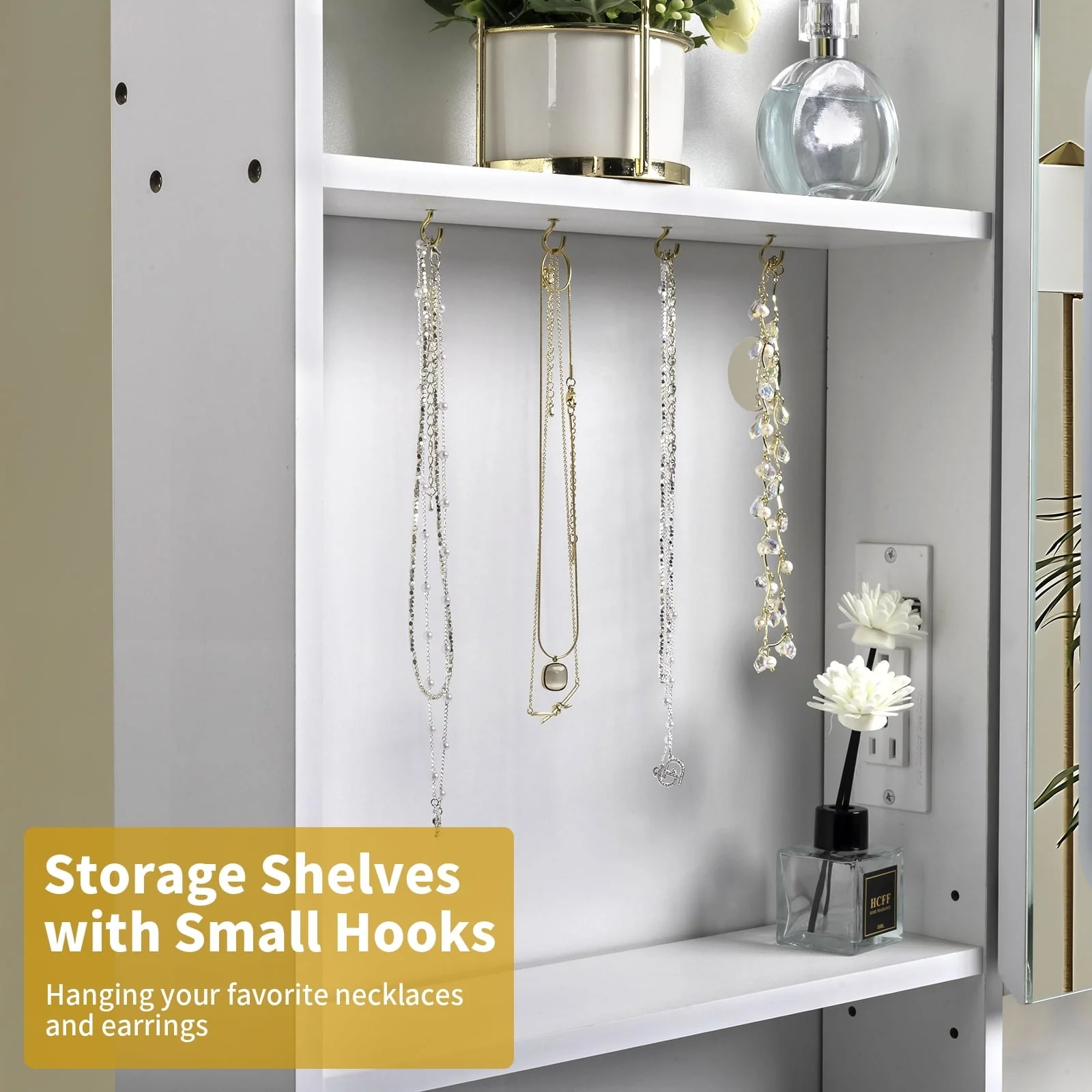 The hooks on the storage shelf for hanging your necklaces and earrings