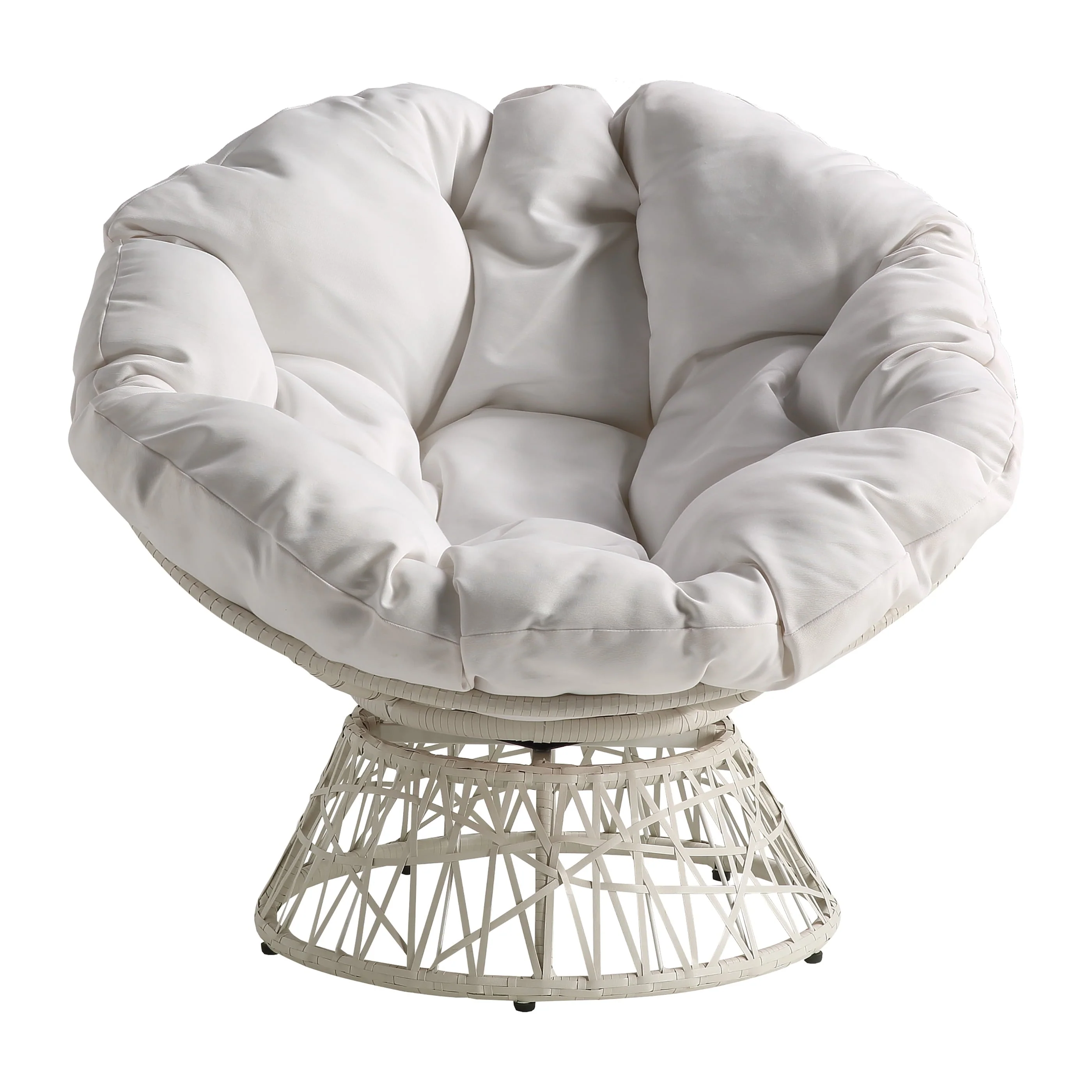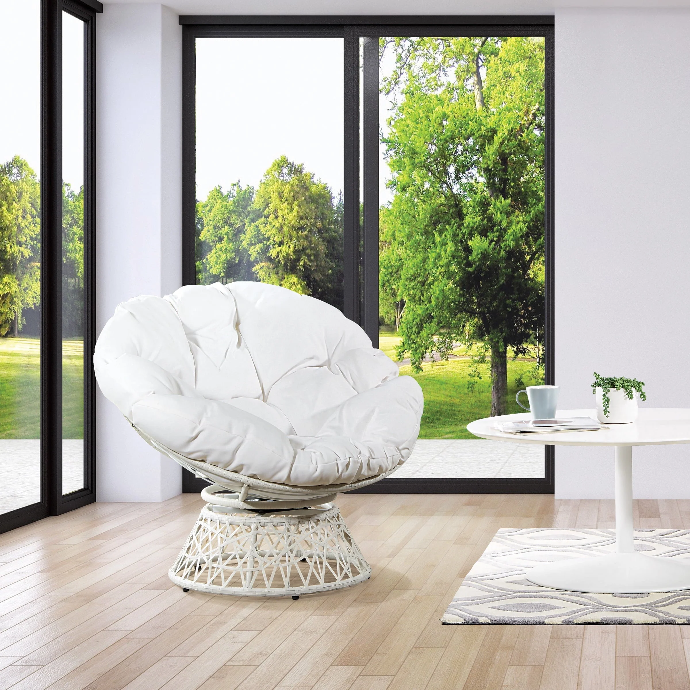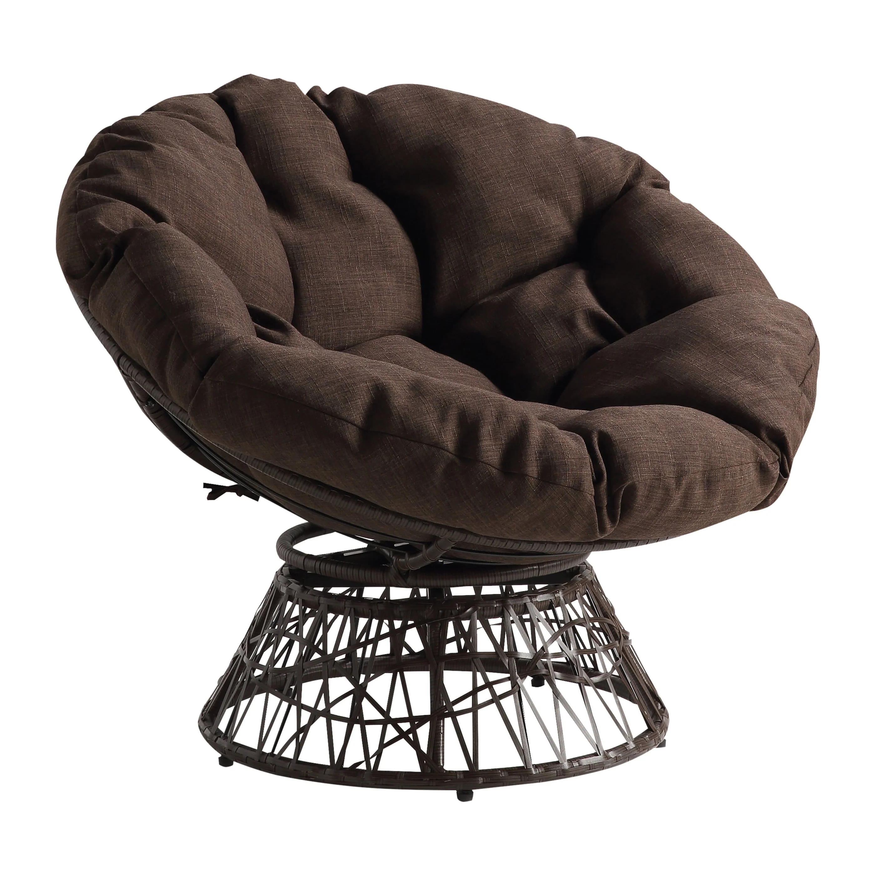 Create a laid back vibe in your home with our twist on the classic papasan chair design. Nest into the generously large Dacron-filled cushion. Enjoy the boho styling of our durable resin wicker wrapped over a metal frame. Complete with a 360 swivel to twist and turn to your hearts content. Tune in to a time when listening to your favorite albums and sipping on a cool, refreshing drink was your only ambition for the day. Add a bit of fun to your living room, family room or dorm with our easy, casual Papasan Chair. Available in several exciting colors and finishes. Durable, well built and just plain fun!