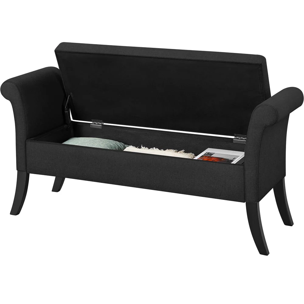 Get yourself a versatile ottoman bench to help you out with seasonal accessories, blankets, books, and pillows. This functional storage bench will make you enjoy the moment spent at home. Crafted out of sturdy and durable MDF boards and pine wood legs, this bench is of excellent weight capacity. The skin-friendly breathable fabric is long-wearing and soft to touch, and the high-density foam serves elastic and firm to sit on. The hidden storage space is spacious that is perfect for limited space. This storage bench can be used in entryway or living room as a bench, sofa or ottoman, all up to you!