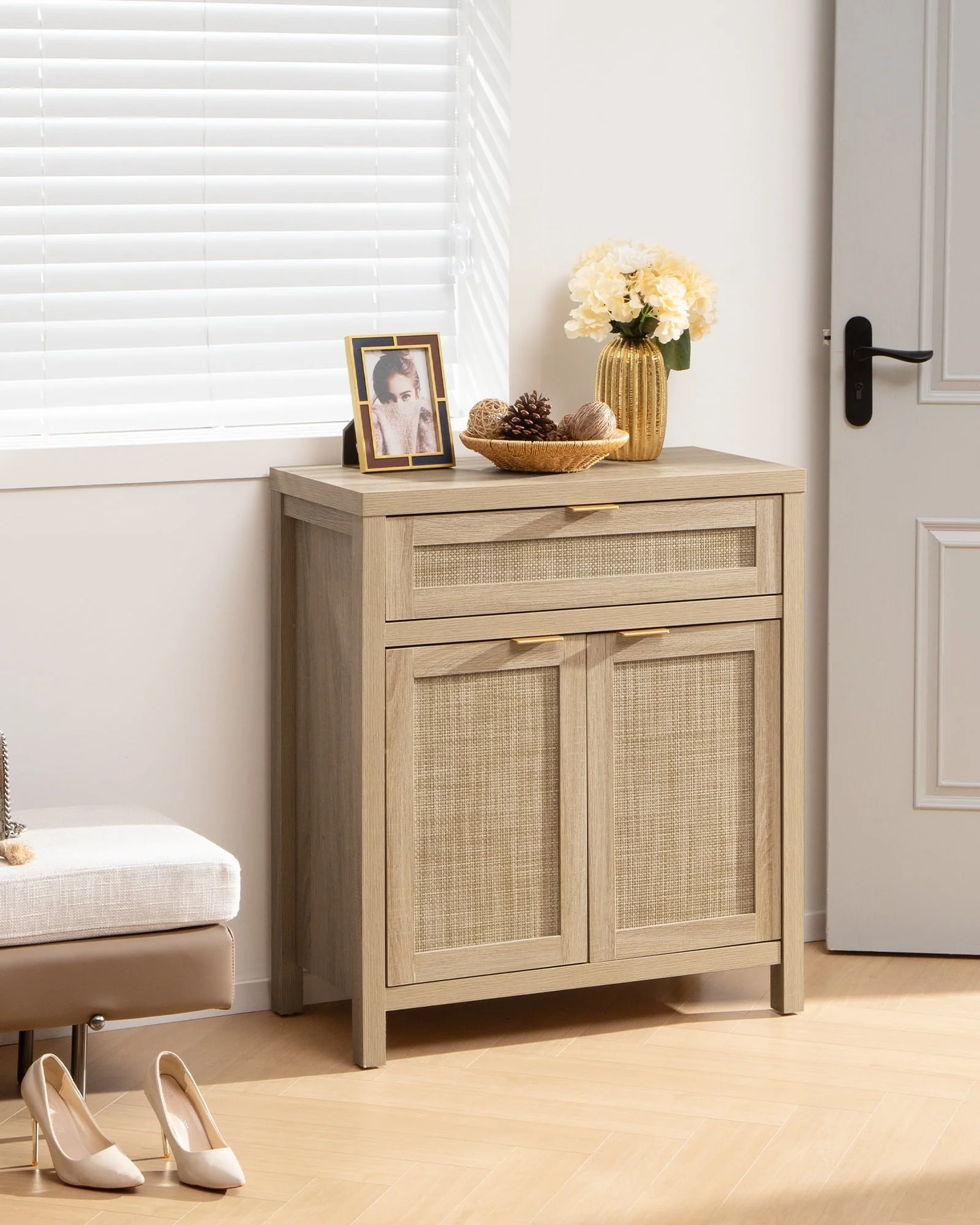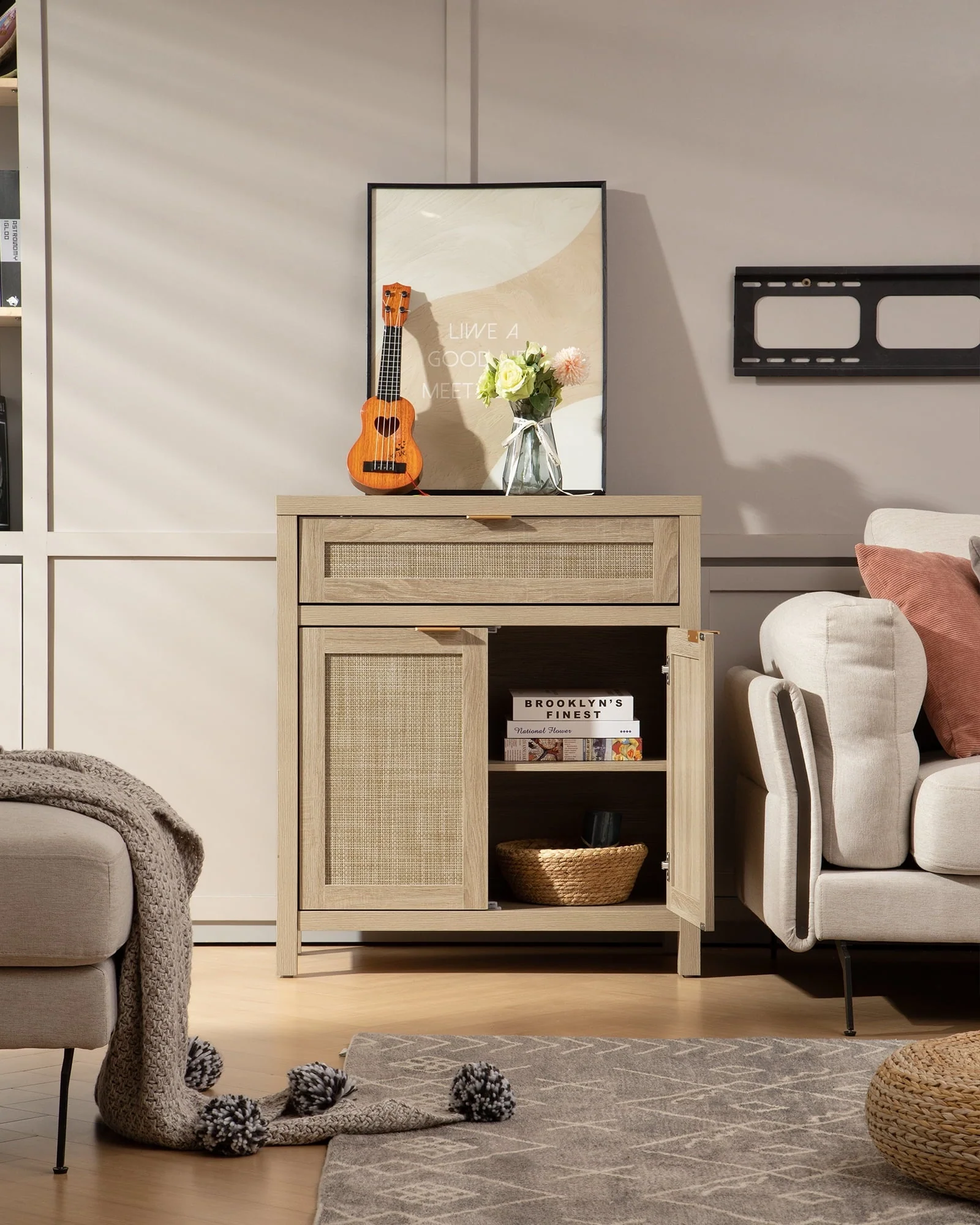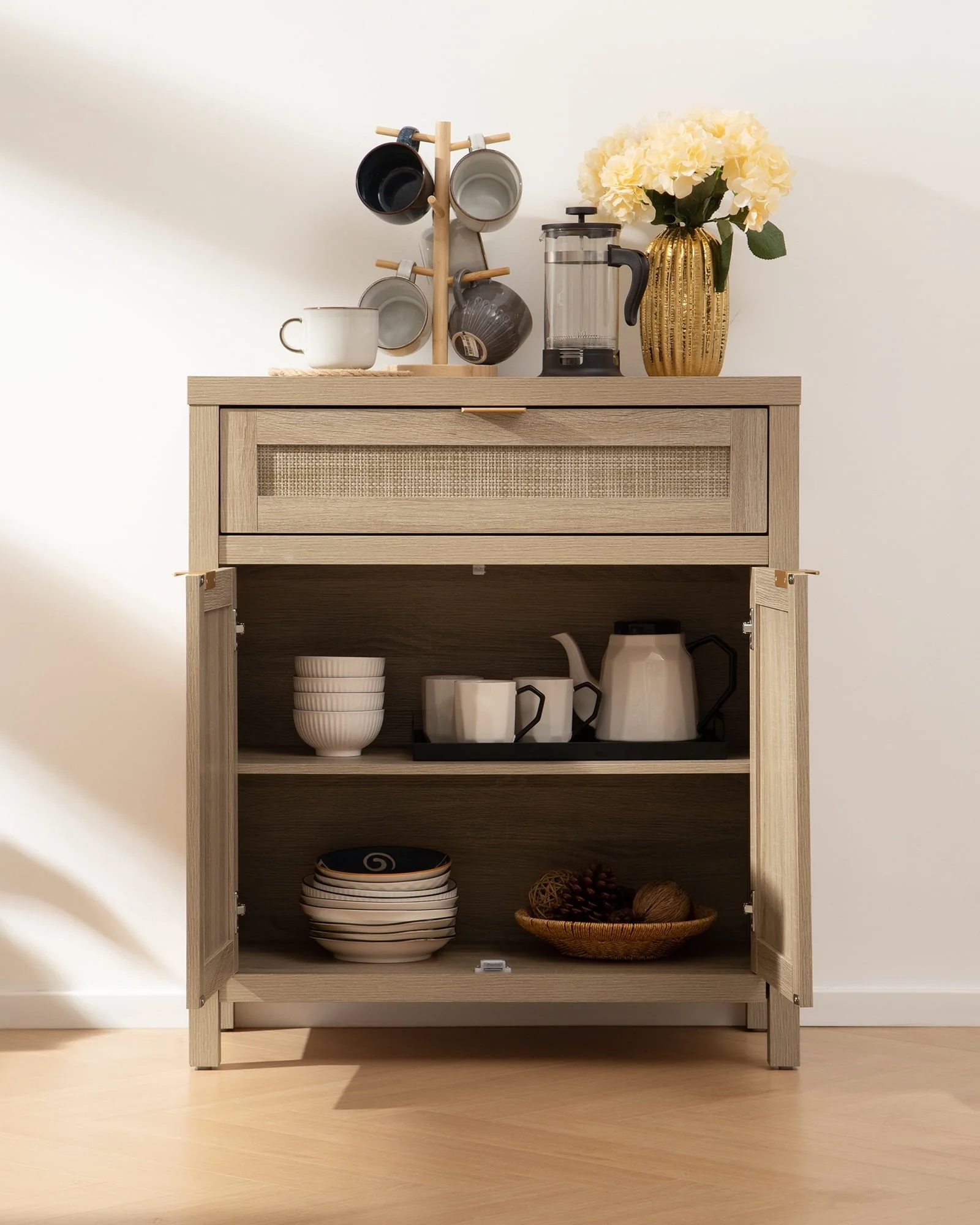 • Nopurs Rattan Sideboard Buffet Cabinet, Boho Storage Cabinet Buffet Table with Doors and Drawer, Coffee Bar Cabinet for Kitchen Entryway Living Dining Room, Light Oak