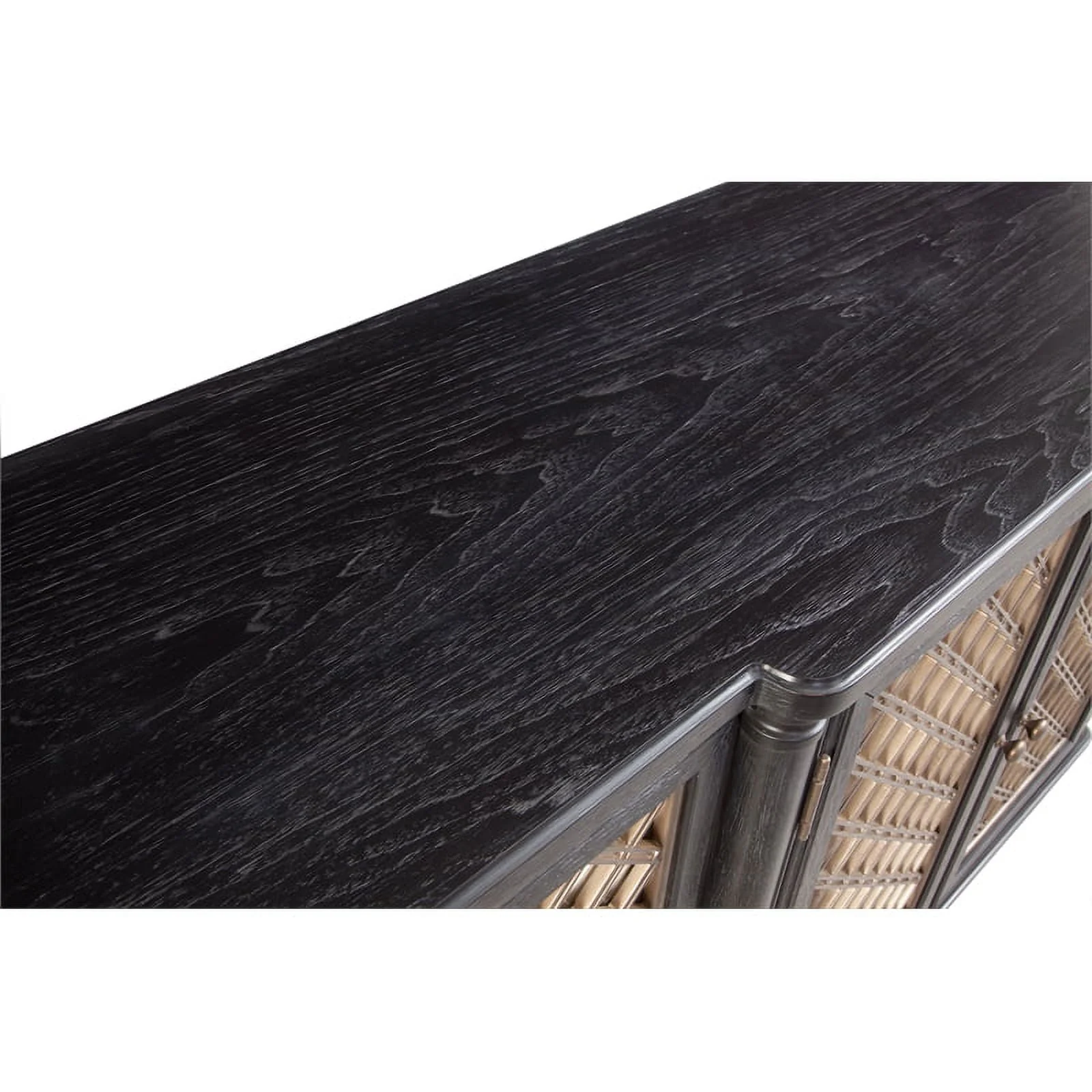 - Material: Rubberwood solids, cerused oak veneers, metal