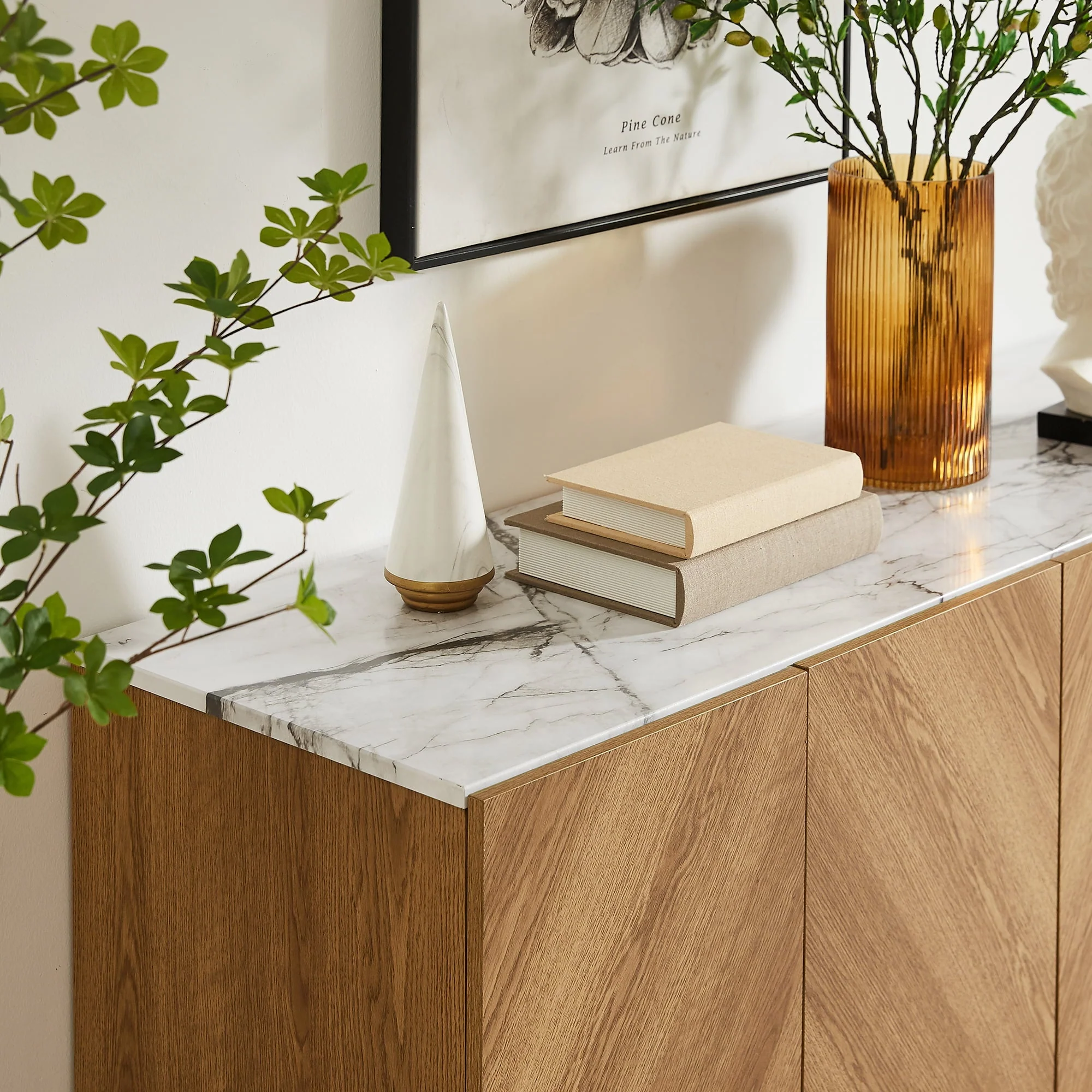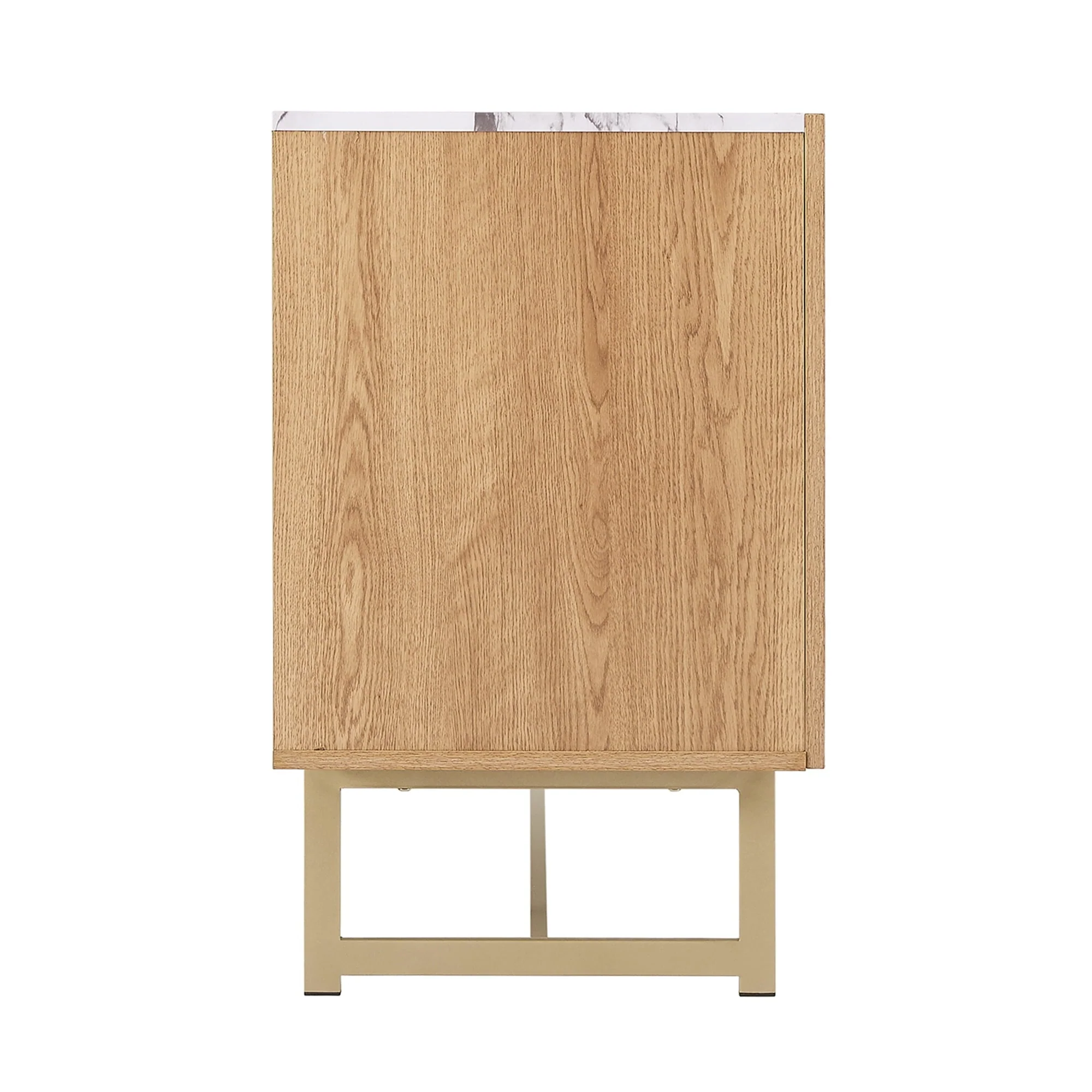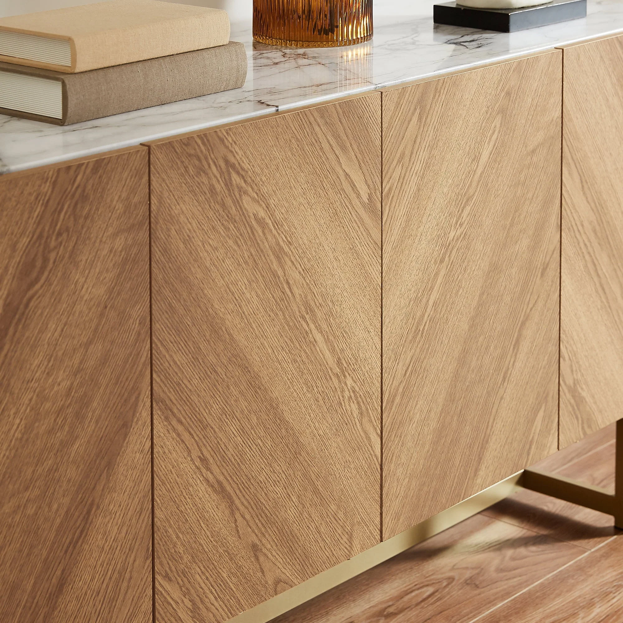 Roomfitters 57�?mid Century Modern TV Stand, Herringbone Pattern Buffet Cabinet Sideboard Credenza, Marble Top Media Console Entertainment Center for Living Room, Entryway (Oak Wood, Gold Metal Legs)