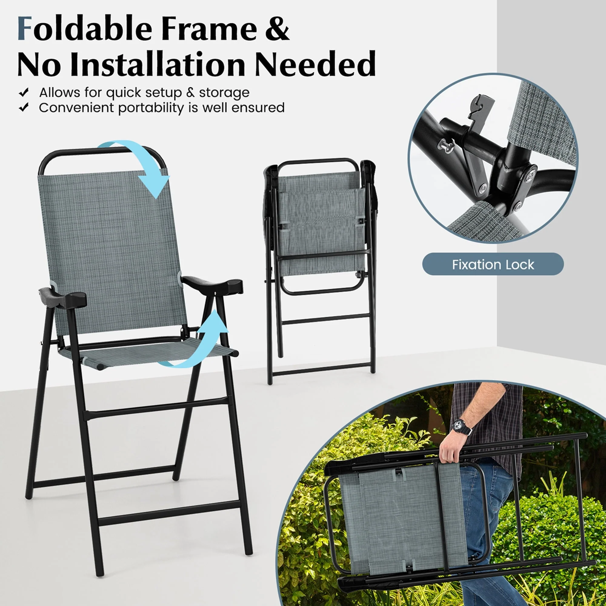 With a fixation lock, each unfolded bar chair presents better stability