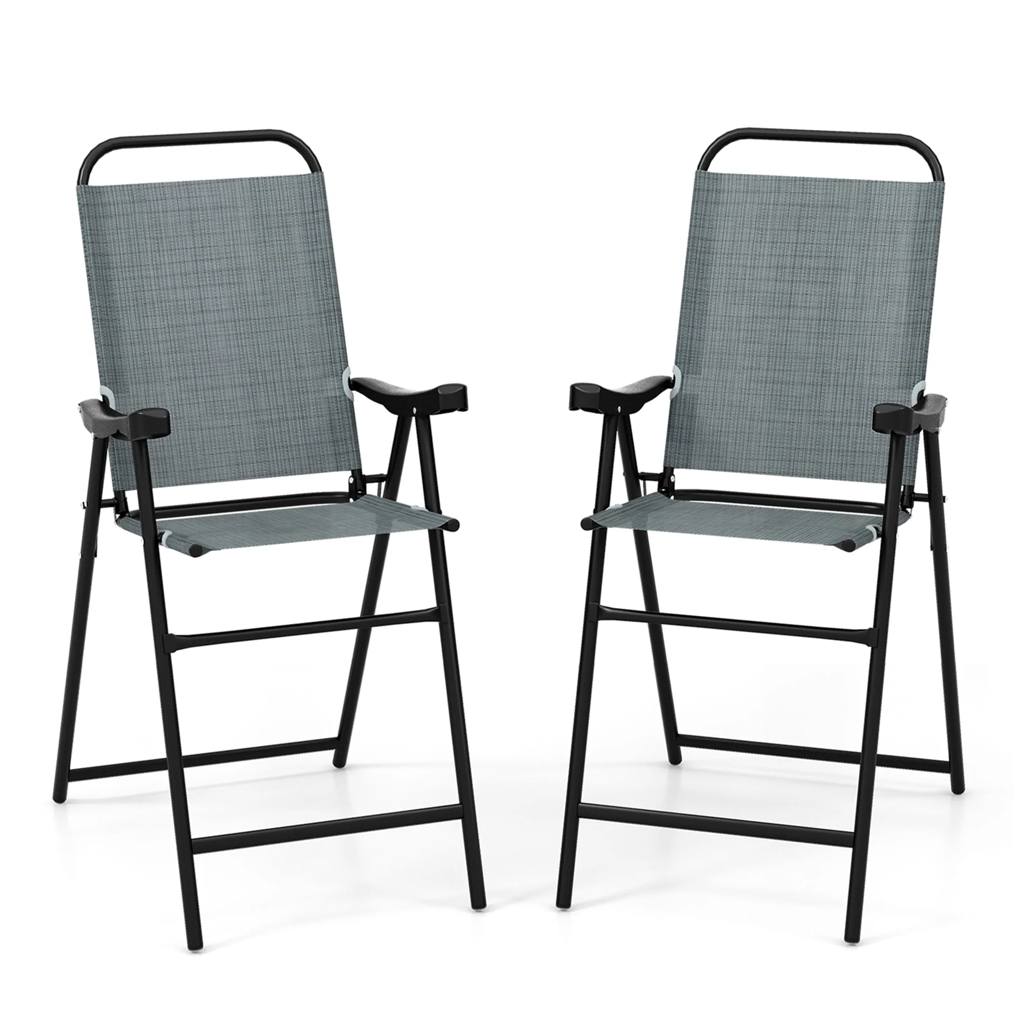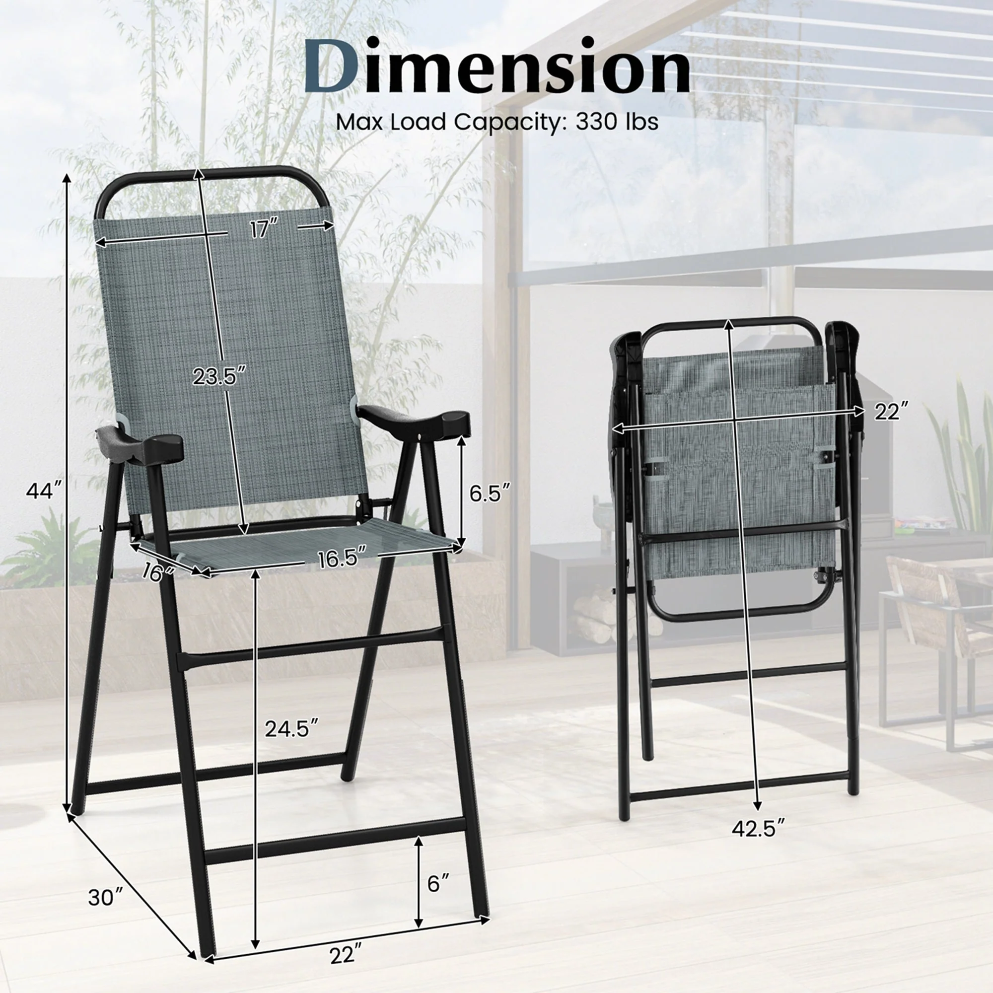 Prepare to enjoy better comfort as you sink into the comfy backrest, seat & armrests. Also, all for better relaxation, its 6'' high footrest will make you stretch out your legs. Made of premium fabric that is tear-proof, non-fading & quick-drying, bar height chairs are ready to withstand the test of time. Built with sprayed metal tubes, rust will never stand a chance, while its triangle frame ensures bar chairs remain as sturdy as ever for all your outdoor parties. Plus, boasting a large weight capacity of 330 lbs, you can rest easy knowing bar chairs will support you in style. With the effortless-fold design, the bar chair set allows for quick setup & storage.