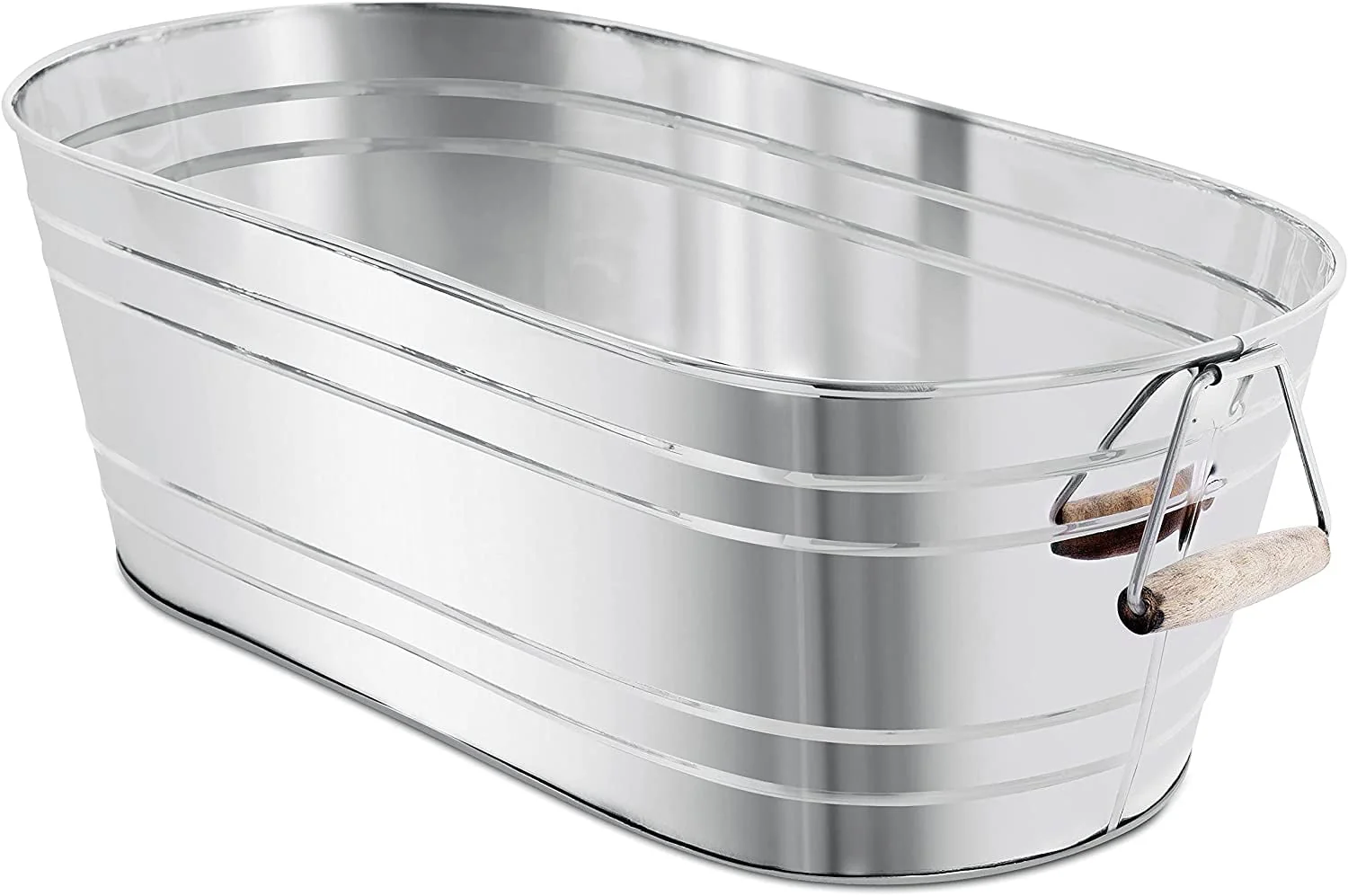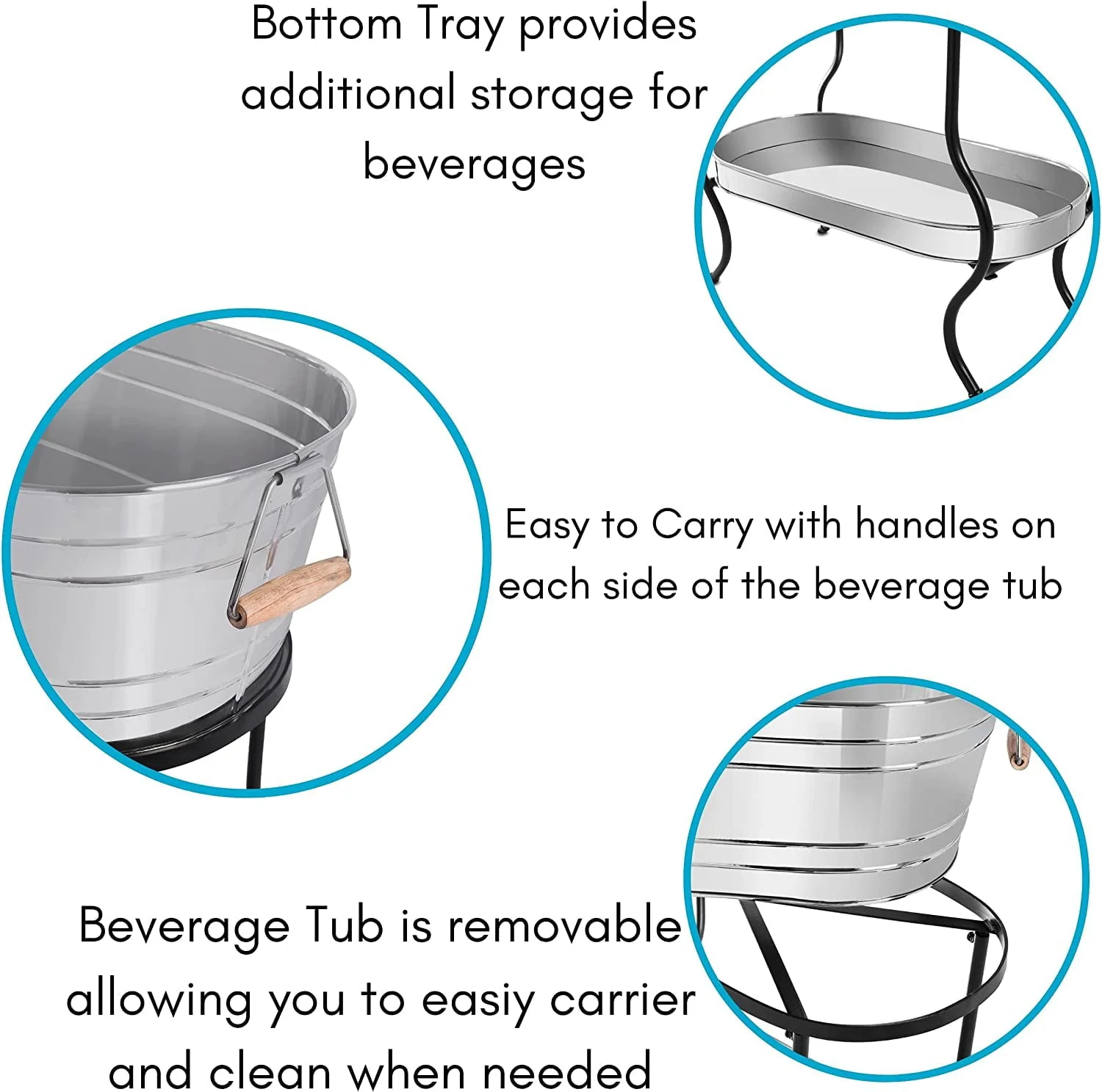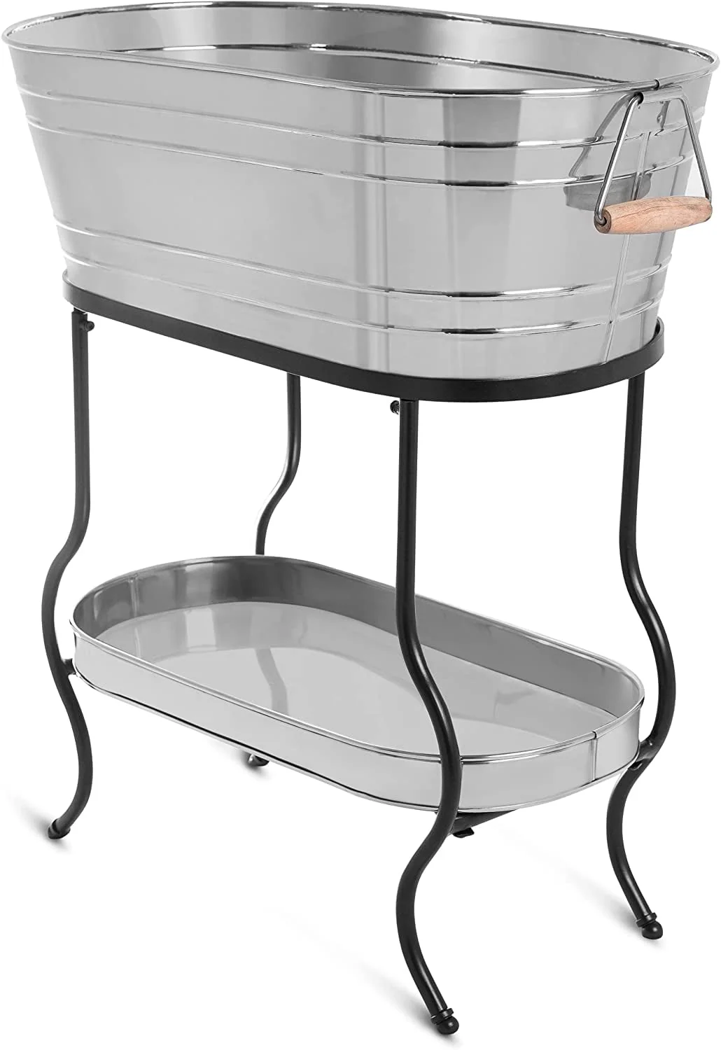 The MG Décor® Steel Galvanized Beverage Tub with Stand and Drip Pan Tray in an Oval shape is the perfect option for entertaining guests and family at your parties. Total overall dimensions: 28.5"L x 14.6"W x 31.8"H. The tub material paired with ice will keep your soda, water, beer, or wine, nice and cool. The material will also keep it from rusting allowing the tub to last for years to come. The metal stand provides a strong and sturdy surface for the beverage tub to rest. The stand keeps your guests from bending over to grab a drink while saving you table space for food and appetizers. The large capacity allows you to keep over several bottled sodas, beer, and water. Wine and champagne bottles. Another beverage tub collection from Madhu’s Collection�? See our other outdoor/indoor assortments at Walmart.com by searching Madhu’s Collection.