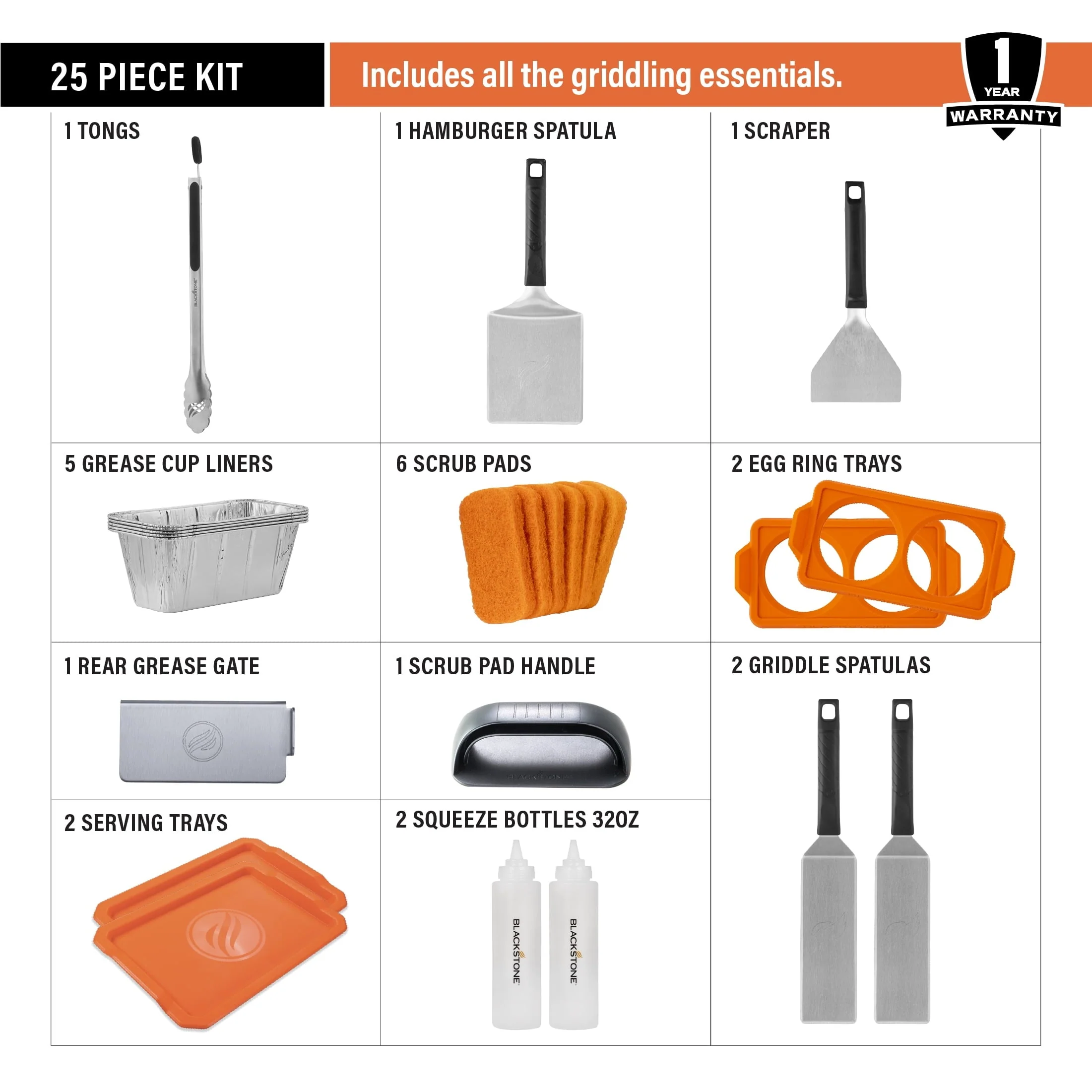 Do more on your new griddle this holiday season with the Blackstone 25-Piece Griddle Toolkit. This exclusive gift set has everything you need to get griddling. Whether you're brand new to cooking, or a seasoned Blackstone expert, this is the toolkit for you. It includes griddle essentials like spatulas and a scraper, as well as some fun additions like egg ring trays and serving trays. This griddle accessory kit makes the perfect gift for the griddle enthusiast in your life (or a nice gift for yourself as a reward for doing all the holiday cooking). You'll love everything this 25-Piece Blackstone Toolkit has to offer.