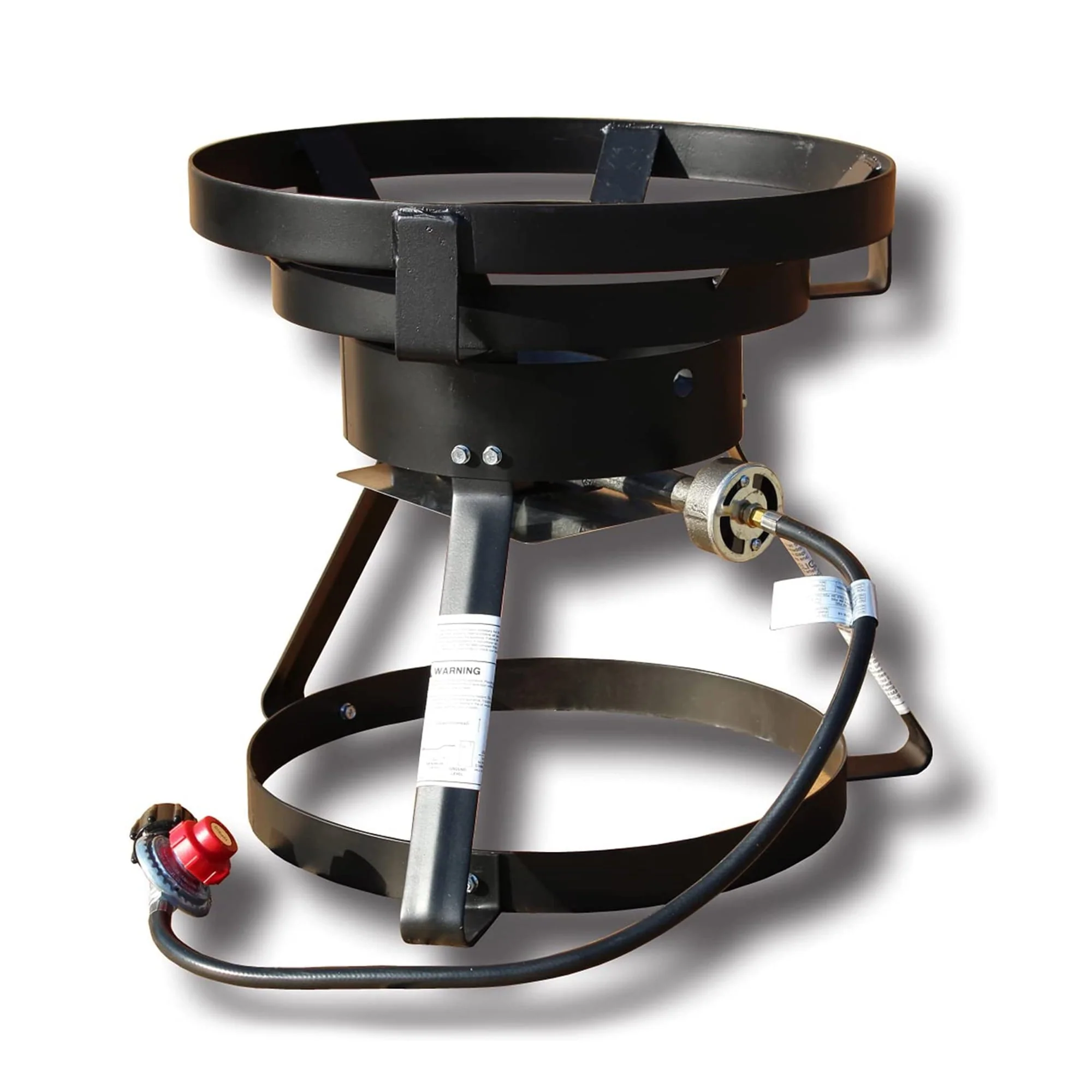 Cook up all your favorite meals with large stock pots using the King Kooker MF-1700 17.5-Inch Portable Propane Outdoor Cooker Package. This durable cooker is compatible with King Kooker 5 and 10-gallon cast iron pots, great for frying up shrimp and jambalaya.