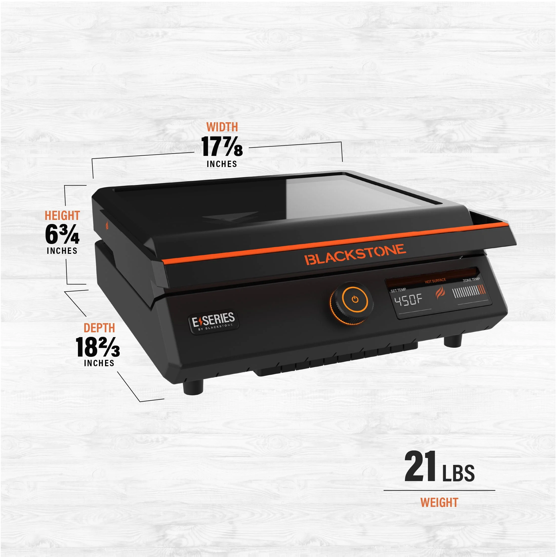 Introducing the Blackstone E-series 17" Electric Tabletop Griddle with Hood. This 17" E-Series Griddle is a brand new style from Blackstone and is perfect for any occasion, whether it be indoor or outdoor. The 238-sq-in griddle plate is machine cast with a durable and elegant ceramic-titanium coating. It has a clean-catch, low profile, rear grease management system. The entire grease cup is dishwasher safe making cleanup simple. You can rotate and remove the E-Series hood for ease of use. Control the temperature with the EZ-Touch control dial and the large LCD Display. If you are new to Blackstone cooking or in the market for an indoor griddle with outdoor performance, this is the griddle for you.