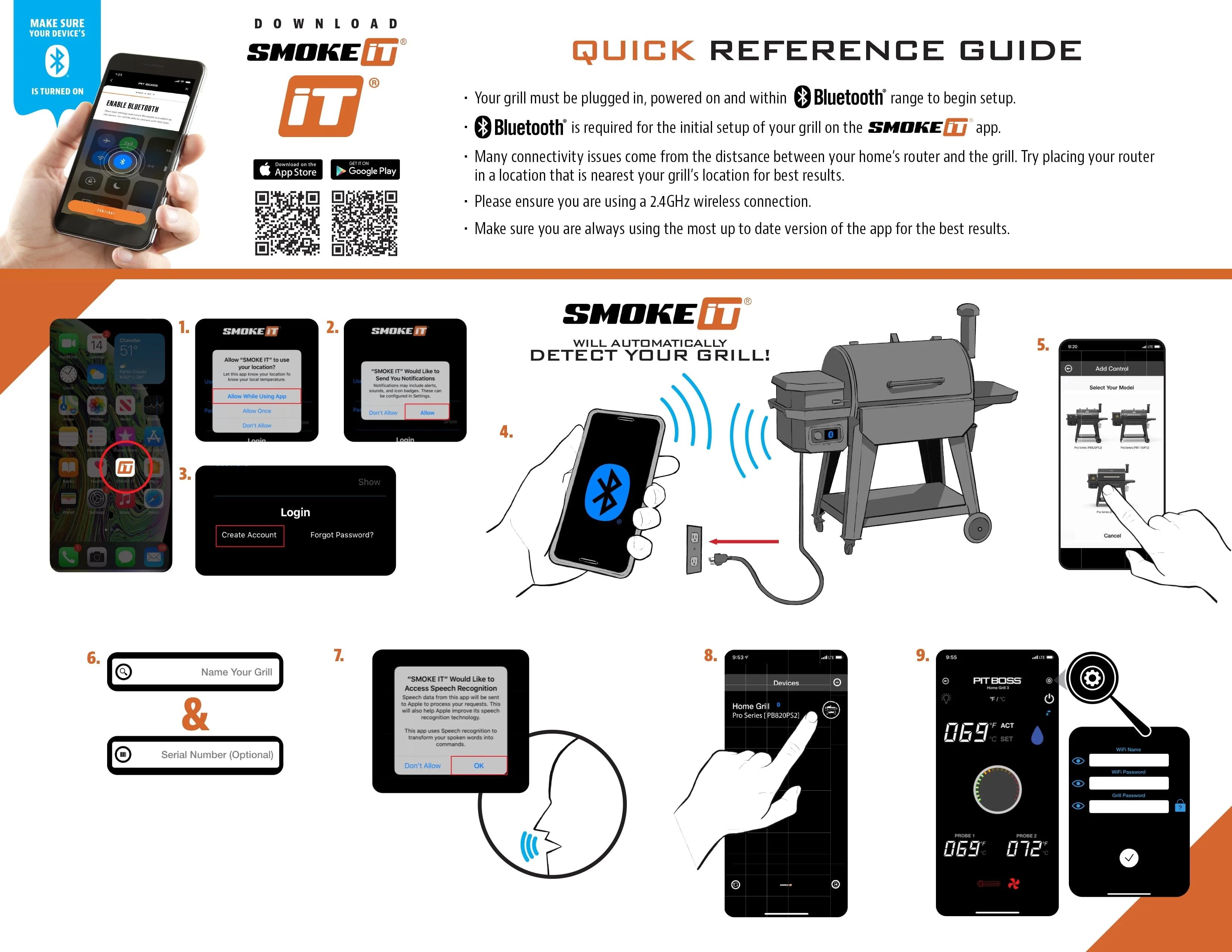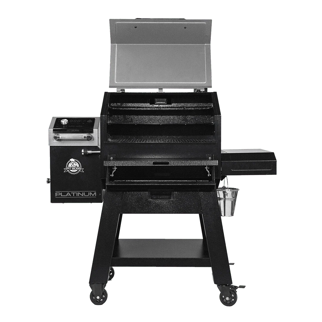 Level up your grill game with the Laredo Platinum Grill from Pit Boss Grills. Using the smart, fully-digital control board, and the easy-to-use Pit Boss Grills app, you can manage your grill directly from your smartphone. Take advantage of Wi-Fi® and Bluetooth® Wireless Technology and 8-in-1 cooking versatility to grill, smoke, bake, braise, roast, sear, char-grill, or barbecue with precision. You can also receive direct access to the Key Component Alert System, to know when you are running low on pellets or have an auger jam. As well as PID (proportional–integral–derivative) and Cycle Programming, for even temps and maximum smoke flavor. The Laredo features a premium crafted, heavy-duty build to achieve temperatures of 180° to 500° F. With the simple slide-plate flame broiler lever, you can go from low and slow indirect heat to 1000°F direct-flame access �?instantly to your food cooking on our porcelain coated cast iron cooking grids. You can also enjoy built-in grill lighting for night-time grilling, a removable front ash tray, and two stainless-steel meat probes to have internal temperature readings sent directly to your phone and grill.