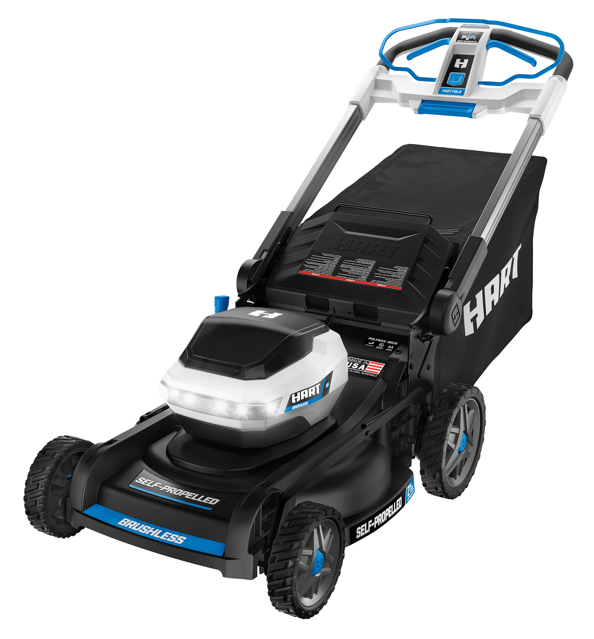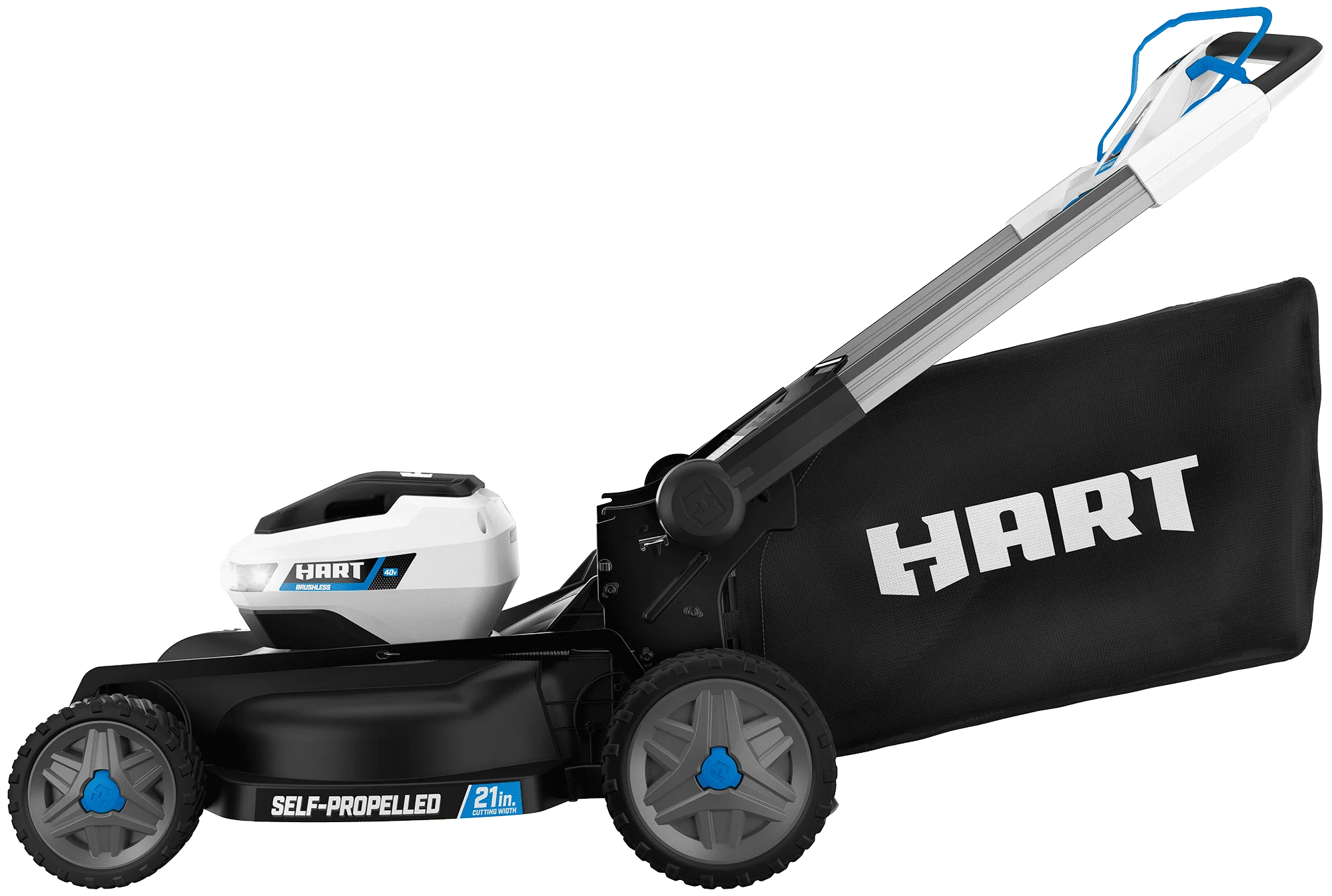 This battery-powered mower has the muscle to cut up to 3/4 acre on one charge. With the included (2) 6.0Ah batteries and dual active battery ports, our cordless 40V 21" Composite Deck Self-Propelled Mower has the added benefit of increased runtime for trekking through a jungle of overgrowth. Choose how you want to mow with 3-in-1 bagging, mulching & side discharge capabilities. It also features pass-through bagging for an easier bag grab. When you’re done, the FAST FOLD handles make for easy upright storage in your garage. The composite deck is strong yet lightweight as well as corrosion resistant. Oh, and that annoying pull cord? It’s gone. This cordless mower starts with just the push of a button. Height modifications are also easily made with a single-point height adjustment knob for a 1"-4" cutting range. Another time-saver, the Fast Charger, only takes one hour per battery to charge. It also has integrated LED headlights to work even in dim conditions. Works with All HART 40V Batteries. With powerful brushless motors, premium features, and fast charging, HART 40V Supercharge is the perfect choice for yards without compromise.
