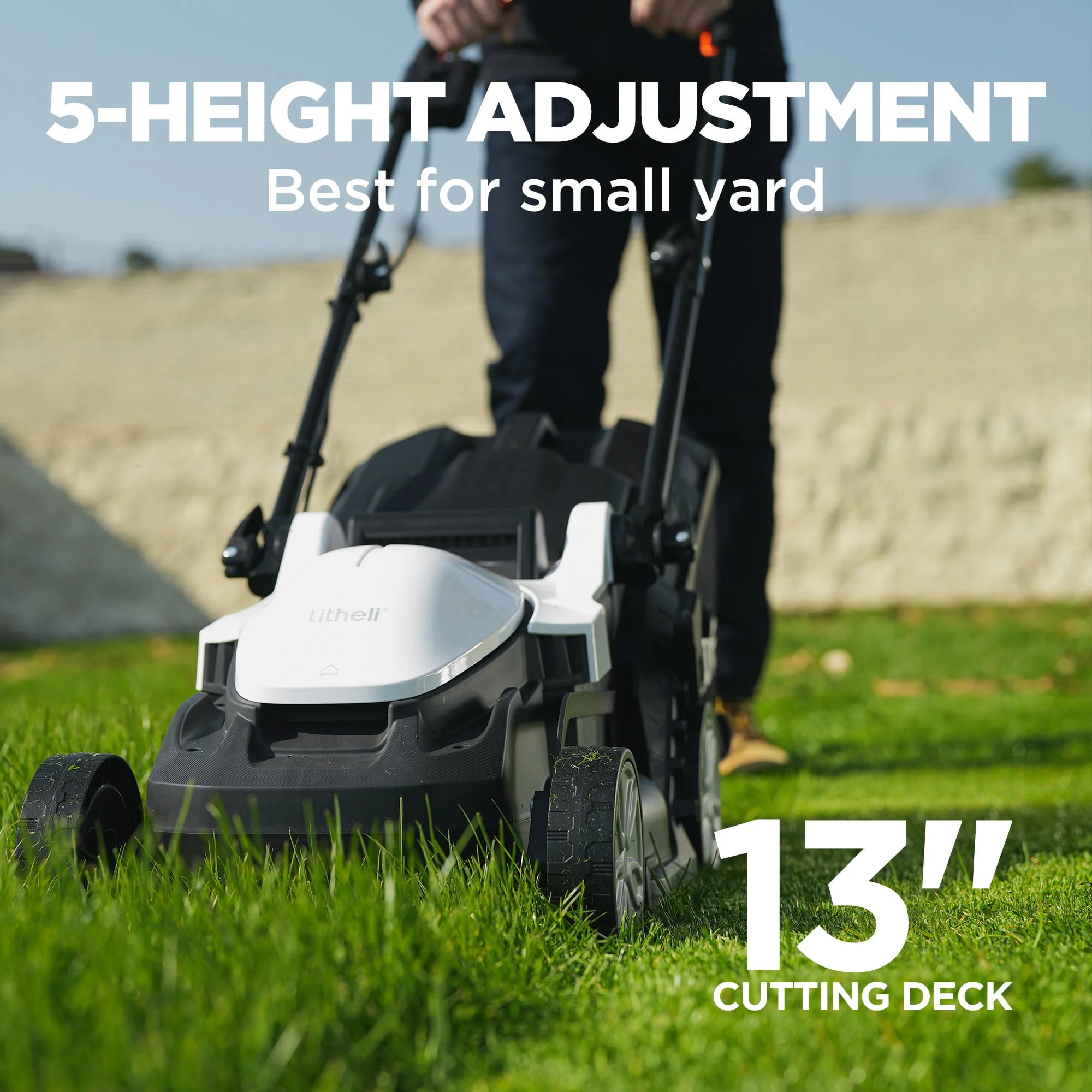 VERSATILE: Stay in control with the adjustable cutting height. This lawn mower cordless features 5-position height adjustment for you to maintain a healthy height of your lawn according to the season and your preference.