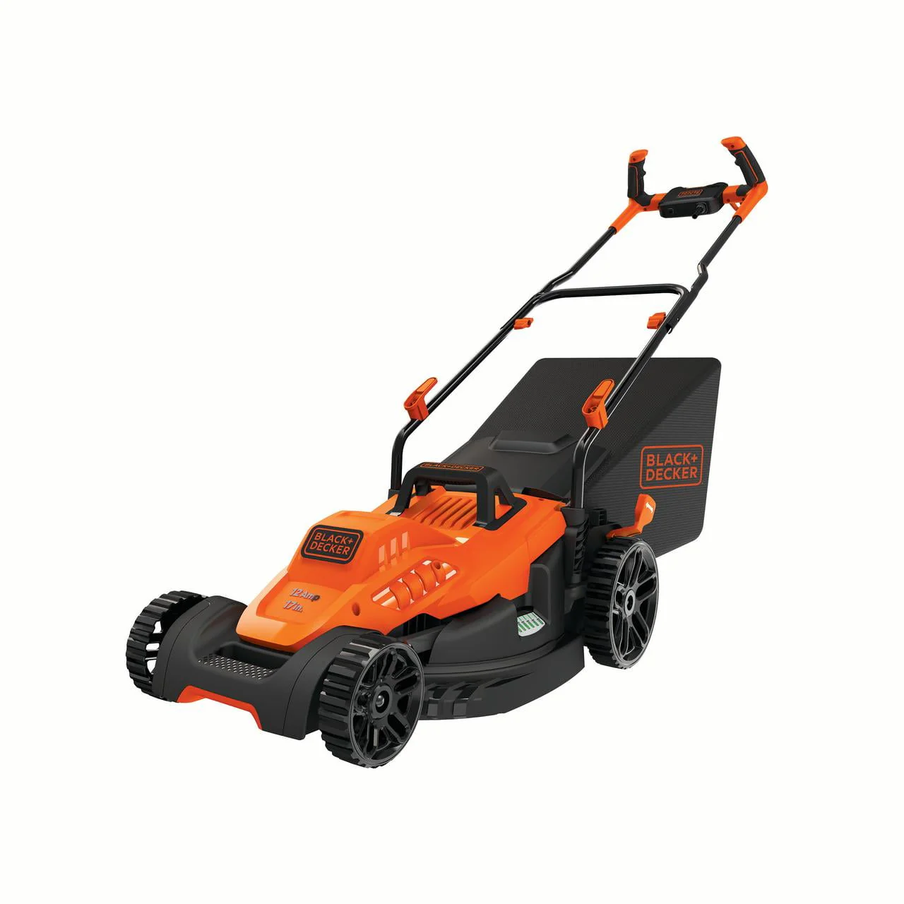 BLACK+DECKER BEMW472BH 10 Amp 15" Corded Lawn Moweris ideal for 1/8 acre lots. Lightweight and easy to maneuver, this electric lawn mower features a Comfort Grip Handle and peak performance with Winged Blade for 30% better collection. Push-button start makes this electric lawn mower easy to use. Optimize cutting for your lawn with 6 height adjustments from 1 in. to 3 in. Rugged wheel treads designed for control in thick grass. Includes: (1) BEMW472BH mower and (1) Collection bag. Includes a 2 Year Limited Warranty and 30 Day Money Back Guarantee.