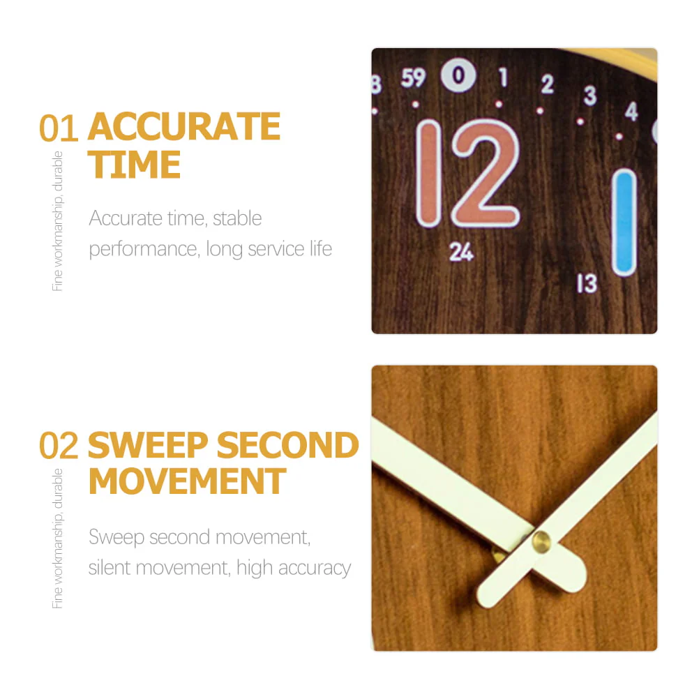<strong>Description</strong><br /> <br /> <span>This is a bedroom wall clock, made of premium materials, silent design will not disturb you when you are sleeping. Designed into a simple round shape, this is not only a practical wall clock, but also a wall hanging decor for your bedroom or living room. You can present the wall clock as a housewarming gift to your families and friends. They will love the wall clock.</span><br /> <br /> <strong>Features</strong><br /> <br /> -Color:Coffee<br /> -Material:Wood, glass<br /> -Size:29.00X29.00X4.50cm/11.40X11.40X1.77in<br /> -Power supply:1pc AA battery(not included)<br /> <span>- Easy to hang on walls and other places you want. So you can teach your kids how to watch clocks anytime, anywhere.</span><br /> <span>- Excellent workmanship, simple and modern appearance. Great gifts for friends and family. Make it easy for them to teach their kids how to read clocks.</span><br /> <span>- With decorative function and creative design, this wall clock is perfect home decor for bedroom, living room, office, classroom etc.</span><br /> <span>- Bright color design breaks the dull feeling of the space, be full of style, suit the spatial collocation of all sorts of scenes.</span><br /> <span>- Suitable for the bedroom, kitchen, meeting room and other places where quiet environment is needed.</span>