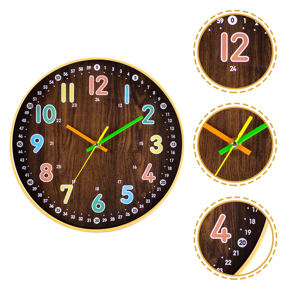 • HOMEMAXS Kids Bedroom Wall Clock Simple Mute Wooden Clock Round Wall Decor Precise Wall Clock