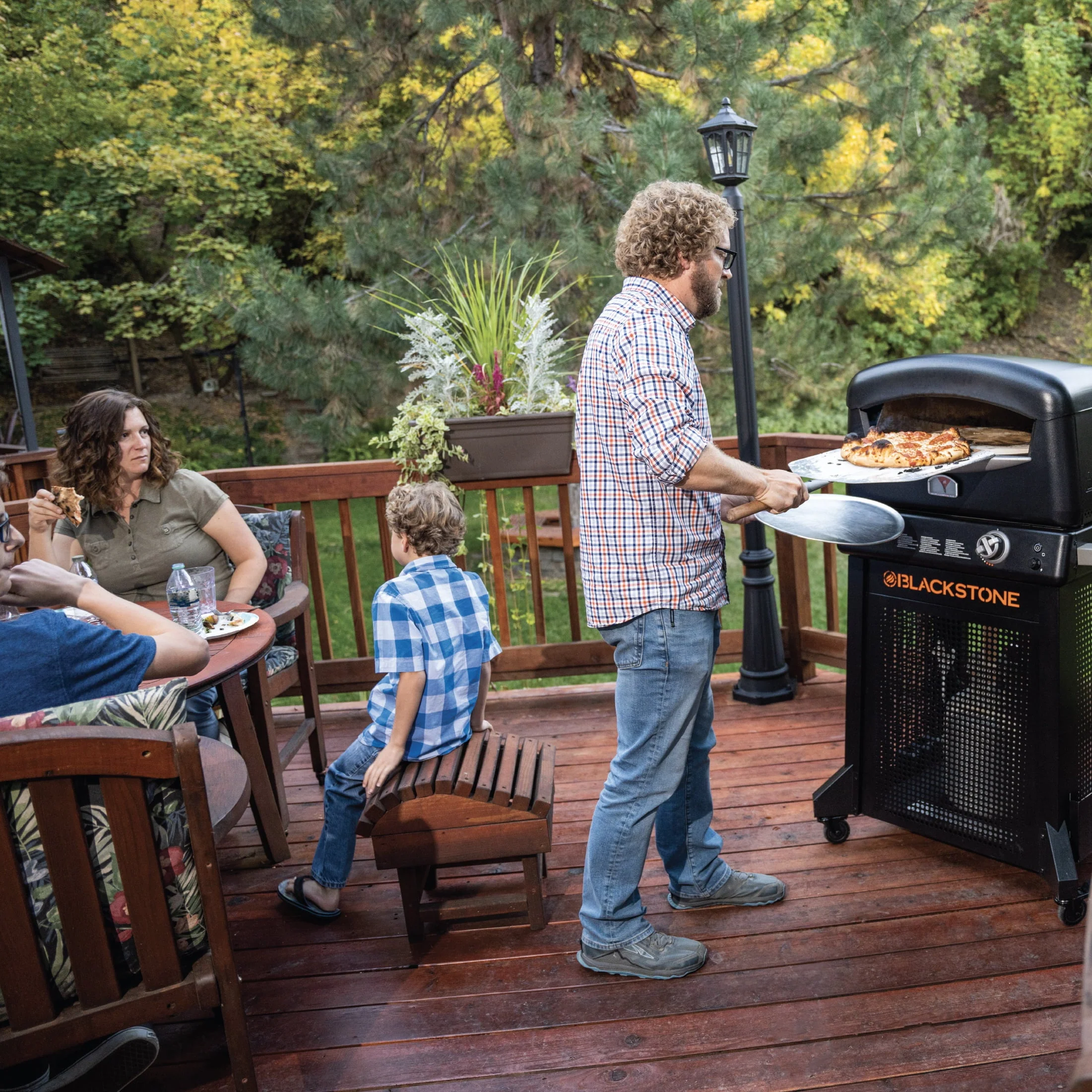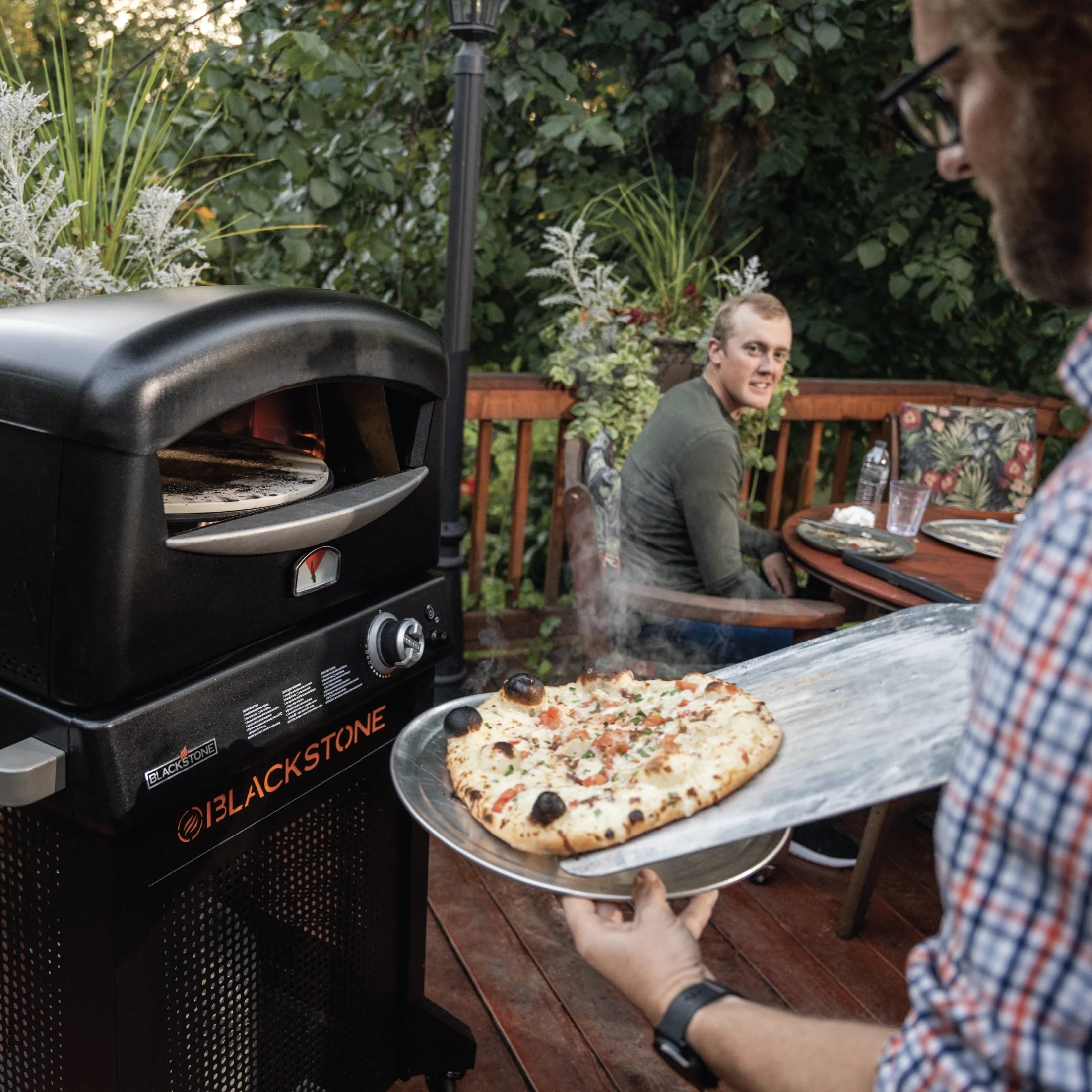 The wait is finally over. Blackstone is finally back with their full-size pizza oven. The Blackstone Pizza Oven is uniquely designed to work with the included stand on swiveling wheels, or alone on a countertop or table. The high-pressure burner reaches temperatures up to 900 degrees and will have you cooking the best pizza you've ever had in as little as 90 seconds, and you can monitor your temperatures with the thermometer. Thanks to Blackstone's patented 2-stone technology, with one rotating 15" cordierite stone on the bottom and a fixed stone on top, this pizza oven creates an even cook so you can make restaurant-quality pizza every single time. The Blackstone Outdoor Pizza Oven also comes with a pizza peel (with attached peel holder), so you've got everything you need to make it pizza night every night.