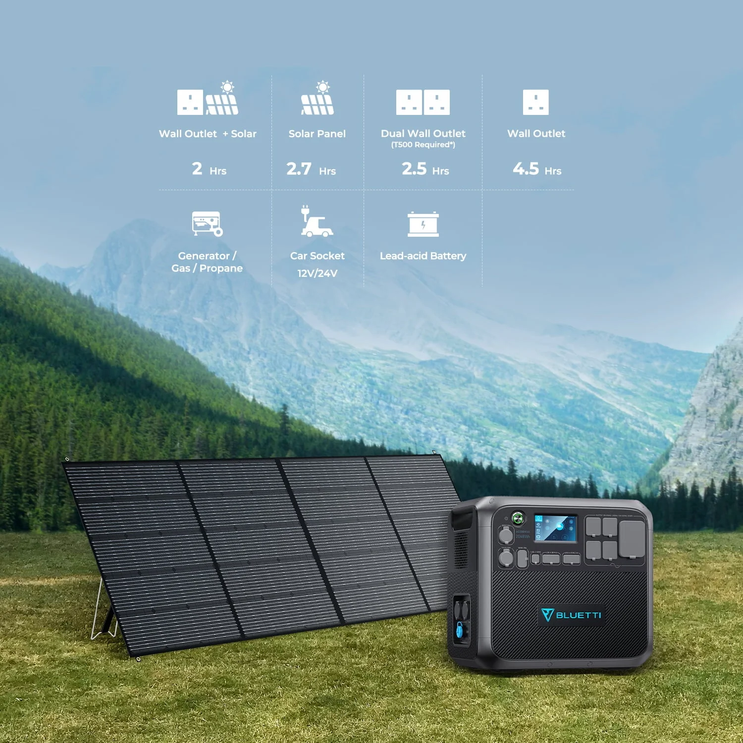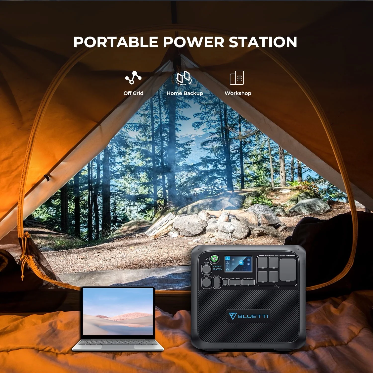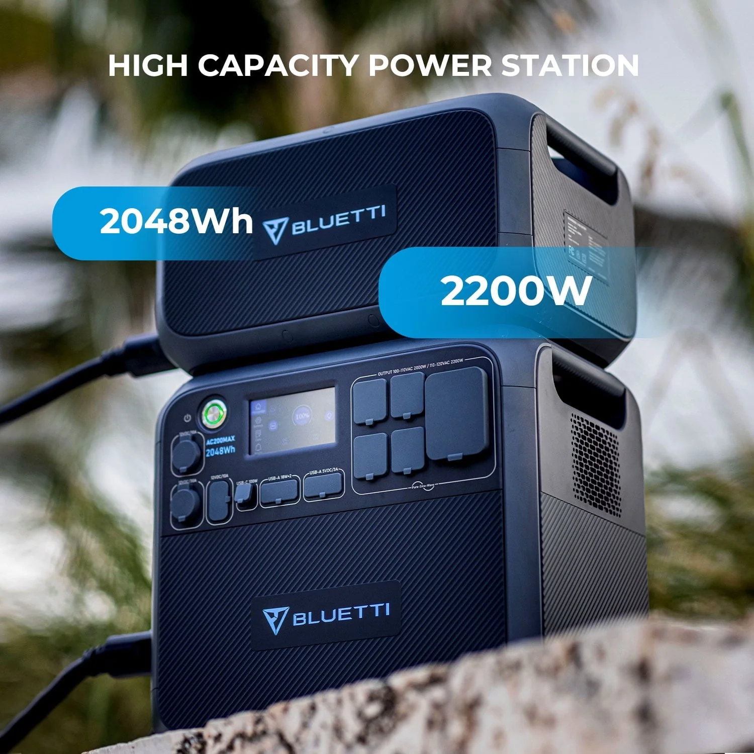 • Bluetti AC200MAX Expandable Portable Power Station, 2048wh 2200W Home Solar Power System, LiFePO4 Solar Generator for RV, Camping