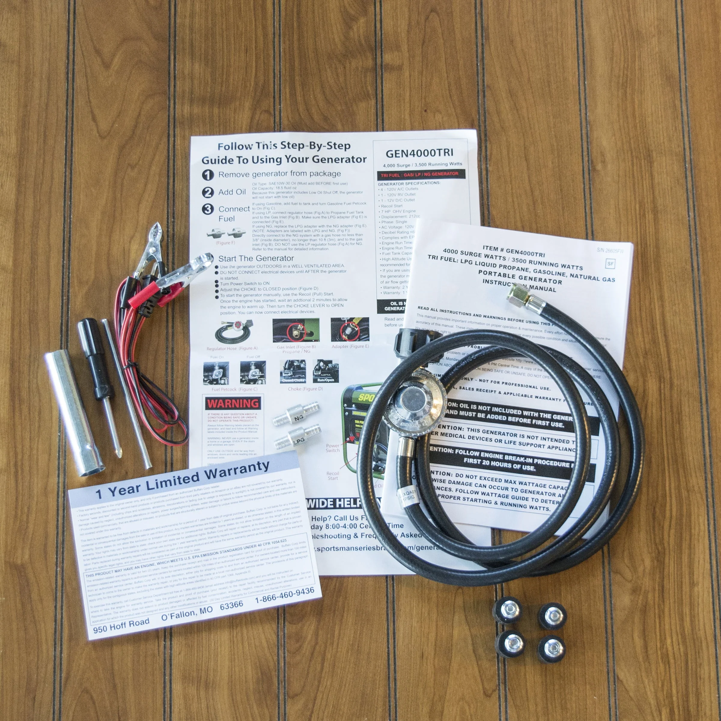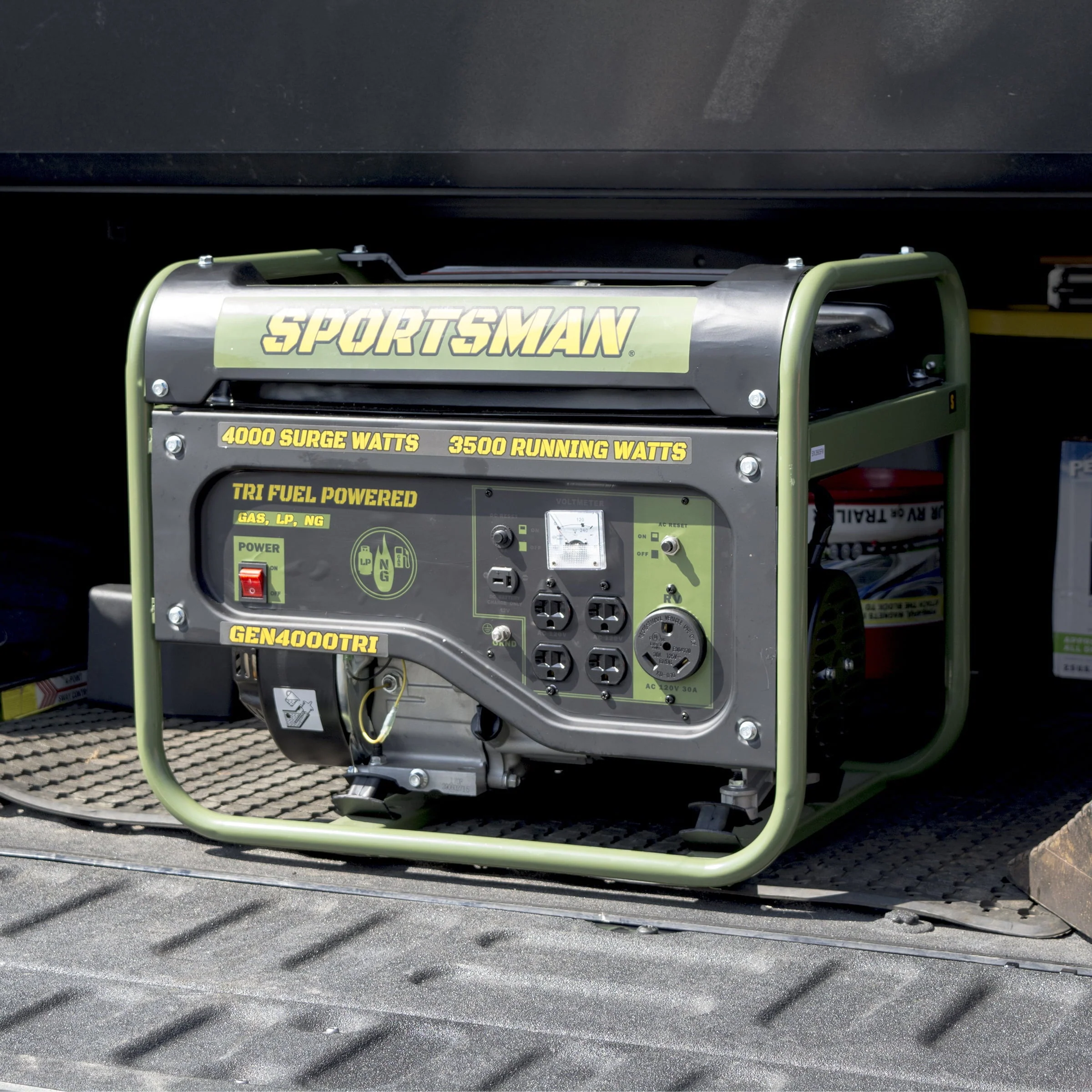 Great for running the RV while out on the road, or for keeping essential appliances going during a power outage, the Sportsman 4,000 Watt Dual Fuel Generator has the power and flexibility to handle the task. This generator runs on either unleaded gasoline, LPG propane gas, or NG natural gas so you can use whichever fuel is more easily available or affordable at the moment. With the Sportsman Dual Fuel Generator, you get the long lasting, clean burning advantage of propane and natural gas, plus the familiar and easy to find benefits of unleaded gasoline.With 4,000 peak watts and 3,500 rated watts the Sportsman Dual Fuel Generator is a powerful generator than can handle the needs of most contractors, homeowners and recreational activities. Equipped with four 120 Volt outlets, a single 120 Volt RV outlet, and a 12 Volt DC outlet for battery charging, this generator can handle almost everything you need for camping or tailgating.The 7 HP engine is surprisingly quiet; it runs at less than 69 Db.The Sportsman 4,000 Watt Dual Fuel Generator is ideal for anyone who needs affordable, flexible, and portable power.