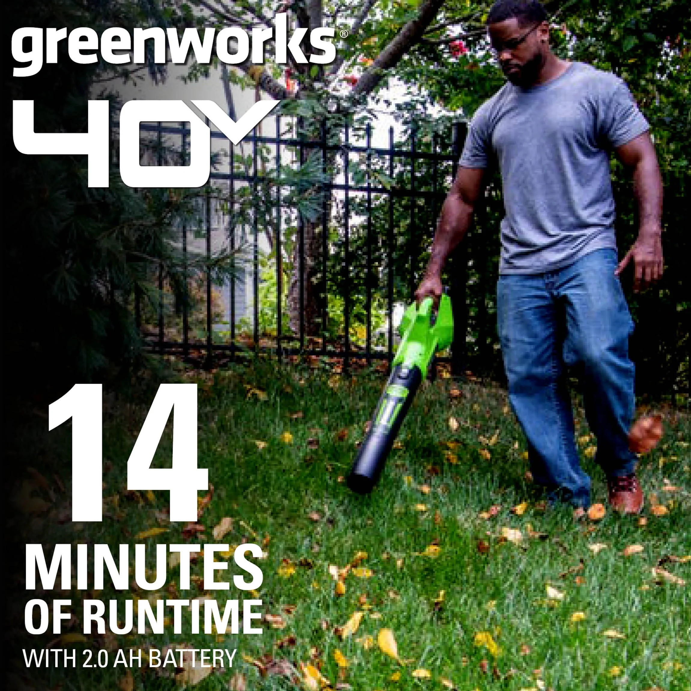 • Greenworks 40V 350 CFM Leaf Blower with 2.0 Ah Battery, 2412002