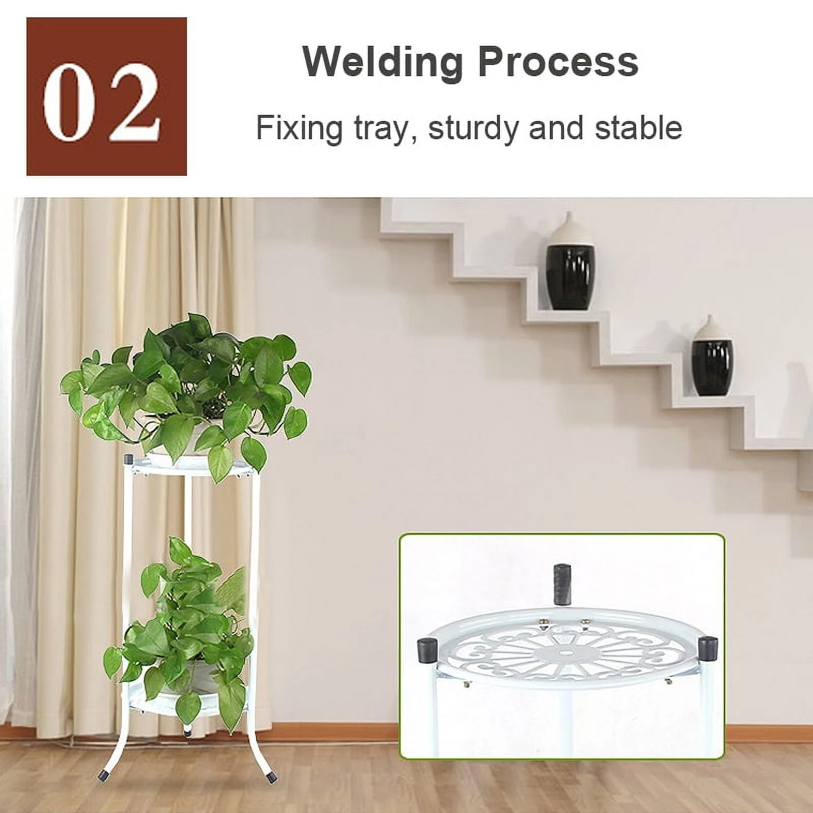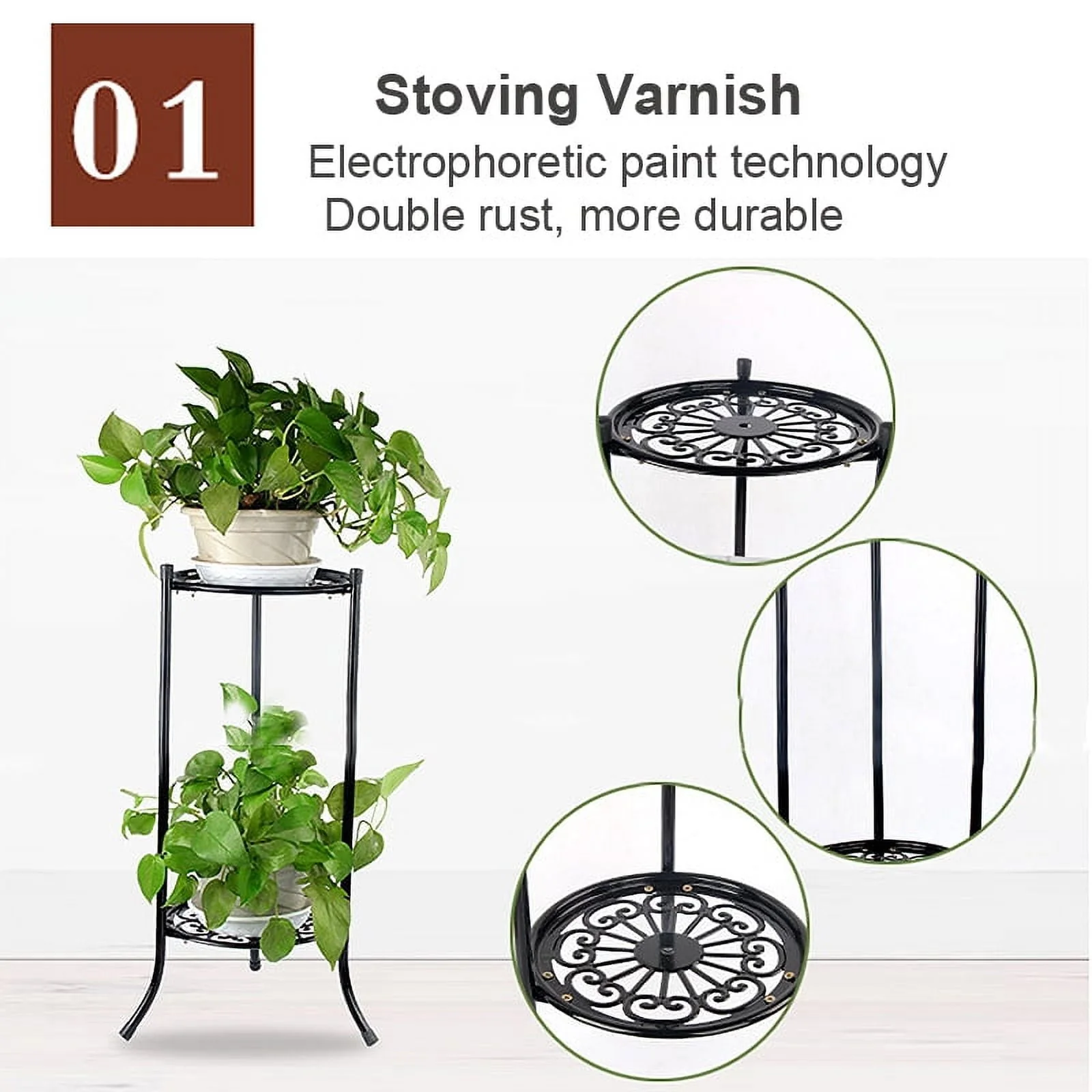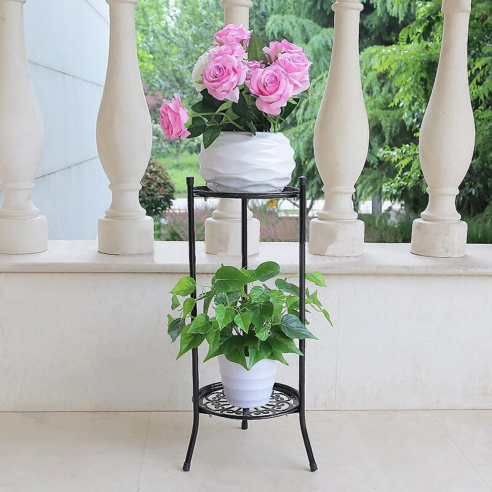 - RUSTPROOF & LIGHTWEIGHT - This outdoor plant stands has black/white powder-coated finish to help resist rust and corrosion. The plant stand is lightweight enough to easily move around your garden or home without sacrificing strength
