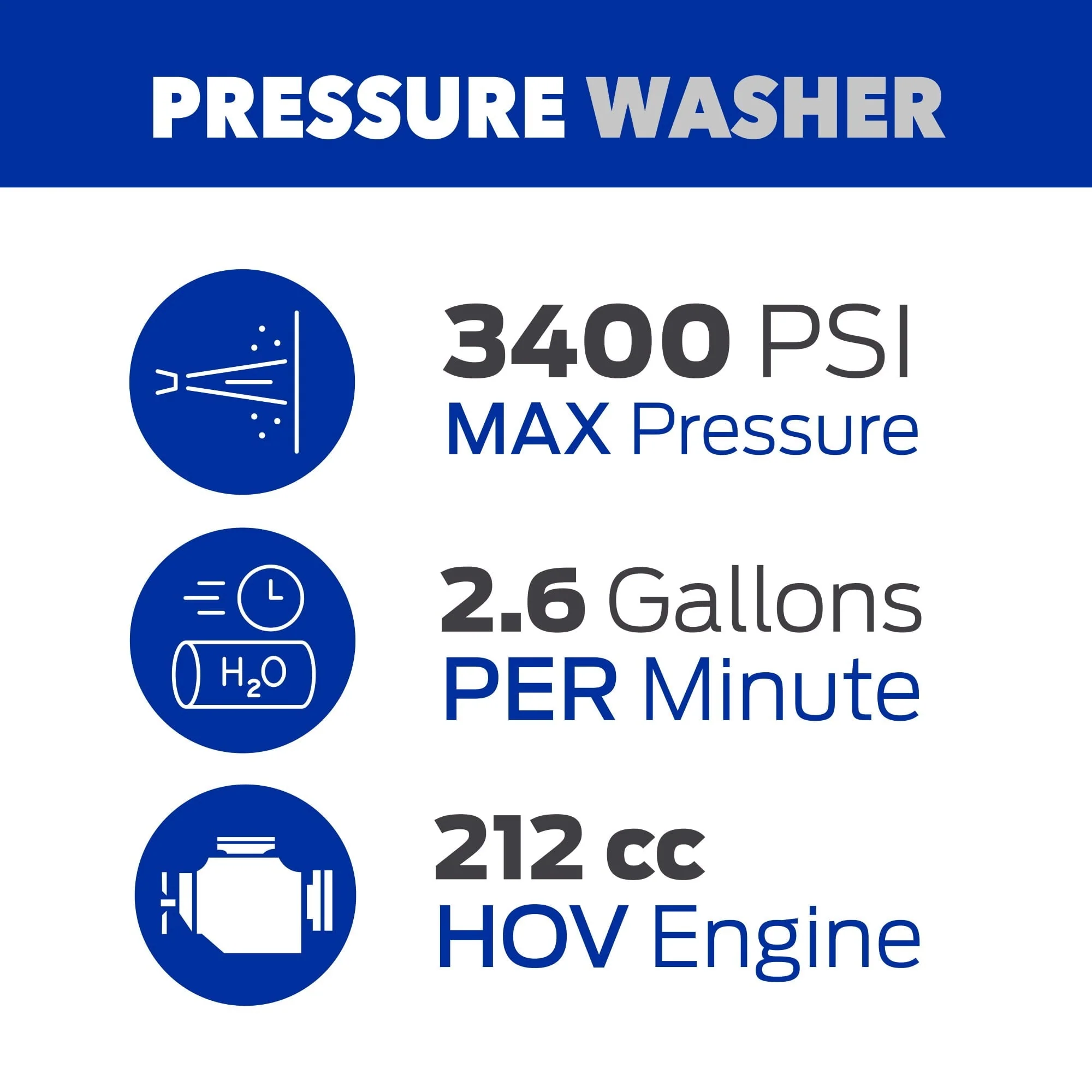 Introducing the Ford FPWG3400H pressure washer - the ultimate solution for blasting away dirt and grime. With a durable powder-coated frame and a powerful 212cc engine that delivers 3400 PSI at 2.6 gallons per minute, this pressure washer is built to handle even the toughest jobs with ease.