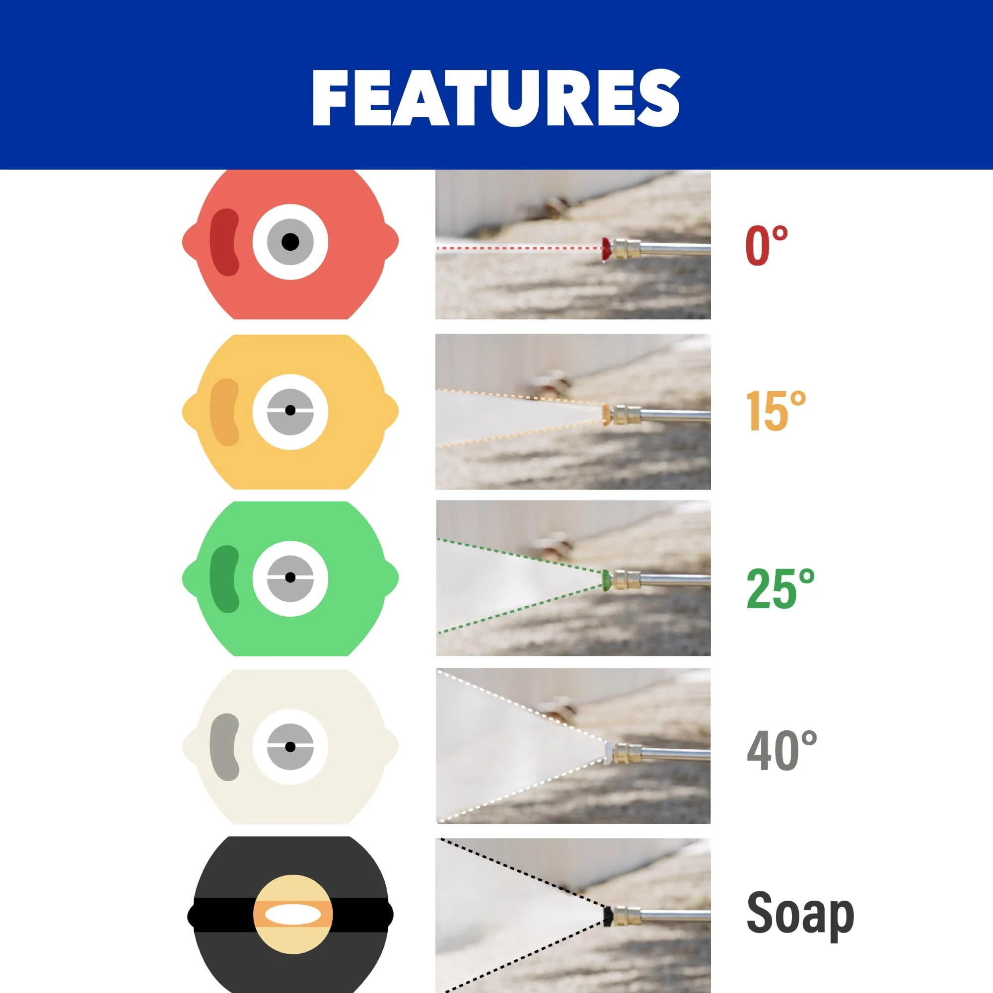 Equipped with six quick-connect tips, including four spray nozzles, one turbo nozzle, and one soap nozzle, this pressure washer allows for effortless selection of the perfect spray pattern or soap application needed for any job. The single onboard soap tank, 10-inch never-flat tires, and 30-foot braided high-pressure hose provide an efficient and portable package that is ready to tackle any challenge.