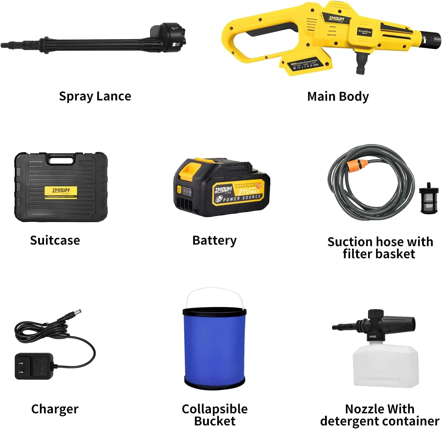 ãPortable Cordless Washer Cleanerã Portable pressure washer with cordless design and gets rid of the wire, looks more beautiful. It only takes a few minutes to assemble, 15000mah high-capacity battery provides removable power for field application (please charge before using 1, do not let water into the battery). The self-priming function allows you to take water from taps, rivers, and buckets.