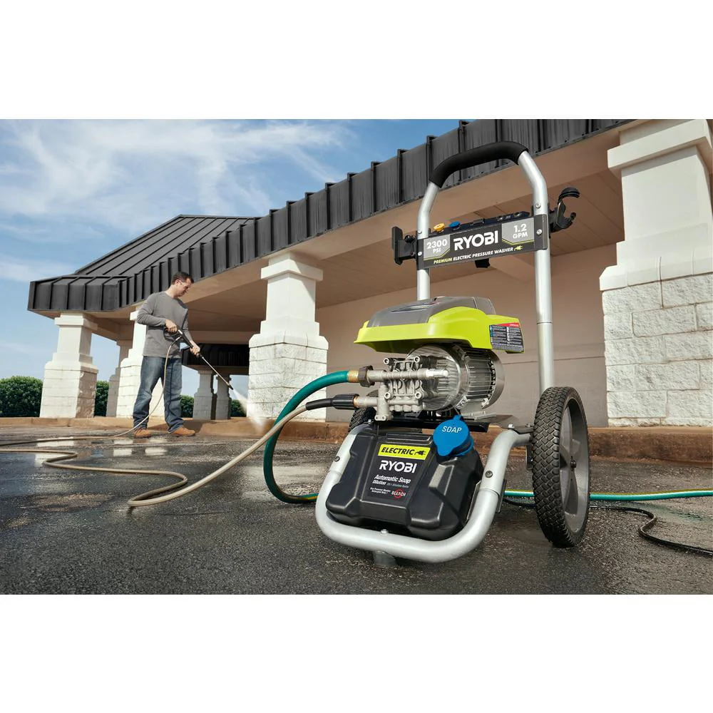The RYOBI 2,300 PSI Pressure Washer is engineered to handle even your toughest jobs. This Pressure Washer features a powerful 13 Amp High Efficiency Brushless Electric Induction Motor and Pressure Technology. With 2,300 PSI of force, it is exceptional for quick cleaning of driveways, decks, windows, patio furniture and other areas around the house. This unit also includes a bonus Turbo Nozzle that delivers up to 50% more cleaning power. The RYOBI 2,300 PSI Electric Pressure Washer is backed with the RYOBI 3-Year Limited Warranty and is guaranteed to deliver results for years to come.