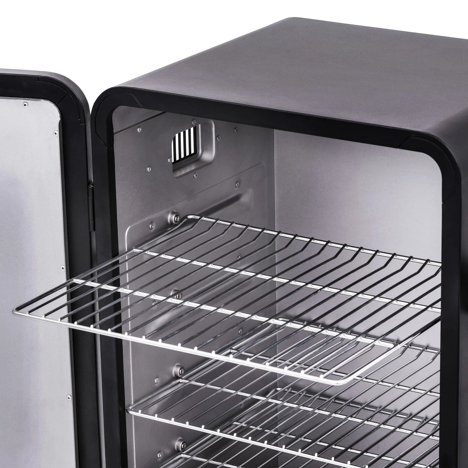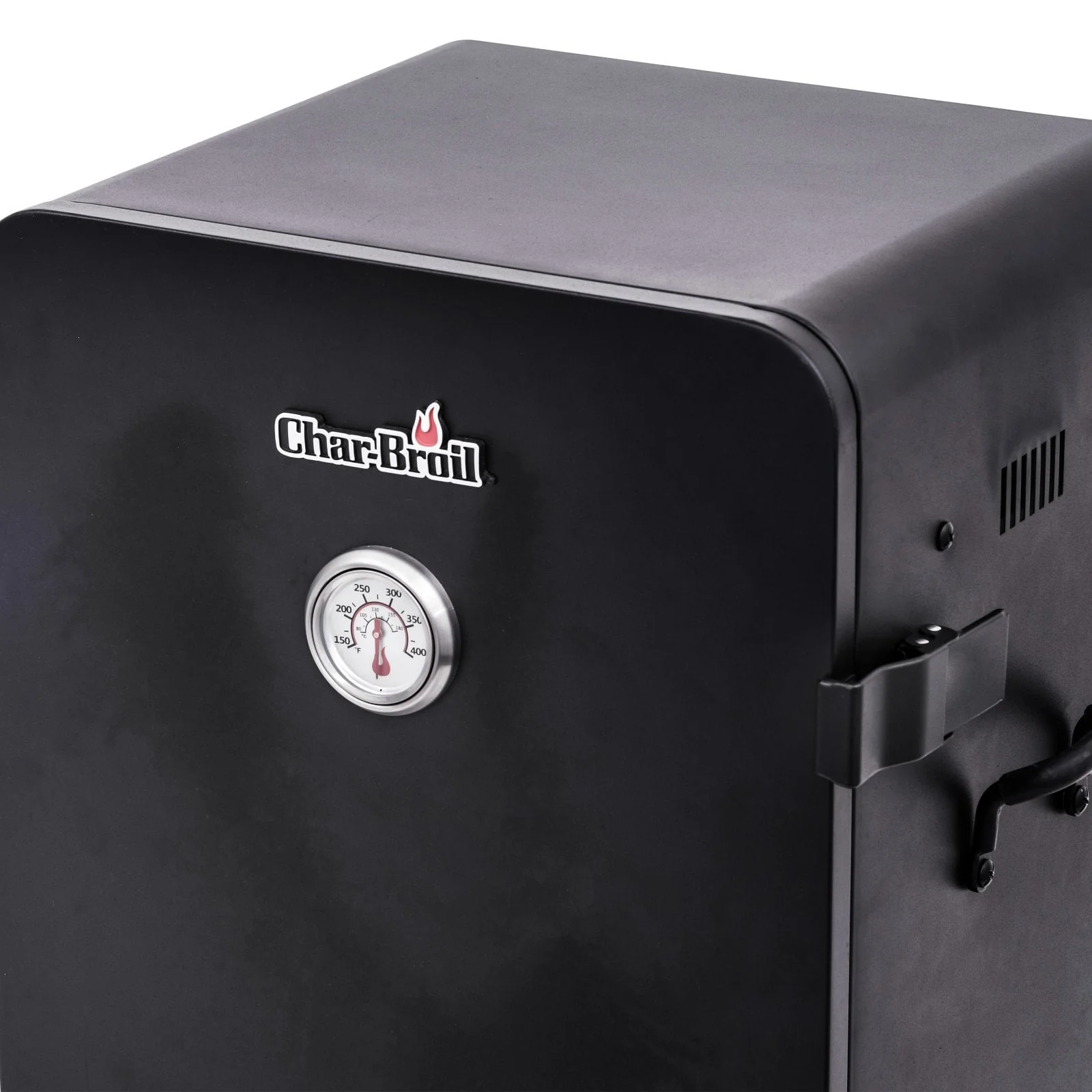 Enjoy an easier to control option for smoking meats to perfection with the Char-Broil Analog Electric Smoker. This electric smoker offers a spacious interior with removable grates, perfect for cooking meats large and small. Its frame is rendered from cold-rolled steel with a protective black finish. An analog electric control makes it easy to set and maintain temperatures with a front-mounted gauge to monitor proceedings.