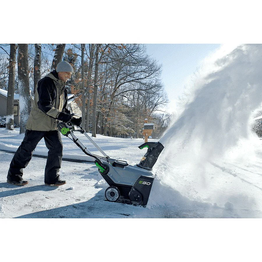 The new EGO POWER+ Snow Blower delivers the power and performance of gas without the noise, fuss and fumes. Featuring Peak Power technology, it combines the power of any two EGO 56V ARC Lithium batteries for the power to clear heavy, wet snow with a throwing distance up to 40 ft. Built with a high-efficiency brushless motor and steel auger, the EGO POWER+ Snow Blower handles what the city snow plow leaves behind with ease; cutting through ice and snow 50% faster*. The EGO POWER+ Snow Blower has the power to handle tough jobs fast without the noise, fuss and fumes of gas.